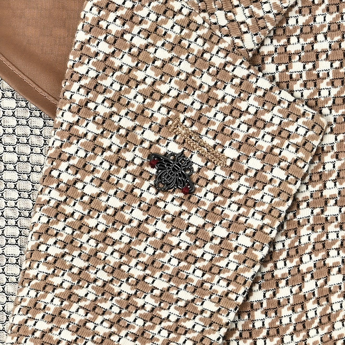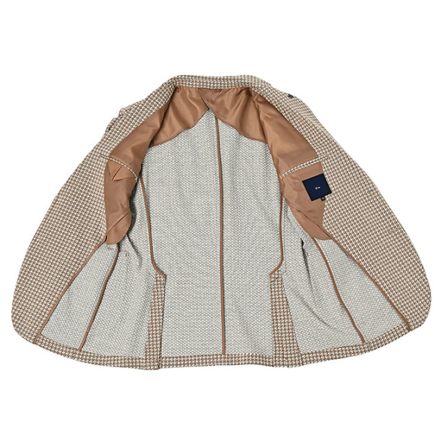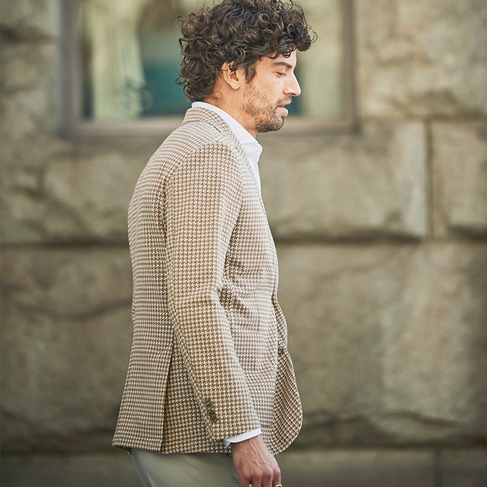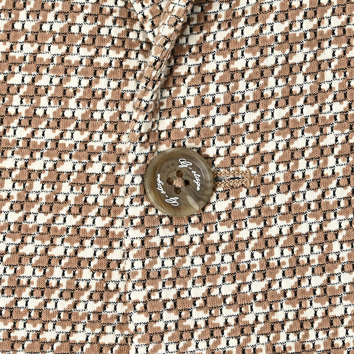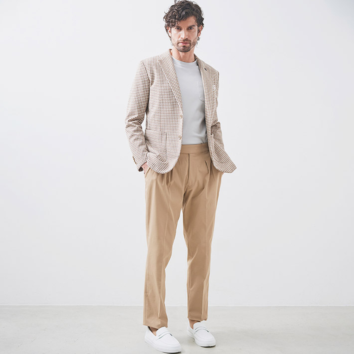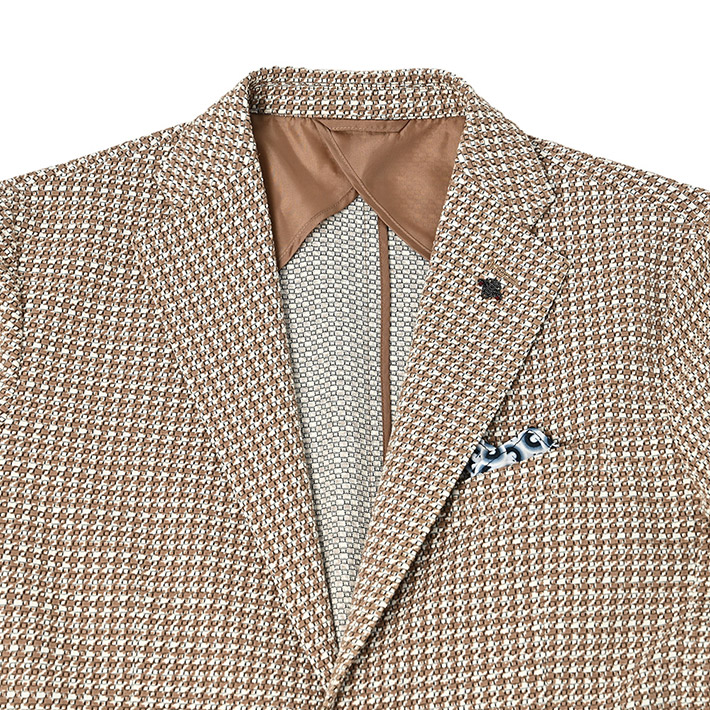 HOMEITEM JACKETS ジャケット 春夏 ブラウンの千鳥柄がトラッドで大人っぽいイタリアンジャージジャケット ROMA 千鳥プリントジャージジャケット イタリア製生地 150211 G-STAGE ジーステージ 価格: ¥49,500 (税込) 販売期間: カラー: 選択してください ベージュ サイズ: 選択してください 46 48 50 数量: 枚 カラーサイズ在庫ベージュ46○48×50○ __MEMBER_ID__ ROMA千鳥プリントジャージジャケット150211 ブラウンの千鳥柄がトラッドで大人っぽいイタリアンジャージジャケットハニカム組織の軽量ジャージ生地に、トラッドなブラウンベージュのハウンドトゥース柄を施したサマージャージジャケット。大小の大きさが違うハニカム調ジャージ生地に千鳥柄の大人っぽいプリントを施すことで、立体感と趣ある表情に仕上げました。生地はイタリアROMA社製。凹凸あるジャージ生地には見えない表面のシャリ感がドライタッチで、初夏の装いに好適です。伸縮性ある生地なので、長時間着用しても疲れないのも魅力。デザインは背抜き&裏地なしのライトな着用感を重視した仕立てと、カジュアルなパッチポケット。スポーティーなジャージ素材にブラウン×ベージュのトラッドで大人っぽい千鳥柄。相反するテイストをかけ合わせて、ドレスとカジュアルの絶妙なバランスを表現するG-stageらしい大人仕様のジャケットです。 生地の厚さ 薄いやや薄い普通やや厚い厚い 裏地 あり なし 透け感 あり なし 伸縮性 あり なし 光沢 なし あり お手入れ方法 当て布使用 お手入れ方法のアイコンについて フロントベーシックなテーラード襟背裏と同素材のチーフが付きます裏側軽快さを重視したライトな仕立て袖シンプルな筒袖と飾り重ねボタンポケット両腰パッチポケットボタンマーブル調のオリジナルボタンベント軽快なサイドベントブランドアイコン蜂をモチーフにしたアイコン"fortunate bee"ブランドプレート サイズ肩幅 胸囲 着丈 袖丈 胴囲 裾囲 ラペル幅 46(M相当) 45 104 70 60.5 94 106 8.5 48(L相当) 46 108 71 61.5 98 110 8.8 50(XL相当) 47 112 72 62.5 102 114 8.8 ※単位はcmです。※サイズ表より前後2cmは誤差の許容範囲とさせて頂いております。 サイズ表はこちら ROMA 千鳥プリントジャージジャケット イタリア製生地 150211 G-STAGE ジーステージ 価格: ¥49,500 (税込) 販売期間: カラー: 選択してください ベージュ サイズ: 選択してください 46 48 50 数量: 枚 カラーサイズ在庫ベージュ46○48×50○ サイズ上のご注意点 サイズ表記は、商品本体のサイズになります。(ヌードサイズではございません) サイズにつきましては、お手元の衣類と本サイズを合わせて下さい。商品の素材等によっては、多少サイズに誤差が生じる場合がございます。当店では前後2cmは誤差の範囲内とさせて頂いておりますので、予めご了承くださいませ。 他にお困りでしたら当店までご連絡をお願いします。 在庫につきまして 当店では、実店舗 並びに自社サイトと在庫を共有しておりますので、オーダー受付後売り違いによる完売、欠品となってしまう場合もございます。 その際は、ご注文確認メール後に再度、当店よりご連絡させて頂きますことを予めご了承下さいませ。 商品画像について 商品画像の一部は、屋内照明の下で撮影していますので撮影商品画像と実際の商品と若干の色合いに違いが生じる場合がございます。 またコンピューターディスプレイの環境によっても異なる場合がございますので、予めご了承下さいませ。