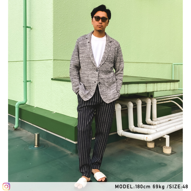 HOMEITEM JACKETS ジャケット 春夏 海風を纏う、リネンライクな高機能サマーニットジャケット 清涼 ミックスカラー ギマニット ジャケット リネンライク 軽量 サマーニット 150216 G-stage ジーステージ 価格: ¥20,900 (税込) 販売期間: カラー: 選択してください ベージュ ネイビー ブラック サイズ: 選択してください 46 48 50 数量: 枚 カラーサイズ在庫ベージュ46○48○50○ネイビー46○48○50○ブラック46○48○50○ __MEMBER_ID__ ミックスカラーギマニットサマージャケット150216 海風を纏う、リネンライクな高機能サマーニットジャケットまるでリネンのようなシャリ感のある風合いと、高機能素材が融合した、リゾートシーンにぴったりのサマーニットジャケット。綿麻の糸をベースに2色の糸を引き揃え、さらに製品にて擬麻加工を施すことで、麻の風合いを極限まで近づけています。麻100%のような清涼感がありながら、シワになりにくく、洗濯にも強いのが特徴です。[特徴]・軽量でライトな仕立て羽織っていることを忘れるほどの軽さで、快適な着心地。・保形性が高くシワにならない小さく畳んで携帯でき、旅行や出張にも最適。いつでもスマートな装いをキープ。・ウォッシャブル仕様 家庭洗濯可能で、お手入れも簡単。デイリーユースにも最適。・メランジ調のミックスカラーの編地で、 耐久性が高く、上品な印象。軽量&ドライでソフトな質感のサマーニット生地は、ニット特有の膨らみ感があり、単調になりがちな夏のスタイルに奥行きを与えます。一枚仕立て&ナチュラルショルダーの軽快な着心地を重視したライトな仕立てで、生地の凹凸が肌との接地面積を減らし、サラリとした快適な着用感を実現。 生地の厚さ 薄いやや薄い普通やや厚い厚い 裏地 あり なし 透け感 あり なし 伸縮性 あり なし 光沢 なし あり お手入れ方法 中性洗剤使用・無蛍光洗剤使用・液体酸素系漂白剤使用 お手入れ方法のアイコンについて フロントテーラードジャケット仕立て裏側着心地を重視したライトでミニマルな1枚仕立てポケット両腰パッチポケット袖シンプルな筒袖ボタンオリジナルの刻印ボタンアイコンプレート蜂をモチーフ にしたアイコン"fortunate bee"ブランドプレート付き サイズ肩幅 胸囲 着丈 袖丈 胴囲 裾囲 ラペル幅 46(M相当) 40 51 64 59 48 53 6 48(L相当) 41 53 66 60 50 55 6 50(XL相当) 42 55 68 61 52 57 6 ※単位はcmです。※サイズ表より前後2cmは誤差の許容範囲とさせて頂いております。 サイズ表はこちら 清涼 ミックスカラー ギマニット ジャケット リネンライク 軽量 サマーニット 150216 G-stage ジーステージ 価格: ¥20,900 (税込) 販売期間: カラー: 選択してください ベージュ ネイビー ブラック サイズ: 選択してください 46 48 50 数量: 枚 カラーサイズ在庫ベージュ46○48○50○ネイビー46○48○50○ブラック46○48○50○ サイズ上のご注意点 サイズ表記は、商品本体のサイズになります。(ヌードサイズではございません) サイズにつきましては、お手元の衣類と本サイズを合わせて下さい。商品の素材等によっては、多少サイズに誤差が生じる場合がございます。当店では前後2cmは誤差の範囲内とさせて頂いておりますので、予めご了承くださいませ。 他にお困りでしたら当店までご連絡をお願いします。 在庫につきまして 当店では、実店舗 並びに自社サイトと在庫を共有しておりますので、オーダー受付後売り違いによる完売、欠品となってしまう場合もございます。 その際は、ご注文確認メール後に再度、当店よりご連絡させて頂きますことを予めご了承下さいませ。 商品画像について 商品画像の一部は、屋内照明の下で撮影していますので撮影商品画像と実際の商品と若干の色合いに違いが生じる場合がございます。 またコンピューターディスプレイの環境によっても異なる場合がございますので、予めご了承下さいませ。