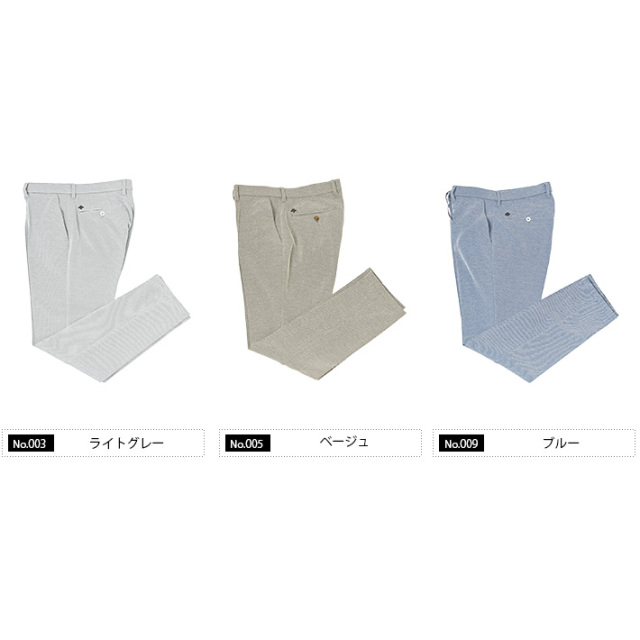 HOMEITEM PANTS パンツ 春夏 クラシカルな雰囲気バーズアイ柄のストレッチパンツ[別売りセットアップジャケット 品番:150206] 清涼&吸水速乾 バーズアイストレッチテーパードパンツ 150506 G-stage ジーステージ 価格: ¥13,200 (税込) [ポイント還元 132ポイント~] 販売期間: カラー: 選択してください ライトグレー ベージュ ブルー サイズ: 選択してください 44 46 48 50 [裾上げ希望]: お裾上げ方法を下のプルダウンより選択ください。 お裾上げをご希望の方は、購入手続き画面の 「お裾上げ 股下サイズ」に股下サイズを合わせてご記入ください。 お裾上げ後の返品・交換はお受けできません。 仕上がりはご注文承諾より1週間程度お時間頂戴いたします。 ※お裾上げの必要がない場合は、「裾上げなし」をご選択ください。 選択してください 裾上げなし(¥0) デニム仕上げ(¥1,100) シングル仕上げ(¥1,100) ダブル仕上げ(¥1,100) 数量: 枚 カラーサイズ在庫ライトグレー44○46○48○50○ベージュ44○46○48○50○ブルー44○46○48○50○ __MEMBER_ID__ 清涼&吸水速乾 バーズアイストレッチテーパードパンツ150506 クラシカルな雰囲気バーズアイ柄のストレッチパンツハリのある生地感で吸水速乾性に優れたストレッチパンツ[スーツにふさわしいバーズアイ織編み機能生地]◇バーズアイは、ビジネススーツには、欠かせない定番のスーツ生地です。古く英国では伝統的な柄として使用されています。その伝統的な柄に、ジーステージらしい機能素材に仕上げました。特徴は、360度伸縮性があり吸水性や速乾性があります。・梅雨時にも便利な速乾性・縦横に伸びるストレッチ・シワにならない・透けない・耐久性ある生地・ウエストはドローコードとベルトループ2WAY◇四方に伸びるストレッチ機能でアクティブに動けます。美しくテーパードを描くシルエットと、生地を縫い上げてセンタープリーツラインを形成した"永久プリーツ加工"で、どんなに動いても品ある表情がキープできます。ウエストはドローコードとベルトループを配しているので、ベルトなしのリラックススタイルから、ベルトをしてのドレッシーなスタイルまでカバー。しっかりとした生地に春夏らしい明るい色目がさわやかで上品な印象です。≫ 別売りセットアップジャケット(品番:150206)はこちら 生地の厚さ 薄いやや薄い普通やや厚い厚い 裏地 あり なし 透け感 あり なし 伸縮性 あり なし 光沢 なし あり お手入れ方法 当て布使用 お手入れ方法のアイコンについて フロントドローコードのイン&アウトが可能で、ベルトループも配したウエスト部分バックスタイルバックポケットが2つジーステージアイコン付きボタンブランドロゴが入ったマーブル調ボタン腰ポケット両サイドにスラントポケットセンタープリーツ生地を縫い上げて作った永久プリーツライン縫い糸もストレッチ糸を使用で糸が切れず耐久性がありますアイコンプレート左バックポケットの上に蜂をモチーフにしたアイコン"fortunate bee" サイズウエスト 股上 股下 ワタリ幅 裾幅 ヒップ 44(S相当) 78 23 75 31 16 96 46(M相当) 82 23.5 75 32 16.5 100 48(L相当) 86 24 78 33 17 104 50(XL相当) 90 24.5 78 34 17.5 108 ※単位はcmです。※サイズ表より前後2cmは誤差の許容範囲とさせて頂いております。 サイズ表はこちら 清涼&吸水速乾 バーズアイストレッチテーパードパンツ 150506 G-stage ジーステージ 価格: ¥13,200 (税込) [ポイント還元 132ポイント~] 販売期間: カラー: 選択してください ライトグレー ベージュ ブルー サイズ: 選択してください 44 46 48 50 [裾上げ希望]: お裾上げ方法を下のプルダウンより選択ください。 お裾上げをご希望の方は、購入手続き画面の 「お裾上げ 股下サイズ」に股下サイズを合わせてご記入ください。 お裾上げ後の返品・交換はお受けできません。 仕上がりはご注文承諾より1週間程度お時間頂戴いたします。 ※お裾上げの必要がない場合は、「裾上げなし」をご選択ください。 選択してください 裾上げなし(¥0) デニム仕上げ(¥1,100) シングル仕上げ(¥1,100) ダブル仕上げ(¥1,100) 数量: 枚 カラーサイズ在庫ライトグレー44○46○48○50○ベージュ44○46○48○50○ブルー44○46○48○50○ サイズ上のご注意点 サイズ表記は、商品本体のサイズになります。(ヌードサイズではございません) サイズにつきましては、お手元の衣類と本サイズを合わせて下さい。商品の素材等によっては、多少サイズに誤差が生じる場合がございます。当店では前後2cmは誤差の範囲内とさせて頂いておりますので、予めご了承くださいませ。 他にお困りでしたら当店までご連絡をお願いします。 在庫につきまして 当店では、実店舗 並びに自社サイトと在庫を共有しておりますので、オーダー受付後売り違いによる完売、欠品となってしまう場合もございます。 その際は、ご注文確認メール後に再度、当店よりご連絡させて頂きますことを予めご了承下さいませ。 商品画像について 商品画像の一部は、屋内照明の下で撮影していますので撮影商品画像と実際の商品と