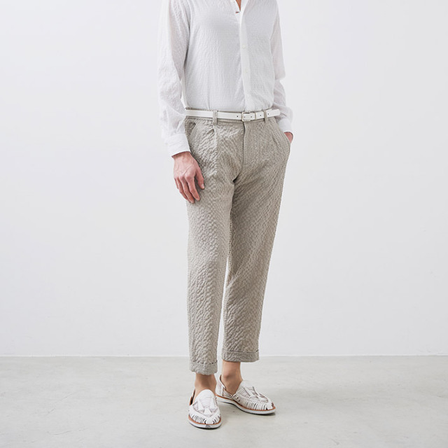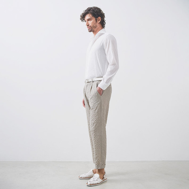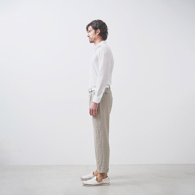 HOMEITEM PANTS パンツ 春夏 夏の主役。清涼感と陰影感が魅力の、DOBBYサッカーパンツ[別売りセットアップジャケット 品番:150208] 清涼 ドビーサッカーパンツ ストレッチ ウォッシャブル セットアップ別売り 150508 G-stage ジーステージ 価格: ¥18,700 (税込) [ポイント還元 187ポイント~] 販売期間: カラー: 選択してください ベージュ ブラック サイズ: 選択してください 44 46 48 50 [裾上げ希望]: お裾上げ方法を下のプルダウンより選択ください。 お裾上げをご希望の方は、購入手続き画面の 「お裾上げ 股下サイズ」に股下サイズを合わせてご記入ください。 お裾上げ後の返品・交換はお受けできません。 仕上がりはご注文承諾より1週間程度お時間頂戴いたします。 ※お裾上げの必要がない場合は、「裾上げなし」をご選択ください。 選択してください 裾上げなし(¥0) デニム仕上げ(¥1,100) シングル仕上げ(¥1,100) ダブル仕上げ(¥1,100) 数量: 枚 カラーサイズ在庫ベージュ44○46○48○50×ブラック44○46×48○50× __MEMBER_ID__ ドビーサッカーパンツ150508 夏の主役。清涼感と陰影感が魅力の、DOBBYサッカーパンツ伸縮性のある高機能DOBBYサッカー素材を使用した、サラッと羽織れるジャージ風パンツ。リゾート感あふれる雰囲気が、夏の装いにぴったりです。ジャケットと合わせればきちんと感を演出し、カットソーなどと合わせればリラックスしたスタイルを楽しめます。清涼感のある風合いと、繊細な陰影感のあるルックスが魅力。吸水速乾性に優れ、夏でも快適にご着用いただけます。ポリエステルのストレッチ糸を横糸に使用することで、清涼感と陰影感のある独特な表情を生み出しました。軽快な着用感を重視したライトな仕立て。ベーシックな細身の美しいシルエットが上品な面持ちで、ジャケットなどとも高相性。さらに同素材のジャケット(品番:150208)を合わせて、ドレッシーで品あるセットアップスタイルをお楽しみいただけます。夏シーズンにヘビーユースできる心地良い着心地のパンツを是非お楽しみください。≫ 別売りセットアップジャケット(品番:150208)はこちら 生地の厚さ 薄いやや薄い普通やや厚い厚い 裏地 あり なし 透け感 あり なし 伸縮性 あり なし 光沢 なし あり お手入れ方法 洗濯の際ネット使用・無蛍光洗剤使用・当て布使用・液体酸素系漂白剤使用 お手入れ方法のアイコンについて フロントベルトループとドローコードホールが施された2WAY仕様バックスタイルバックポケットが2つ右バックポケットはボタン付ボタンブランドロゴが入ったマーブル調ボタン腰ポケットタック入り両サイドにスラントポケットワンタック仕様で腰回りにゆとりがあるため、動きやすいスタイルアップ効果も期待ウエストシャーリングウエスト全体にシャーリングが入り、動きやすくラクなのにしっかりフィット裾ダブル仕上げで足元の存在感が増し、重厚感を生みクラシカルな雰囲気にブランドアイコン左バックポケット上に、蜂をモチーフにしたブランドアイコンプレート"fortunate bee" サイズウエスト 股上 股下 ワタリ幅 裾幅 ヒップ 44(S相当) 78~84 24 68 31.5 17 100 46(M相当) 82~88 24.5 70 32.5 17.5 104 48(L相当) 86~92 25 70 33.5 18 108 50(XL相当) 90~96 25.5 72 34.5 18.5 112 ※単位はcmです。※サイズ表より前後2cmは誤差の許容範囲とさせて頂いております。 サイズ表はこちら 清涼 ドビーサッカーパンツ ストレッチ ウォッシャブル セットアップ別売り 150508 G-stage ジーステージ 価格: ¥18,700 (税込) [ポイント還元 187ポイント~] 販売期間: カラー: 選択してください ベージュ ブラック サイズ: 選択してください 44 46 48 50 [裾上げ希望]: お裾上げ方法を下のプルダウンより選択ください。 お裾上げをご希望の方は、購入手続き画面の 「お裾上げ 股下サイズ」に股下サイズを合わせてご記入ください。 お裾上げ後の返品・交換はお受けできません。 仕上がりはご注文承諾より1週間程度お時間頂戴いたします。 ※お裾上げの必要がない場合は、「裾上げなし」をご選択ください。 選択してください 裾上げなし(¥0) デニム仕上げ(¥1,100) シングル仕上げ(¥1,100) ダブル仕上げ(¥1,100) 数量: 枚 カラーサイズ在庫ベージュ44○46○48○50×ブラック44○46×48○50× サイズ上のご注意点 サイズ表記は、商品本体のサイズになります。(ヌードサイズではございません) サイズにつきましては、お手元の衣類と本サイズを合わせて下さい。商品の素材等によっては、多少サイズに誤差が生じる場合がございます。当店では前後2cmは誤差の範囲内とさせて頂いておりますので、予めご了承くださいませ。 他にお困りでしたら当店までご連絡をお願いします。 在庫につきまして 当店では、実店舗 並びに自社サイトと在庫を共有しておりますので、オーダー受付後売り違いによる完売、欠品となってしまう場合もございます。 その際は、ご注文確認メール後に再度、当店よりご連絡させて頂きますことを予めご了承下さいませ。 商品画像について 商品画像の一部は、屋内照明の下で撮影してい