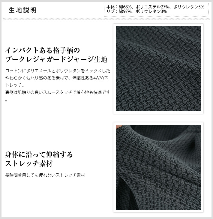 HOMEITEM PANTS パンツ 春夏 格子柄のブークレジャガードがインパクトあるジョガーショーツ 格子柄ブークレジャガードショーツ ショートパンツ 4WAYストレッチ ウォッシャブル ゴルフ 150515 G-stage ジーステージ 価格: ¥9,900 (税込) [ポイント還元 99ポイント~] 販売期間: カラー: 選択してください ホワイト ベージュ ブラック サイズ: 選択してください 46 48 50 数量: 枚 カラーサイズ在庫ホワイト46○48○50○ベージュ46○48○50○ブラック46○48○50○ __MEMBER_ID__ 格子柄ブークレジャガードショートパンツ150515 格子柄のブークレジャガードがインパクトあるジョガーショーツコットンにポリエステルとポリウレタンをミックスしたやわらかくもハリ感のある素材で、伸縮性ある4WAYストレッチ。裏側は肌触りの良いスムースタッチで着心地も快適です。シャーリング&ドローコードのウエスト、裾のリブ、左ポケット下の刺繍など、スポーティーで軽快なデザインもポイントです。ウォッシャブルなので、スポーツシーンにも好適。2色使いの凹凸ある格子柄で、ホワイト、ベージュ、ブラックの3カラーを展開。同素材のフーデッドブルゾン(品番:150403)を合わせると、セットアップスタイルを楽しむことも可能です。≫ 同素材ジップパーカー(品番:150403)はこちら 生地の厚さ 薄いやや薄い普通やや厚い厚い 裏地 あり なし 透け感 あり なし 伸縮性 あり なし 光沢 なし あり お手入れ方法 洗濯の際ネット使用・無蛍光洗剤使用・当て布使用・液体酸素系漂白剤使用 お手入れ方法のアイコンについて ウエストシャーリングゴムと内側にドローコードのリラックス仕様ベルトループも付き、ベルトスタイルも楽しめる2WAY仕様バックスタイル右後ろにパッチポケットポケット両腰脇のポケット裾裾にはソフトにフィットするリブ刺繍インパクトある立体的な刺繍 サイズウエスト 股上 股下 ワタリ幅 裾幅 ヒップ 46(M相当) 80 24.5 25 31 24.5 98 48(L相当) 84 25 26 32 25 102 50(XL相当) 88 25.5 27 33 25.5 106 ※単位はcmです。※サイズ表より前後2cmは誤差の許容範囲とさせて頂いております。 サイズ表はこちら 格子柄ブークレジャガードショーツ ショートパンツ 4WAYストレッチ ウォッシャブル ゴルフ 150515 G-stage ジーステージ 価格: ¥9,900 (税込) [ポイント還元 99ポイント~] 販売期間: カラー: 選択してください ホワイト ベージュ ブラック サイズ: 選択してください 46 48 50 数量: 枚 カラーサイズ在庫ホワイト46○48○50○ベージュ46○48○50○ブラック46○48○50○ サイズ上のご注意点 サイズ表記は、商品本体のサイズになります。(ヌードサイズではございません) サイズにつきましては、お手元の衣類と本サイズを合わせて下さい。商品の素材等によっては、多少サイズに誤差が生じる場合がございます。当店では前後2cmは誤差の範囲内とさせて頂いておりますので、予めご了承くださいませ。 他にお困りでしたら当店までご連絡をお願いします。 在庫につきまして 当店では、実店舗 並びに自社サイトと在庫を共有しておりますので、オーダー受付後売り違いによる完売、欠品となってしまう場合もございます。 その際は、ご注文確認メール後に再度、当店よりご連絡させて頂きますことを予めご了承下さいませ。 商品画像について 商品画像の一部は、屋内照明の下で撮影していますので撮影商品画像と実際の商品と若干の色合いに違いが生じる場合がございます。 またコンピューターディスプレイの環境によっても異なる場合がございますので、予めご了承下さいませ。