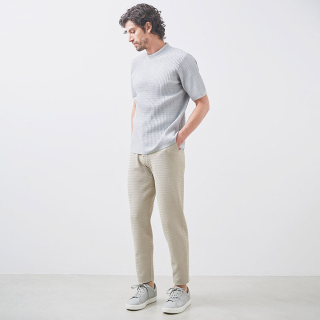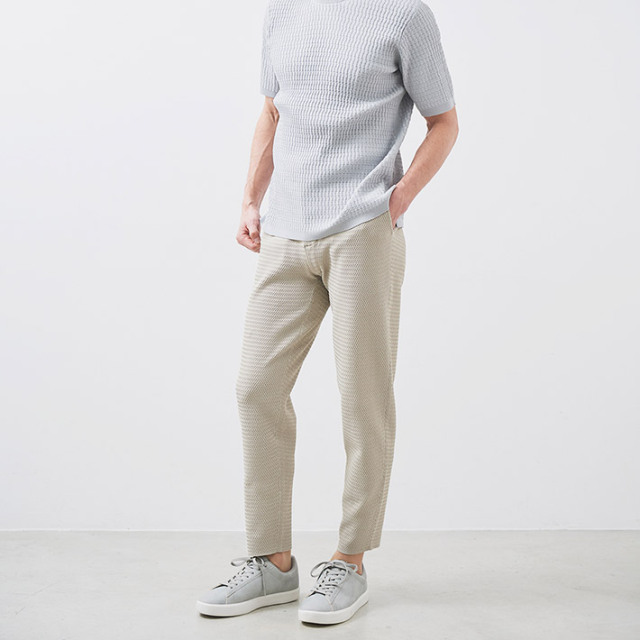 HOMEITEM PANTS パンツ 春夏 究極のシーンレス、快適サマーニットパンツ[別売りセットアップジャケット 品番:150215] 【会員専用】 G-ZERO ホリゾンタル ヘリンボーン ニットパンツ ウォッシャブル イージーパンツ セットアップ 別売り 150523 G-stage ジーステージ 価格: ¥18,700 (税込) [ポイント還元 187ポイント~] 販売期間: カラー: 選択してください ベージュ ネイビー ブラック サイズ: 選択してください 46 48 50 [裾上げ希望](シングル仕上げのみ): こちらのパンツは、生地の特性上、 シングル仕上げのみお裾上げが可能でございます。 ご理解の程、よろしくお願い致します。 お裾上げをご希望の方は、購入手続き画面の 「お裾上げ 股下サイズ」に股下サイズを合わせてご記入ください。 お裾上げ後の返品・交換はお受けできません。 仕上がりはご注文承諾より1週間程度お時間頂戴いたします。 ※お裾上げの必要がない場合は、「裾上げなし」をご選択ください。 選択してください 裾上げなし(¥0) シングル仕上げ(¥1,100) 数量: 枚 カラーサイズ在庫ベージュ46○48○50○ネイビー46○48○50○ブラック46○48○50○ __MEMBER_ID__ G-ZERO ホリゾンタルヘリンボーンニットパンツ150523 究極のシーンレス、快適サマーニットパンツ「大人が着る究極のシーンレスウェア」をコンセプトに作られたニットジャージのパンツ。家⇔街、仕事⇔スポーツなど、1セットあれば、あらゆるシーンに着回せるのが魅力です。避暑地に似合う涼しげでアクティブな装いをイメージしたホリゾンタルヘリンボーンパターン。[特徴]・軽量でライトな仕立て。・保形性が高くシワにならない。小さくたたんで携帯でき、旅行や出張にも最適です。・ウォッシャブル仕様。家庭洗濯可能だから、デイリーにご着用いただけます。・メランジ調のジャガード織りで耐久性が高く、透けない。軽量&ドライでソフトな質感のサマーニット生地は、ニット特有の膨らみ感ある面持ち。スタイルが単調にならないのが魅力です。1枚仕立ての軽快な着心地を重視したライトな仕立てで、生地の凹凸による肌との接地面積を減らし、サラリとした快適な着用感を実現。同素材別売りジャケット(品番:150215)と合わせてセットアップスタイルもお楽しみいただけます。≫ 別売りセットアップパンツ(品番:150215)はこちら 生地の厚さ 薄いやや薄い普通やや厚い厚い 裏地 あり なし 透け感 あり なし 伸縮性 あり なし 光沢 なし あり お手入れ方法 洗濯の際ネット使用・無蛍光洗剤使用・当て布使用 お手入れ方法のアイコンについて フロントドローコードのイン&アウトが可能で、ベルトループも配したウエスト部分バックスタイルパッチポケットボタンブランドロゴが入ったマーブル調ボタン腰ポケット両サイドにスラントポケットG-STAGEのアイコン付き裾部ライトな仕立て サイズウエスト 股上(前|後) 股下 ワタリ幅(前|後) 裾幅 ヒップ 46(M相当) 36 22|35 72 25.5|35.5 14.5 49 48(L相当) 40 22.5|35.5 74 26.5|36.5 15 53 50(XL相当) 44 23|36 74 27.5|37.5 15.5 57 ※単位はcmです。※サイズ表より前後2cmは誤差の許容範囲とさせて頂いております。 サイズ表はこちら 【会員専用】 G-ZERO ホリゾンタル ヘリンボーン ニットパンツ ウォッシャブル イージーパンツ セットアップ 別売り 150523 G-stage ジーステージ 価格: ¥18,700 (税込) [ポイント還元 187ポイント~] 販売期間: カラー: 選択してください ベージュ ネイビー ブラック サイズ: 選択してください 46 48 50 [裾上げ希望](シングル仕上げのみ): こちらのパンツは、生地の特性上、 シングル仕上げのみお裾上げが可能でございます。 ご理解の程、よろしくお願い致します。 お裾上げをご希望の方は、購入手続き画面の 「お裾上げ 股下サイズ」に股下サイズを合わせてご記入ください。 お裾上げ後の返品・交換はお受けできません。 仕上がりはご注文承諾より1週間程度お時間頂戴いたします。 ※お裾上げの必要がない場合は、「裾上げなし」をご選択ください。 選択してください 裾上げなし(¥0) シングル仕上げ(¥1,100) 数量: 枚 カラーサイズ在庫ベージュ46○48○50○ネイビー46○48○50○ブラック46○48○50○ サイズ上のご注意点 サイズ表記は、商品本体のサイズになります。(ヌードサイズではございません) サイズにつきましては、お手元の衣類と本サイズを合わせて下さい。商品の素材等によっては、多少サイズに誤差が生じる場合がございます。当店では前後2cmは誤差の範囲内とさせて頂いておりますので、予めご了承くださいませ。 他にお困りでしたら当店までご連絡をお願いします。 在庫につきまして 当店では、実店舗 並びに自社サイトと在庫を共有しておりますので、オーダー受付後売り違いによる完売、欠品となってしまう場合もございます。 その際は、ご注文確認メール後に再度、当店よりご連絡させて頂きますことを予めご了承下さいませ。 商品画像について 商品画像の一部は、屋内照明の下で撮影していますので撮影商品画像と実際の商品と若干の色合いに違いが生じる場