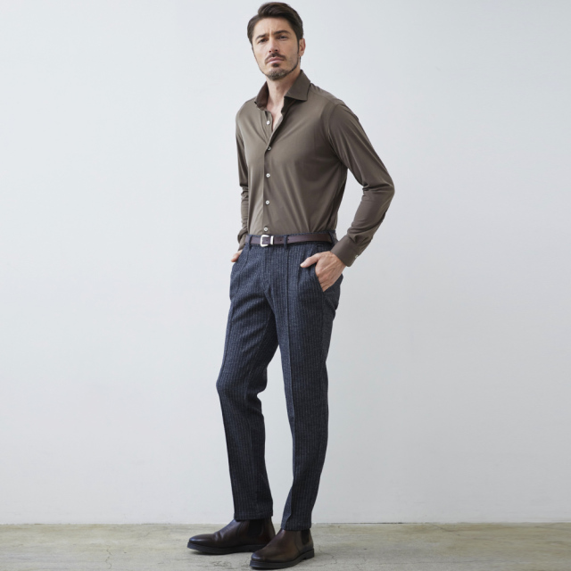 HOMEITEM PANTS パンツ 秋冬 ウーリーな大人の品に心地良さをプラスしたウールジャージのスラックス[別売り セットアップジャケット 240201/240212] LEON掲載 ウールジャージパンツ ストレッチ ジャージ スラックス ウール混 美脚パンツ セットアップ 別売り 秋冬 240501 G-STAGE ジーステージ 価格: ¥15,400 (税込) 販売期間: カラー: 選択してください ライトグレー チャコールグレー ネイビー 千鳥ブラック サイズ: 選択してください 44 46 48 50 [裾上げ希望]: お裾上げ方法を下のプルダウンより選択ください。 お裾上げをご希望の方は、購入手続き画面の 「お裾上げ 股下サイズ」に股下サイズを合わせてご記入ください。 お裾上げ後の返品・交換はお受けできません。 仕上がりはご注文承諾より1週間程度お時間頂戴いたします。 ※お裾上げの必要がない場合は、「裾上げなし」をご選択ください。 選択してください 裾上げなし(¥0) デニム仕上げ(¥1,100) シングル仕上げ(¥1,100) ダブル仕上げ(¥1,100) 数量: 枚 カラーサイズ在庫ライトグレー44○46○48○50○チャコールグレー44○46○48○50○ネイビー44○46○48○50○千鳥ブラック44○46○48× 50× __MEMBER_ID__ ウールミックスストレッチジャージパンツ240501 ウーリーな大人の品に心地良さをプラスしたウールジャージのスラックスウール混のウォーム感と品ある面持ちに、ジャージ素材の快適な着用感をプラスした、ウールミックスジャージパンツ。今季はトラッドな色柄に、深みあるパターンをミックスした"モダンでトラッド"な表情が新鮮。ほど良い肉厚感のウール混素材で、高級感と大人の品ある表情でありながら、体に沿って伸縮する快適な着心地を併せ持ったパンツです。大人に相応しいクラシックな色柄をG-stageらしいカラーで表現し、ウーリーで立体感ある面持ちに仕上げました。ウール混でありながらピリングがおきにくい品質も魅力です。シルエットは緩やかにテーパードを描く、より美しく品ある美脚仕様。生地を摘まんで縫い上げるプリーツ仕上を採用し、どんなに動いても消えない永久クリースラインを実現。同素材のジャケット(品番:240201)やWブレストジャケット(品番:240212)を合わせてセットアップでドレッシーにこなすのはもちろん、シックなカラ―なので、キレイ目なジャケパンスタイルにも活躍します。ベーシックなスラックスデザインなので、ON-OFF自在に着回せるコストパフォーマンスの高さも魅力。まさに、クラシックとカジュアルを融合させたG-stageを象徴するアイコニックなパンツです。≫ 別売りセットアップシングルジャケット(品番:240201)はこちら≫ 別売りセットアップダブルジャケット(品番:240212)はこちら 生地の厚さ 薄いやや薄い普通やや厚い厚い 裏地 あり なし 透け感 あり なし 伸縮性 あり なし 光沢 なし あり お手入れ方法 当て布使用 お手入れ方法のアイコンについて フロントベルトループとドローコードホールが施された2WAY仕様バックバックポケットが2つ左バックポケットはボタン付釦シックなカラーの刻印入りボタンアイコンプレート左バックポケット上に、蜂をモチーフ にしたブランドアイコンプレート"fortunate bee"永久プリーツセンタークリースラインを縫い上げて形成している永久プリーツ仕様ポケット両サイドのスラントポケット サイズウエスト 股上 股下 ワタリ幅 裾幅 ヒップ 44(S相当) 78 23 75 31 16 96 46(M相当) 82 23.5 75 32 16.5 100 48(L相当) 86 24 78 33 17 104 50(XL相当) 90 24.5 78 34 17.5 108 ※単位はcmです。※サイズ表より前後2cmは誤差の許容範囲とさせて頂いております。 サイズ表はこちら LEON掲載 ウールジャージパンツ ストレッチ ジャージ スラックス ウール混 美脚パンツ セットアップ 別売り 秋冬 240501 G-STAGE ジーステージ 価格: ¥15,400 (税込) 販売期間: カラー: 選択してください ライトグレー チャコールグレー ネイビー 千鳥ブラック サイズ: 選択してください 44 46 48 50 [裾上げ希望]: お裾上げ方法を下のプルダウンより選択ください。 お裾上げをご希望の方は、購入手続き画面の 「お裾上げ 股下サイズ」に股下サイズを合わせてご記入ください。 お裾上げ後の返品・交換はお受けできません。 仕上がりはご注文承諾より1週間程度お時間頂戴いたします。 ※お裾上げの必要がない場合は、「裾上げなし」をご選択ください。 選択してください 裾上げなし(¥0) デニム仕上げ(¥1,100) シングル仕上げ(¥1,100) ダブル仕上げ(¥1,100) 数量: 枚 カラーサイズ在庫ライトグレー44○46○48○50○チャコールグレー44○46○48○50○ネイビー44○46○48○50○千鳥ブラック44○46○48× 50× サイズ上のご注意点 サイズ表記は、商品本体のサイズになります。(ヌードサイズではございません) サイズにつきましては、お手元の衣類と本サイズを合わせて下さい。商品の素材等によっては、多少サイズに誤差が生じる場合がございます。当店では前後2cmは誤差の範囲内とさせて頂いておりますので、予めご了承くださいませ。 他にお困りでしたら当店までご連絡をお願いします。 在庫