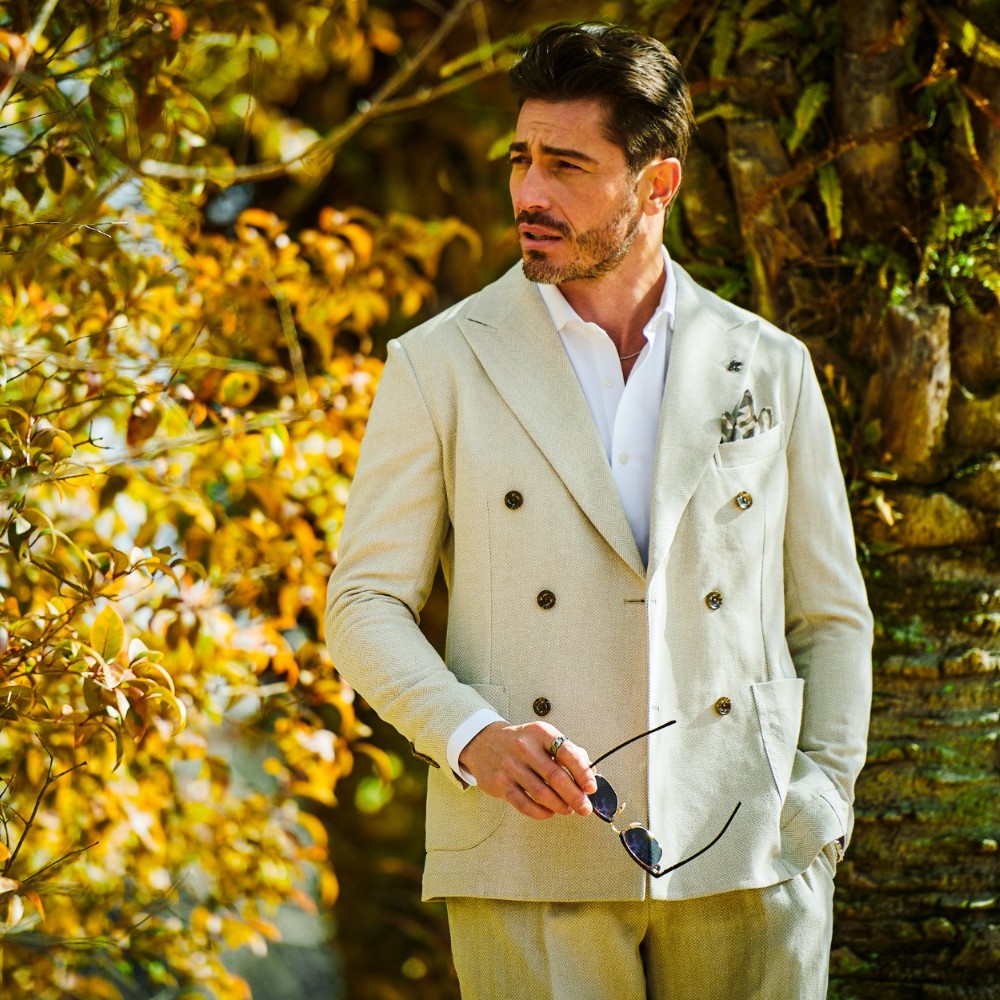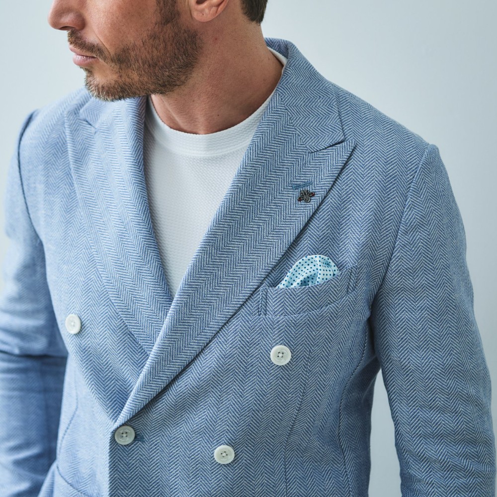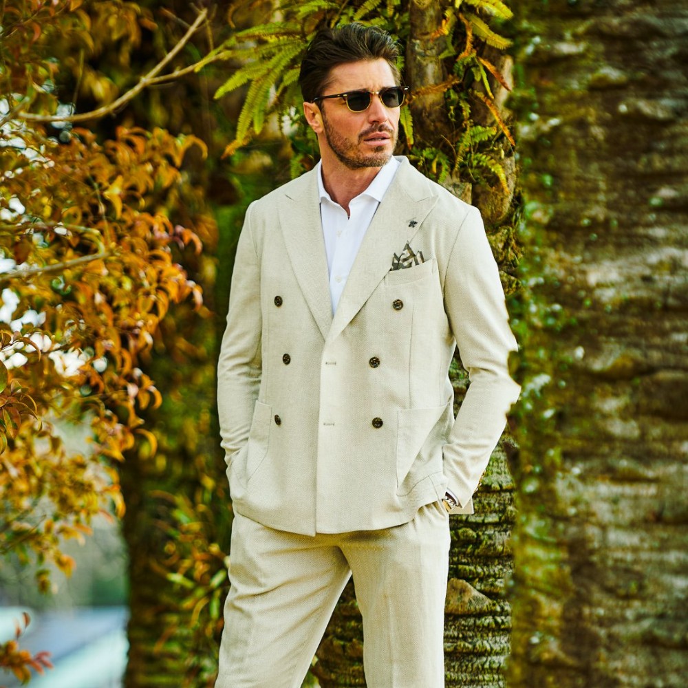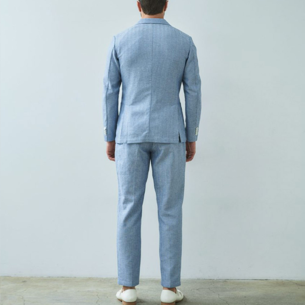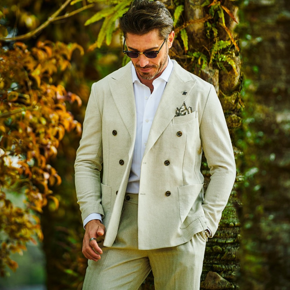 HOMEBRANDS G-STAGE ジーステージ ジャケット 清涼感のあるクラシカルなダブルブレストジャケット[セットアップスラックス別売り 360504/360505] コットンリネン ヘリンボーン ダブルジャケット 春 ドライ セットアップ対応 G-STAGE ジーステージ 360205 価格: ¥28,600 (税込) [ポイント還元 286ポイント~] 販売期間: カラー: 選択してください ベージュ サックス ネイビー サイズ: 選択してください 44 46 48 50 52 数量: 個 カラーサイズ在庫ベージュ44○46○48○50○52○サックス44○46○48○50○52×ネイビー44○46○48○50○52× __MEMBER_ID__ コットンリネンヘリンボーンダブルジャケット360205 FEATURE MOVIE B.R.CHANNEL 紹介動画 B.R.CHANNELでご紹介いただいたこの夏おすすめのアイテムを 動画でご覧いただけます。 清涼感のあるクラシカルなダブルブレストジャケットリネンのシャリ感とコットンのハリ感を掛け合わせた、清涼感あふれるドライタッチジャケット。コットンリネンの涼やかな質感はそのままに、汗ばむ季節でも肌離れが良く、ベタつきを感じさせないサラリとした着心地を実現しました。表情豊かなヘリンボーンの織り柄にシャンブレー調の色合いが重なり、見た目にも涼し気な印象です。[特徴]・通気性の良いドライな肌触り・シャンブレー調の奥行きのある色合い・綿混の適度な厚みとハリ感・リネン混の表情豊かなネップ感・ナチュラルストレッチでノンストレスな可動域デザインはクラシカルで品のあるダブルブレストを採用。エレガントな面持ちながら、着心地の良さを重視したライトな仕立てです。ヘリンボーンとシャンブレー調の柄行きは、セットアップでドレッシーに着こなすもよし、ジーンズやチノパンなどを合わせたジャパンスタイルでカジュアルに着流すのもおすすめです。同素材のセットアップパンツは、グルカパンツ(品番:360505)とワンタックパンツ(品番:360504)をご用意。品のある大人のセットアップスタイルをお楽しみください。 生地の厚さ 薄いやや薄い普通やや厚い厚い 裏地 あり なし 透け感 あり なし 伸縮性 ややあり なし 光沢 なし あり お手入れ方法 当て布使用 お手入れ方法のアイコンについて フロント襟クラシカルなダブルブレストのテーラードデザイン背裏生地と同生地のポケットチーフ付裏側着心地の良さを重視したライトな仕立て背裏あり、内ポケット2つあり袖・ポケットシンプルな筒袖と両腰にパッチポケット背面スマートなバックスタイルと軽快なサイドベンツ サイズ肩幅 胸囲 着丈 袖丈 胴囲 裾囲 ラペル幅 44(S相当) 44 101 70 60.5 91 103 10.2 46(M相当) 45 104 70 60.5 94 106 10.2 48(L相当) 46 108 71 61.5 98 110 10.5 50(XL相当) 47 112 72 62.5 102 114 10.5 52(XXL相当) 48 116 73 62.5 106 118 10.5 ※単位はcmです。※サイズ表より前後2cmは誤差の許容範囲とさせて頂いております。 サイズ表はこちら コットンリネン ヘリンボーン ダブルジャケット 春 ドライ セットアップ対応 G-STAGE ジーステージ 360205 価格: ¥28,600 (税込) [ポイント還元 286ポイント~] 販売期間: カラー: 選択してください ベージュ サックス ネイビー サイズ: 選択してください 44 46 48 50 52 数量: 個 カラーサイズ在庫ベージュ44○46○48○50○52○サックス44○46○48○50○52×ネイビー44○46○48○50○52× サイズ上のご注意点 サイズ表記は、商品本体のサイズになります。(ヌードサイズではございません) サイズにつきましては、お手元の衣類と本サイズを合わせて下さい。商品の素材等によっては、多少サイズに誤差が生じる場合がございます。当店では前後2cmは誤差の範囲内とさせて頂いておりますので、予めご了承くださいませ。 他にお困りでしたら当店までご連絡をお願いします。 在庫につきまして 当店では、実店舗 並びに自社サイトと在庫を共有しておりますので、オーダー受付後売り違いによる完売、欠品となってしまう場合もございます。 その際は、ご注文確認メール後に再度、当店よりご連絡させて頂きますことを予めご了承下さいませ。 商品画像について 商品画像の一部は、屋内照明の下で撮影していますので撮影商品画像と実際の商品と若干の色合いに違いが生じる場合がございます。 またコンピューターディスプレイの環境によっても異なる場合がございますので、予めご了承下さいませ。 商品番号について 商品番号、カラー番号は生産管理上の番号でございますので、ネット上の番号とは異なる場合がございます。 商品ページ記載の番号と、商品の下げ札・ネームの番号が異なる場合でも、商品に間違いはございませんのでご安心ください。