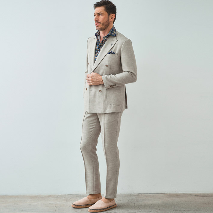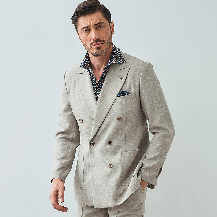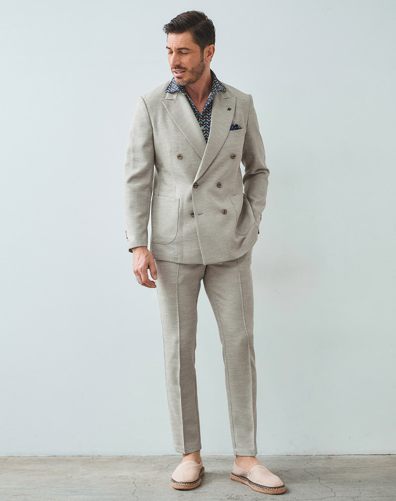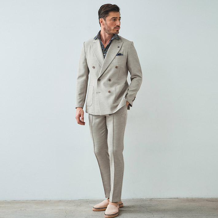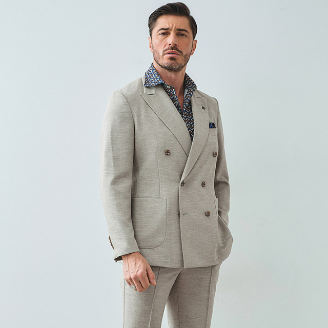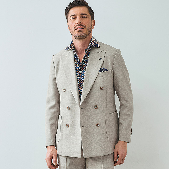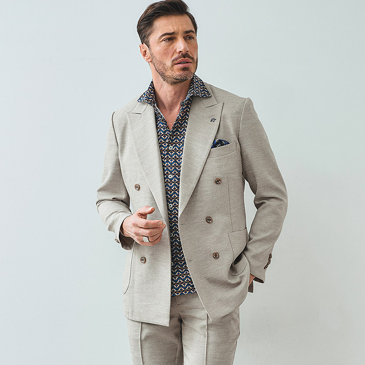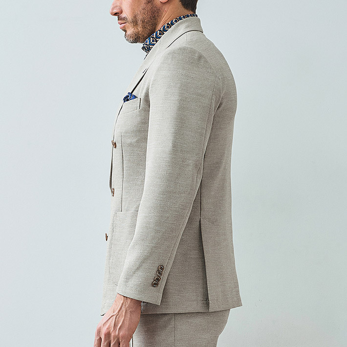 HOMEITEM JACKETS ジャケット 春夏 大人の風格漂う、涼やかなリネンライクダブルジャケット[セットアップスラックス別売り 360507] リネンライク ドライ スラブ ダブルジャケット メンズ 春夏 セットアップ対応 ジーステージ G-STAGE 360208 価格: ¥24,200 (税込) [ポイント還元 242ポイント~] 販売期間: カラー: 選択してください ベージュ ブルー サイズ: 選択してください 44 46 48 50 数量: 枚 カラーサイズ在庫ベージュ44○46○48○50○ブルー44○46○48○50○ __MEMBER_ID__ リネンライクメランジスラブダブルジャケット360208 大人の風格漂う、涼やかなリネンライクダブルジャケット麻のようなナチュラル感と、ドライな風合いのリネンライクダブルブレストジャケット。環境に配慮したサステナブルな素材を使用し、人にも地球にも優しい一着に仕上げました。濃淡豊かな糸を組み合わせることで、メランジの深みと立体感を表現。シワになりにくく、ピリングがおきにくい品質も魅力です。ツイードのような趣のある表情を持ちながらも、シャリ感のある涼やかな肌触りで、汗ばむ季節でも快適に過ごせます。[特徴]・仕立て映えする中肉厚の程よいハリ感・シワになりにくいイージーケア仕様・肌離れの良いドライな肌触り・ご家庭で洗濯できるウォッシャブル仕様デザインはクラシカルで品のあるダブルブレストを採用。エレガントな面持ちながら、着心地の良さを重視したライトな仕立てです。リネンライクな表情ながらシワになりにくく、普段着使いは勿論、ワークスタイルにも好適です。家庭洗濯可能なのでデイリーにご着用いただけます。同素材のパンツ(品番:360507)を合わせて、品のある大人のセットアップスタイルをお楽しみください。 生地の厚さ 薄いやや薄い普通やや厚い厚い 裏地 あり なし 透け感 あり なし 伸縮性 あり なし 光沢 なし あり お手入れ方法 洗濯の際ネット使用・無蛍光洗剤使用・当て布使用 お手入れ方法のアイコンについて フロント襟クラシカルで力強い印象のダブルブレスト背裏生地と同生地のポケットチーフ付裏側着心地を重視したライトな仕立て背裏あり、内ポケット2つあり袖・ポケットシンプルな筒袖と両腰にパッチポケットベント軽快なサイドベンツ背面スマートなバックスタイルアイコンプレートフラワーホールの下に蜂をモチーフにしたブランドアイコンプレート"fortunate bee" 麻のようなナチュラル感と、ドライな風合いのリネンライクダブルブレストジャケット。環境に配慮したサステナブルな素材を使用し、人にも地球にも優しい一着に仕上げました。濃淡豊かな糸を組み合わせることで、メランジの深みと立体感を表現。シワになりにくく、ピリングがおきにくい品質も魅力です。ツイードのような趣のある表情を持ちながらも、シャリ感のある涼やかな肌触りで、汗ばむ季節でも快適に過ごせます。[特徴]・仕立て映えする中肉厚の程よいハリ感・シワになりにくいイージーケア仕様・肌離れの良いドライな肌触り・ご家庭で洗濯できるウォッシャブル仕様デザインはクラシカルで品のあるダブルブレストを採用。エレガントな面持ちながら、着心地の良さを重視したライトな仕立てです。リネンライクな表情ながらシワになりにくく、普段着使いは勿論、ワークスタイルにも好適です。家庭洗濯可能なのでデイリーにご着用いただけます。同素材のパンツ(品番:360507)を合わせて、品のある大人のセットアップスタイルをお楽しみください。 サイズ肩幅 胸囲 着丈 袖丈 胴囲 裾囲 ラペル幅 44(S相当) 44 101 70 60.5 91 103 10.2 46(M相当) 45 104 70 60.5 94 106 10.2 48(L相当) 46 108 71 61.5 98 110 10.5 50(XL相当) 47 112 72 62.5 102 114 10.5 ※単位はcmです。※サイズ表より前後2cmは誤差の許容範囲とさせて頂いております。※日本人男性モデル:身長180cm 胸囲94cm 胴囲76cm ヒップ93cm サイズ表はこちら リネンライク ドライ スラブ ダブルジャケット メンズ 春夏 セットアップ対応 ジーステージ G-STAGE 360208 価格: ¥24,200 (税込) [ポイント還元 242ポイント~] 販売期間: カラー: 選択してください ベージュ ブルー サイズ: 選択してください 44 46 48 50 数量: 枚 カラーサイズ在庫ベージュ44○46○48○50○ブルー44○46○48○50○ サイズ上のご注意点 サイズ表記は、商品本体のサイズになります。(ヌードサイズではございません) サイズにつきましては、お手元の衣類と本サイズを合わせて下さい。商品の素材等によっては、多少サイズに誤差が生じる場合がございます。当店では前後2cmは誤差の範囲内とさせて頂いておりますので、予めご了承くださいませ。 他にお困りでしたら当店までご連絡をお願いします。 在庫につきまして 当店では、実店舗 並びに自社サイトと在庫を共有しておりますので、オーダー受付後売り違いによる完売、欠品となってしまう場合もございます。 その際は、ご注文確認メール後に再度、当店よりご連絡させて頂きますことを予めご了承下さいませ。 商品画像について 商品画像の一部は、屋内照明の下で撮影していま