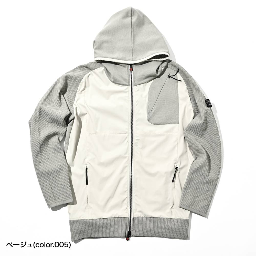 HOMEITEM OUTER アウター 春夏 ゴルフに最適な高い伸縮性とドライメッシュニット素材の軽快なカジュアルバーカーブルゾン[同素材セットアップパンツ別売り 360516] ハイブリット ニットコンビ ジップアップパーカー メンズ 春夏 セットアップ対応 ゴルフ ジーステージ G-STAGE 360406 価格: ¥19,800 (税込) [ポイント還元 198ポイント~] 販売期間: カラー: 選択してください ベージュ ブラック サイズ: 選択してください 46 48 50 数量: 枚 カラーサイズ在庫ベージュ46○48○50○ブラック46○48○50○ __MEMBER_ID__ 素材表地:ナイロン87%、ポリウレタン13%別布:ポリエステル100%リブ部分:ポリエステル100%サイズ胸囲 着丈 裄丈 胴囲 裾囲 46(M相当) 106 67 81.25 100 86 48(L相当) 112 69 83.25 106 92 50(XL相当) 118 71 85.25 112 98 ※単位はcmです。※サイズ表より前後2cmは誤差の許容範囲とさせて頂いております。 サイズ表はこちら 生地の厚さ 薄いやや薄い普通やや厚い厚い 裏地 あり なし 透け感 あり なし 伸縮性 あり なし 光沢 なし あり お手入れ方法 中性洗剤使用・無蛍光洗剤使用・当て布使用 お手入れ方法のアイコンについて ハイブリットサマーニットドライパーカーブルゾン軽快なカジュアルスタイルに相応しく、身体の部位によって素材を変えたハイブリットな機能素材は、伸縮性の高さとドライメッシュニット素材でノンストレスな着心地。ゴルフウエアにもおすすめな仕様と伸縮性です。同素材のパンツ(品番:360516)と合わせて、セットアップスタイルもお楽しみいただけます。[特性にあった生地仕様]◇前身頃は、四方に伸びる高機能ナイロン地。◇後ろ身頃は、発汗しやすい背部に速乾性ある柔らかく膨らみある天竺編み。こちらの素材は伸縮性にも優れているため、ゴルフに最適です。◇お袖は、ドライメッシュ鹿の子編みでトレッチ効果と通気性を高めた生地。[フード]◇袖部と背部の生地を使った2重構造で淵にはパイピングの施しでより型崩れしません。[フロント]◇口元までのフルZIP。W仕様。[便利なZIPポケット]◇両腰ポケットは、スピンドル付のZIP仕様。◇左胸に配色生地でスピンドル付のZIP仕様。[袖口]◇敢えてリブ編みにせず涼し気に筒袖仕様。 サイズ上のご注意点 サイズ表記は、商品本体のサイズになります。(ヌードサイズではございません) サイズにつきましては、お手元の衣類と本サイズを合わせて下さい。商品の素材等によっては、多少サイズに誤差が生じる場合がございます。当店では前後2cmは誤差の範囲内とさせて頂いておりますので、予めご了承くださいませ。 他にお困りでしたら当店までご連絡をお願いします。 在庫につきまして 当店では、実店舗 並びに自社サイトと在庫を共有しておりますので、オーダー受付後売り違いによる完売、欠品となってしまう場合もございます。 その際は、ご注文確認メール後に再度、当店よりご連絡させて頂きますことを予めご了承下さいませ。 商品画像について 商品画像の一部は、屋内照明の下で撮影していますので撮影商品画像と実際の商品と若干の色合いに違いが生じる場合がございます。 またコンピューターディスプレイの環境によっても異なる場合がございますので、予めご了承下さいませ。 商品番号について 商品番号、カラー番号は生産管理上の番号でございますので、ネット上の番号とは異なる場合がございます。 商品ページ記載の番号と、商品の下げ札・ネームの番号が異なる場合でも、商品に間違いはございませんのでご安心ください。 ハイブリット ニットコンビ ジップアップパーカー メンズ 春夏 セットアップ対応 ゴルフ ジーステージ G-STAGE 360406 価格: ¥19,800 (税込) [ポイント還元 198ポイント~] 販売期間: カラー: 選択してください ベージュ ブラック サイズ: 選択してください 46 48 50 数量: 枚 カラーサイズ在庫ベージュ46○48○50○ブラック46○48○50○