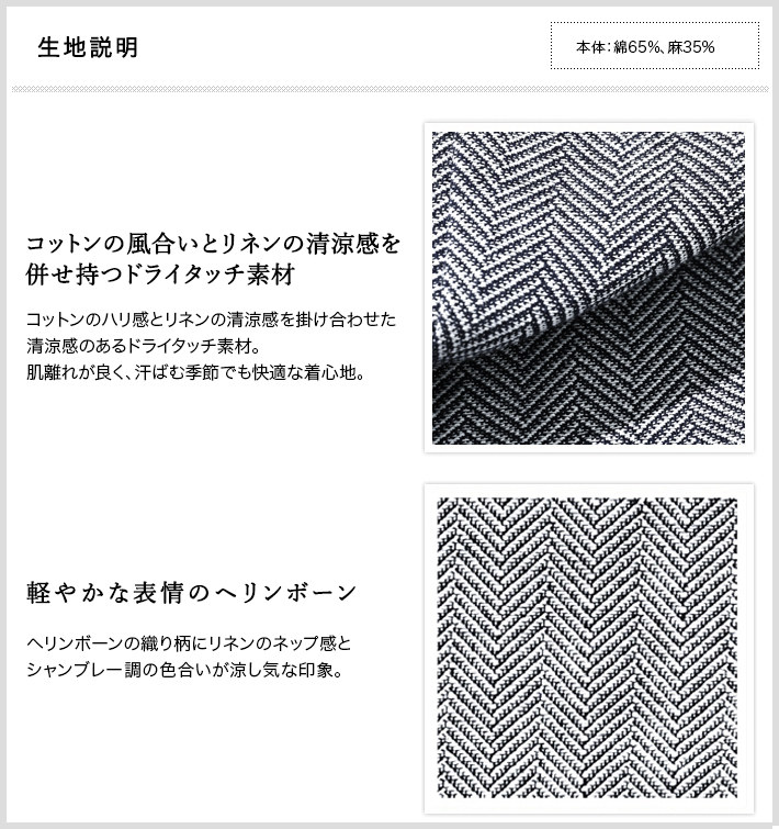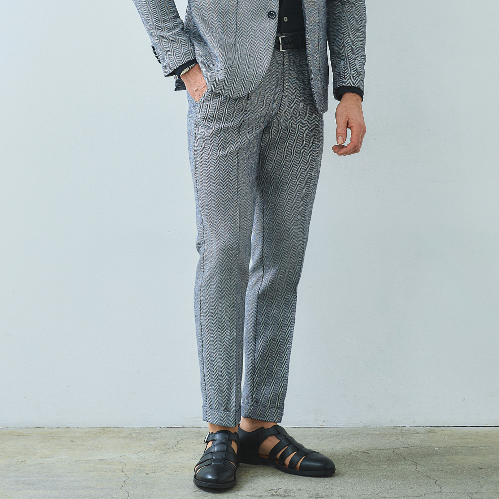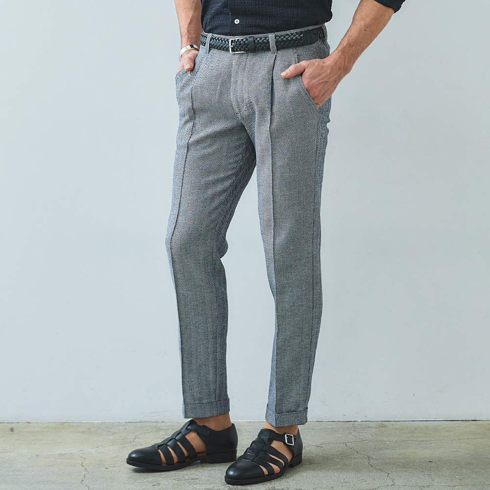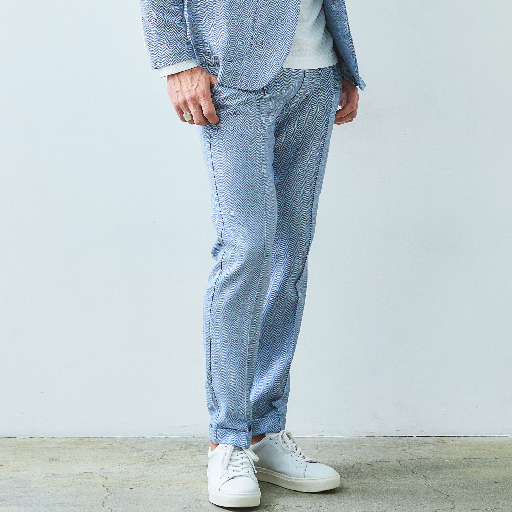 HOMEBRANDS G-STAGE ジーステージ パンツ ドライな肌ざわりの清涼感あふれるヘリンボーンタックスラックス[セットアップジャケット別売り 360204/360205] コットンリネン ヘリンボーン ワンタックパンツ 春 ドライ セットアップ対応 ジーステージ G-STAGE 360504 価格: ¥15,400 (税込) [ポイント還元 154ポイント~] 販売期間: カラー: 選択してください ベージュ サックスブルー ネイビー サイズ: 選択してください 44 46 48 50 52 [裾上げ希望]: お裾上げ方法を下のプルダウンより選択ください。 お裾上げをご希望の方は、購入手続き画面の 「お裾上げ 股下サイズ」に股下サイズを合わせてご記入ください。 お裾上げ後の返品・交換はお受けできません。 仕上がりはご注文承諾より1週間程度お時間頂戴いたします。 ※お裾上げの必要がない場合は、「裾上げなし」をご選択ください。 選択してください 裾上げなし(¥0) デニム仕上げ(¥1,100) シングル仕上げ(¥1,100) ダブル仕上げ(¥1,100) 数量: 個 カラーサイズ在庫ベージュ44○46○48○50○52○サックスブルー44○46○48○50○52○ネイビー44○46○48○50○52○ __MEMBER_ID__ コットンリネンヘリンボーンドライタックパンツ360504 FEATURE MOVIE B.R.CHANNEL 紹介動画 B.R.CHANNELでご紹介いただいたこの夏おすすめのアイテムを 動画でご覧いただけます。 コットンリネンの清涼感が心地よいドライタッチスラックスコットンのハリ感とリネンのシャリ感を掛け合わせた、清涼感のあるドライタッチスラックス。肌離れが良く、汗ばむ季節でもベタつきを感じさせないサラリとした着心地を実現しました。表情豊かなヘリンボーンの織り柄にシャンブレー調の色合いが重なり、見た目にも涼し気な印象。ゆとりのあるデザインで、コットンリネンの涼やかな質感はそのままにノンストレスでご着用いただけます。[特徴]・ウエストは快適なバックシャーリング仕様・ワンタックのリラックスシルエット・シャンブレー調の奥行きのある色合い・通気性の良いドライな肌触り・綿混の適度な厚みとハリ感・リネン混の表情豊かなネップ感・ナチュラルストレッチでノンストレスな可動域腰周りに立体的なゆとりを生み出す1タック仕様で、身体のラインを拾わないリラックスした穿き心地。ウエスト部分はバックシャーリング仕様で、フロントのスマートな見た目はそのままに圧迫感のない快適なフィット感を実現しました。同素材のセットアップジャケットは、シングル(品番:360204)とダブル(品番:360205)をご用意。品のある大人のセットアップスタイルをお楽しみください。 生地の厚さ 薄いやや薄い普通やや厚い厚い 裏地 あり なし 透け感 あり なし 伸縮性 ややあり なし 光沢 なし あり お手入れ方法 当て布使用 お手入れ方法のアイコンについて ウエストベルトループとドローコードホールが施された2WAY仕様バックスタイル両側にポケット付きセンタークリースライン縫い上げて形成している永久プリーツ仕様裾クラシカルな雰囲気漂うダブル仕様 サイズウエスト 股上 股下 ワタリ幅 裾幅 ヒップ 44(S相当) 78-84 24 75 31.5 17 100.4 46(M相当) 82-88 24.5 75 32.5 17.5 104 48(L相当) 86-92 25 77 33.5 18 107.6 50(XL相当) 90-96 25.5 77 34.5 18.5 111.2 52(XXL相当) 94-100 26 77 35.5 19 115.2 ※単位はcmです。※サイズ表より前後2cmは誤差の許容範囲とさせて頂いております。 サイズ表はこちら コットンリネン ヘリンボーン ワンタックパンツ 春 ドライ セットアップ対応 ジーステージ G-STAGE 360504 価格: ¥15,400 (税込) [ポイント還元 154ポイント~] 販売期間: カラー: 選択してください ベージュ サックスブルー ネイビー サイズ: 選択してください 44 46 48 50 52 [裾上げ希望]: お裾上げ方法を下のプルダウンより選択ください。 お裾上げをご希望の方は、購入手続き画面の 「お裾上げ 股下サイズ」に股下サイズを合わせてご記入ください。 お裾上げ後の返品・交換はお受けできません。 仕上がりはご注文承諾より1週間程度お時間頂戴いたします。 ※お裾上げの必要がない場合は、「裾上げなし」をご選択ください。 選択してください 裾上げなし(¥0) デニム仕上げ(¥1,100) シングル仕上げ(¥1,100) ダブル仕上げ(¥1,100) 数量: 個 カラーサイズ在庫ベージュ44○46○48○50○52○サックスブルー44○46○48○50○52○ネイビー44○46○48○50○52○ サイズ上のご注意点 サイズ表記は、商品本体のサイズになります。(ヌードサイズではございません) サイズにつきましては、お手元の衣類と本サイズを合わせて下さい。商品の素材等によっては、多少サイズに誤差が生じる場合がございます。当店では前後2cmは誤差の範囲内とさせて頂いておりますので、予めご了承くださいませ。 他にお困りでしたら当店までご連絡をお願いします。 在庫につきまして 当店では、実店舗 並びに自社サイトと在庫を共有しておりますので、オーダー受付後売り違いによる完売、欠品となってしまう場合もございます。 その際は、ご注文確認メール後に再度、当店よりご連絡させて頂きますことを予めご了承下さいませ。 商品