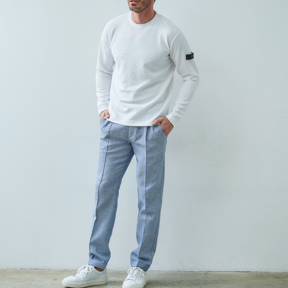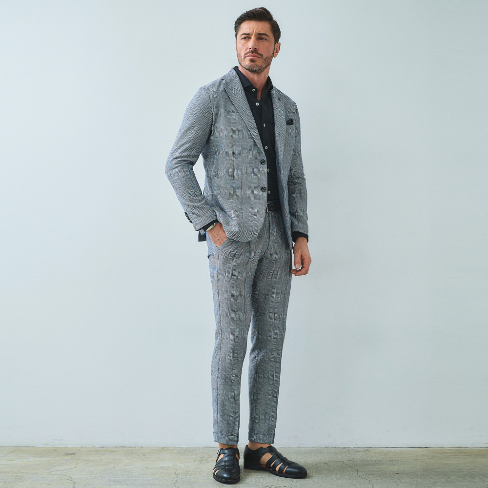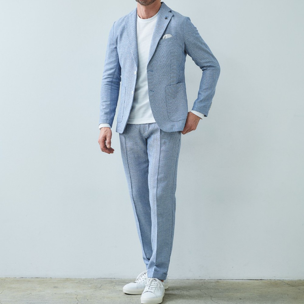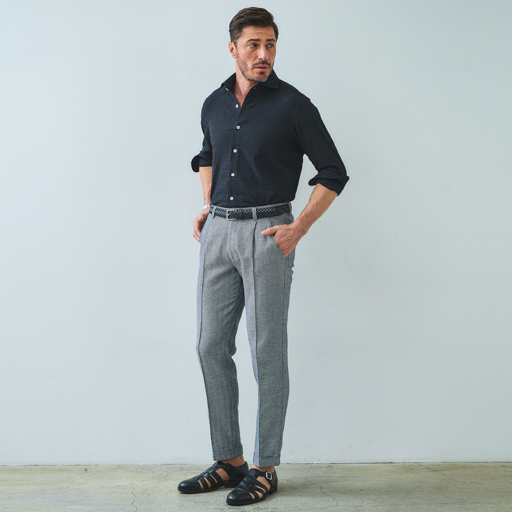 HOMEBRANDS G-STAGE ジーステージ パンツ ドライな肌ざわりの清涼感あふれるヘリンボーンタックスラックス[セットアップジャケット別売り 360204/360205] コットンリネン ヘリンボーン ワンタックパンツ 春 ドライ セットアップ対応 ジーステージ G-STAGE 360504 価格: ¥15,400 (税込) [ポイント還元 154ポイント~] 販売期間: カラー: 選択してください ベージュ サックスブルー ネイビー サイズ: 選択してください 44 46 48 50 52 [裾上げ希望]: お裾上げ方法を下のプルダウンより選択ください。 お裾上げをご希望の方は、購入手続き画面の 「お裾上げ 股下サイズ」に股下サイズを合わせてご記入ください。 お裾上げ後の返品・交換はお受けできません。 仕上がりはご注文承諾より1週間程度お時間頂戴いたします。 ※お裾上げの必要がない場合は、「裾上げなし」をご選択ください。 選択してください 裾上げなし(¥0) デニム仕上げ(¥1,100) シングル仕上げ(¥1,100) ダブル仕上げ(¥1,100) 数量: 個 カラーサイズ在庫ベージュ44○46○48○50○52○サックスブルー44○46○48○50○52○ネイビー44○46○48○50○52○ __MEMBER_ID__ コットンリネンヘリンボーンドライタックパンツ360504 FEATURE MOVIE B.R.CHANNEL 紹介動画 B.R.CHANNELでご紹介いただいたこの夏おすすめのアイテムを 動画でご覧いただけます。 コットンリネンの清涼感が心地よいドライタッチスラックスコットンのハリ感とリネンのシャリ感を掛け合わせた、清涼感のあるドライタッチスラックス。肌離れが良く、汗ばむ季節でもベタつきを感じさせないサラリとした着心地を実現しました。表情豊かなヘリンボーンの織り柄にシャンブレー調の色合いが重なり、見た目にも涼し気な印象。ゆとりのあるデザインで、コットンリネンの涼やかな質感はそのままにノンストレスでご着用いただけます。[特徴]・ウエストは快適なバックシャーリング仕様・ワンタックのリラックスシルエット・シャンブレー調の奥行きのある色合い・通気性の良いドライな肌触り・綿混の適度な厚みとハリ感・リネン混の表情豊かなネップ感・ナチュラルストレッチでノンストレスな可動域腰周りに立体的なゆとりを生み出す1タック仕様で、身体のラインを拾わないリラックスした穿き心地。ウエスト部分はバックシャーリング仕様で、フロントのスマートな見た目はそのままに圧迫感のない快適なフィット感を実現しました。同素材のセットアップジャケットは、シングル(品番:360204)とダブル(品番:360205)をご用意。品のある大人のセットアップスタイルをお楽しみください。 生地の厚さ 薄いやや薄い普通やや厚い厚い 裏地 あり なし 透け感 あり なし 伸縮性 ややあり なし 光沢 なし あり お手入れ方法 当て布使用 お手入れ方法のアイコンについて ウエストベルトループとドローコードホールが施された2WAY仕様バックスタイル両側にポケット付きセンタークリースライン縫い上げて形成している永久プリーツ仕様裾クラシカルな雰囲気漂うダブル仕様 サイズウエスト 股上 股下 ワタリ幅 裾幅 ヒップ 44(S相当) 78-84 24 75 31.5 17 100.4 46(M相当) 82-88 24.5 75 32.5 17.5 104 48(L相当) 86-92 25 77 33.5 18 107.6 50(XL相当) 90-96 25.5 77 34.5 18.5 111.2 52(XXL相当) 94-100 26 77 35.5 19 115.2 ※単位はcmです。※サイズ表より前後2cmは誤差の許容範囲とさせて頂いております。 サイズ表はこちら コットンリネン ヘリンボーン ワンタックパンツ 春 ドライ セットアップ対応 ジーステージ G-STAGE 360504 価格: ¥15,400 (税込) [ポイント還元 154ポイント~] 販売期間: カラー: 選択してください ベージュ サックスブルー ネイビー サイズ: 選択してください 44 46 48 50 52 [裾上げ希望]: お裾上げ方法を下のプルダウンより選択ください。 お裾上げをご希望の方は、購入手続き画面の 「お裾上げ 股下サイズ」に股下サイズを合わせてご記入ください。 お裾上げ後の返品・交換はお受けできません。 仕上がりはご注文承諾より1週間程度お時間頂戴いたします。 ※お裾上げの必要がない場合は、「裾上げなし」をご選択ください。 選択してください 裾上げなし(¥0) デニム仕上げ(¥1,100) シングル仕上げ(¥1,100) ダブル仕上げ(¥1,100) 数量: 個 カラーサイズ在庫ベージュ44○46○48○50○52○サックスブルー44○46○48○50○52○ネイビー44○46○48○50○52○ サイズ上のご注意点 サイズ表記は、商品本体のサイズになります。(ヌードサイズではございません) サイズにつきましては、お手元の衣類と本サイズを合わせて下さい。商品の素材等によっては、多少サイズに誤差が生じる場合がございます。当店では前後2cmは誤差の範囲内とさせて頂いておりますので、予めご了承くださいませ。 他にお困りでしたら当店までご連絡をお願いします。 在庫につきまして 当店では、実店舗 並びに自社サイトと在庫を共有しておりますので、オーダー受付後売り違いによる完売、欠品となってしまう場合もございます。 その際は、ご注文確認メール後に再度、当店よりご連絡させて頂きますことを予めご了承下さいませ。 商品