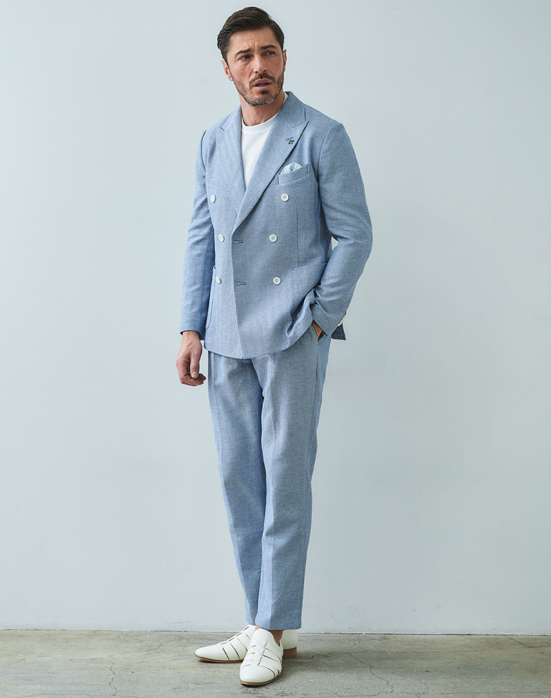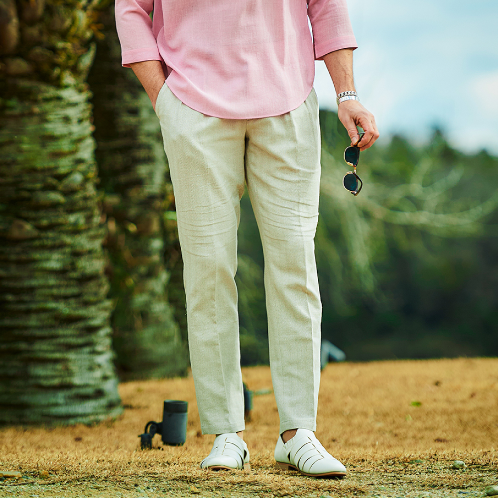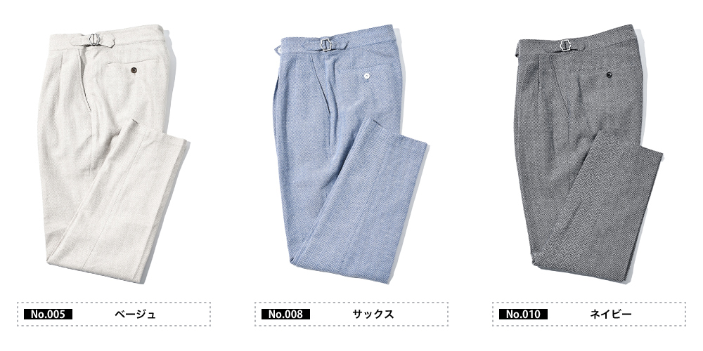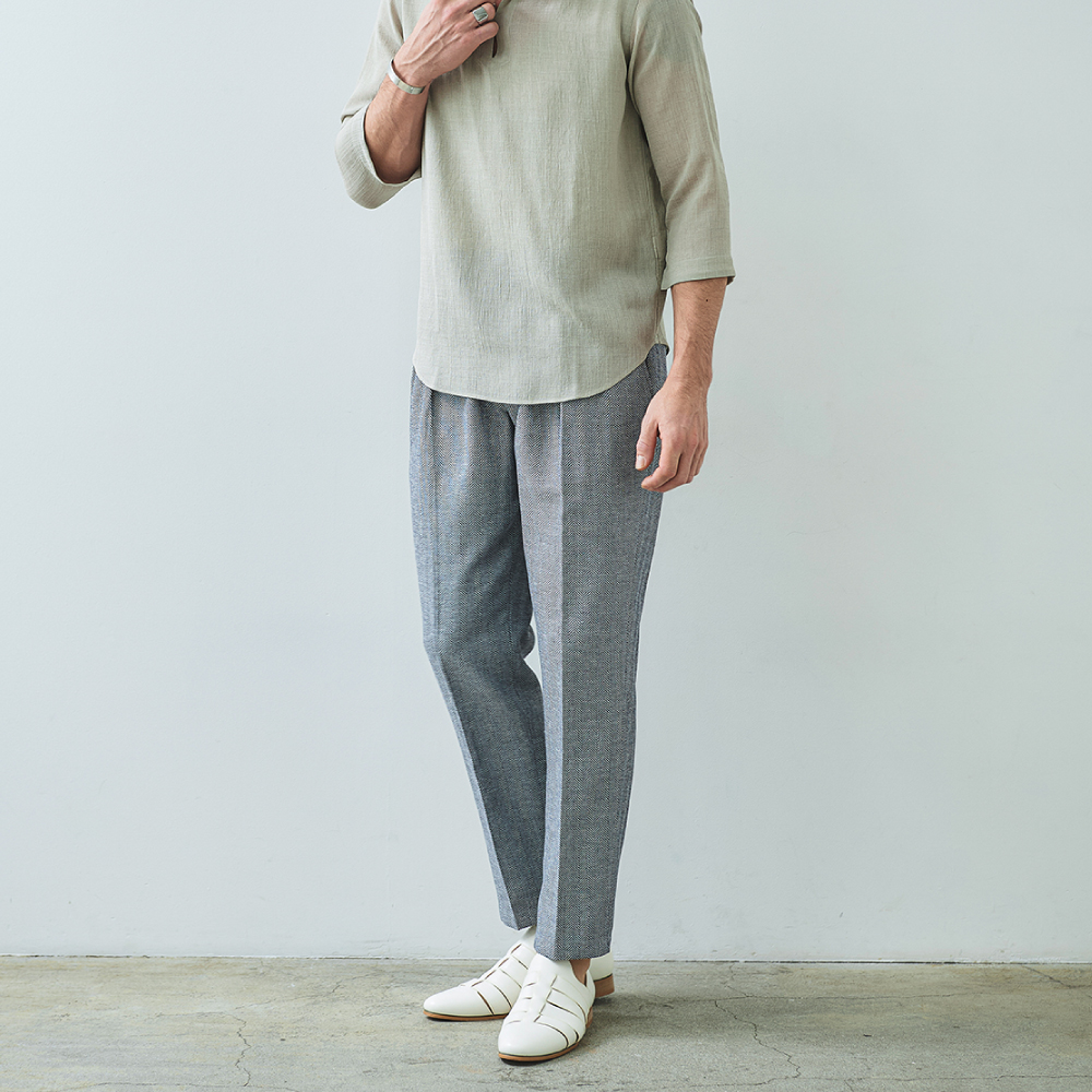 HOMEBRANDS G-STAGE ジーステージ パンツ ドライな肌ざわりの清涼感あふれるヘリンボーングルカスラックス[セットアップジャケット別売り 360205/360204] コットンリネン ヘリンボーン グルカパンツ 春 セットアップ対応 ドライ ジーステージ G-STAGE 360505 価格: ¥15,400 (税込) [ポイント還元 154ポイント~] 販売期間: カラー: 選択してください ベージュ サックスブルー ネイビー サイズ: 選択してください 44 46 48 50 52 [裾上げ希望]: お裾上げ方法を下のプルダウンより選択ください。 お裾上げをご希望の方は、購入手続き画面の 「お裾上げ 股下サイズ」に股下サイズを合わせてご記入ください。 お裾上げ後の返品・交換はお受けできません。 仕上がりはご注文承諾より1週間程度お時間頂戴いたします。 ※お裾上げの必要がない場合は、「裾上げなし」をご選択ください。 選択してください 裾上げなし(¥0) デニム仕上げ(¥1,100) シングル仕上げ(¥1,100) ダブル仕上げ(¥1,100) 数量: 個 カラーサイズ在庫ベージュ44○46○48○50○52○サックスブルー44×46○48○50○52×ネイビー44○46○48○50○52× __MEMBER_ID__ コットンリネンヘリンボーンドライグルカパンツ360505 FEATURE MOVIE B.R.CHANNEL 紹介動画 B.R.CHANNELでご紹介いただいたこの夏おすすめのアイテムを 動画でご覧いただけます。 涼しく快適に穿けるグルカ仕様のドライタッチスラックスコットンのハリ感とリネンのシャリ感を掛け合わせた、清涼感のあるドライタッチスラックス。肌離れが良く、汗ばむ季節でもベタつきを感じさせないサラリとした着心地を実現しました。表情豊かなヘリンボーンの織り柄にシャンブレー調の色合いが重なり、見た目にも涼し気な印象。ゆとりのあるデザインで、コットンリネンの涼やかな質感はそのままにノンストレスでご着用いただけます。[特徴]・ベルトレスで着用できるグルカ仕様・通気性の良いドライな肌触り・シャンブレー調の奥行きのある色合い・綿混の適度な厚みとハリ感・リネン混の表情豊かなネップ感・ナチュラルストレッチでノンストレスな可動域デザインはウエストを包み込むアジャスター仕様のグルカデザインで、細かな微調整が可能。 ウエスト周りに余裕を持たせつつ、膝下緩やかにテーパードを描くシルエットが、ルーズになり過ぎず品良くこなせる大人仕様のリラックスパンツです。単品使いでシャツやカットソーをタックインすれば、ウエストがアクセントとなりベルトレスで美しいシルエットをキープできます。同素材のセットアップジャケットは、ダブル(品番:360205)とシングル(品番:360204)をご用意しました。着こなしの幅を広げる新しいワードローブとしてお楽しみください。 生地の厚さ 薄いやや薄い普通やや厚い厚い 裏地 あり なし 透け感 あり なし 伸縮性 ややあり なし 光沢 なし あり お手入れ方法 当て布使用 お手入れ方法のアイコンについて ウエストベルトレスでサイドのアジャスターで調節するグルカ仕様バックスタイルボタン付きバックポケットが2つフロントゆとりあるラインを形成する2タック仕様のウエスト両サイドにスラントポケットサイドベルトレスで穿けるサイドアジャスター裾テーパードが際立つシンプルな仕上がり サイズウエスト 股上 股下 ワタリ幅 裾幅 ヒップ 44(S相当) 78 24.5 75 35 17 111 46(M相当) 82 25 75 36 17.5 115 48(L相当) 86 25.5 78 37 18 119 50(XL相当) 90 26 78 38 18.5 123 52(XXL相当) 94 26.5 78 39 19 127 ※単位はcmです。※サイズ表より前後2cmは誤差の許容範囲とさせて頂いております。 サイズ表はこちら コットンリネン ヘリンボーン グルカパンツ 春 セットアップ対応 ドライ ジーステージ G-STAGE 360505 価格: ¥15,400 (税込) [ポイント還元 154ポイント~] 販売期間: カラー: 選択してください ベージュ サックスブルー ネイビー サイズ: 選択してください 44 46 48 50 52 [裾上げ希望]: お裾上げ方法を下のプルダウンより選択ください。 お裾上げをご希望の方は、購入手続き画面の 「お裾上げ 股下サイズ」に股下サイズを合わせてご記入ください。 お裾上げ後の返品・交換はお受けできません。 仕上がりはご注文承諾より1週間程度お時間頂戴いたします。 ※お裾上げの必要がない場合は、「裾上げなし」をご選択ください。 選択してください 裾上げなし(¥0) デニム仕上げ(¥1,100) シングル仕上げ(¥1,100) ダブル仕上げ(¥1,100) 数量: 個 カラーサイズ在庫ベージュ44○46○48○50○52○サックスブルー44×46○48○50○52×ネイビー44○46○48○50○52× サイズ上のご注意点 サイズ表記は、商品本体のサイズになります。(ヌードサイズではございません) サイズにつきましては、お手元の衣類と本サイズを合わせて下さい。商品の素材等によっては、多少サイズに誤差が生じる場合がございます。当店では前後2cmは誤差の範囲内とさせて頂いておりますので、予めご了承くださいませ。 他にお困りでしたら当店までご連絡をお願いします。 在庫につきまして 当店では、実店舗 並びに自社サイトと在庫を共有しておりますので、オーダー受付後売り