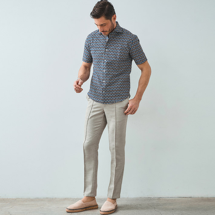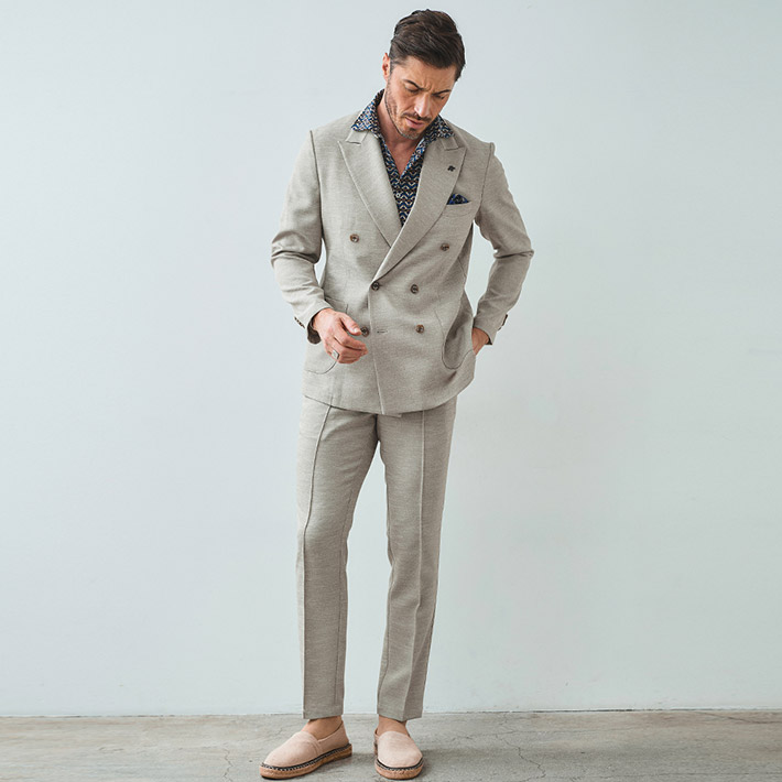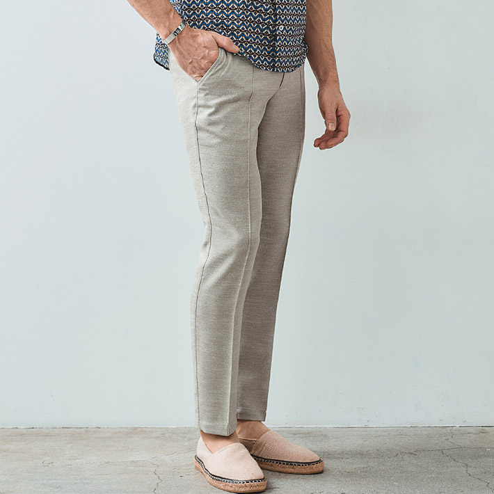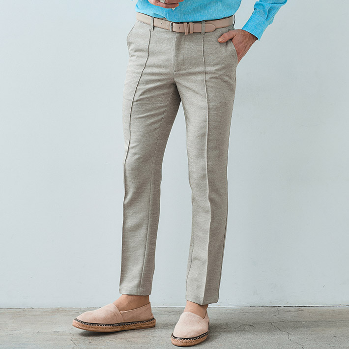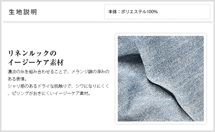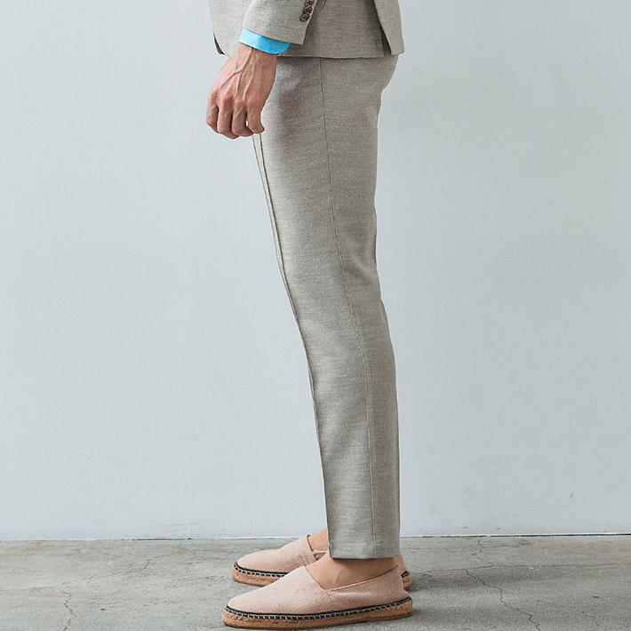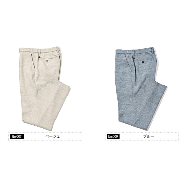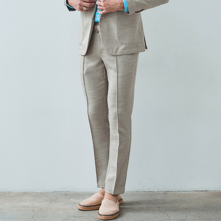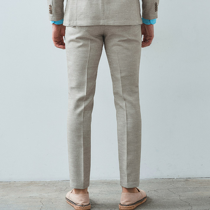 HOMEITEM SETUP セットアップ 春夏 大人の品を感じさせる涼やかなリネンライクスラックス[セットアップジャケット別売り 360207/360208] リネンライク ドライ スラブ スラックス パンツ 春夏 メンズ セットアップ対応 ジーステージ G-STAGE 360507 価格: ¥14,300 (税込) [ポイント還元 143ポイント~] 販売期間: カラー: 選択してください ベージュ ブルー サイズ: 選択してください 44 46 48 50 [裾上げ希望]: お裾上げ方法を下のプルダウンより選択ください。 お裾上げをご希望の方は、購入手続き画面の 「お裾上げ 股下サイズ」に股下サイズを合わせてご記入ください。 お裾上げ後の返品・交換はお受けできません。 仕上がりはご注文承諾より1週間程度お時間頂戴いたします。 ※お裾上げの必要がない場合は、「裾上げなし」をご選択ください。 選択してください 裾上げなし(¥0) デニム仕上げ(¥1,100) シングル仕上げ(¥1,100) ダブル仕上げ(¥1,100) 数量: 枚 カラーサイズ在庫ベージュ44○46○48○50○ブルー44○46○48○50○ __MEMBER_ID__ リネンライクメランジスラブスラックス360507 大人の品を感じさせる涼やかなリネンライクスラックス麻のようなナチュラル感と、ドライな風合いのリネンライクパンツ。環境に配慮したサステナブルな素材を使用し、人にも地球にも優しい一着に仕上げました。濃淡豊かな糸を組み合わせることで、メランジの深みと立体感を表現。シワになりにくく、ピリングがおきにくい品質も魅力です。ツイードのような趣のある表情を持ちながらも、シャリ感のある涼やかな肌触りで、汗ばむ季節でも快適に過ごせます。[特徴]・仕立て映えする中肉厚の程よいハリ感・シワになりにくいイージーケア仕様・肌離れの良いドライな肌触り・ご家庭で洗濯できるウォッシャブル仕様・ウエストはドローコードとベルトループの2WAY仕様・どんなに動いても崩れない永久センタープリーツ加工美しくテーパードを描くシルエットと、生地を縫い上げてセンタープリーツラインを形成した"永久プリーツ加工"で、どんなに動いても品ある表情がキープできます。ウエストはドローコードとベルトループを配しているので、ベルトなしのリラックススタイルから、ベルトをしてのドレッシーなスタイルまでカバー。家庭洗濯可能なのでデイリーにご着用いただけます。同素材のジャケットはシングル(品番:360207)とダブル(品番:360208)をご用意。ジャケット・パンツを合わせて、品のある大人のセットアップスタイルをお楽しみください。 生地の厚さ 薄いやや薄い普通やや厚い厚い 裏地 あり なし 透け感 あり なし 伸縮性 あり なし 光沢 なし あり お手入れ方法 洗濯の際ネット使用・無蛍光洗剤使用・当て布使用 お手入れ方法のアイコンについて ウエストベルトループとドローコードで2WAY仕様バックスタイル両側にポケット付きフロントシンプルなフロントと両サイドにスラントポケットセンタークリースライン縫い上げて形成する永久プリーツ仕様裾テーパードが際立つシンプルな仕上がりアイコンプレート左バックポケット横に蜂をモチーフにしたブランドアイコンプレート"fortunate bee" 麻のようなナチュラル感と、ドライな風合いのリネンライクパンツ。環境に配慮したサステナブルな素材を使用し、人にも地球にも優しい一着に仕上げました。濃淡豊かな糸を組み合わせることで、メランジの深みと立体感を表現。シワになりにくく、ピリングがおきにくい品質も魅力です。ツイードのような趣のある表情を持ちながらも、シャリ感のある涼やかな肌触りで、汗ばむ季節でも快適に過ごせます。[特徴]・仕立て映えする中肉厚の程よいハリ感・シワになりにくいイージーケア仕様・肌離れの良いドライな肌触り・ご家庭で洗濯できるウォッシャブル仕様・ウエストはドローコードとベルトループの2WAY仕様・どんなに動いても崩れない永久センタープリーツ加工美しくテーパードを描くシルエットと、生地を縫い上げてセンタープリーツラインを形成した"永久プリーツ加工"で、どんなに動いても品ある表情がキープできます。ウエストはドローコードとベルトループを配しているので、ベルトなしのリラックススタイルから、ベルトをしてのドレッシーなスタイルまでカバー。家庭洗濯可能なのでデイリーにご着用いただけます。同素材のジャケットはシングル(品番:360207)とダブル(品番:360208)をご用意。ジャケット・パンツを合わせて、品のある大人のセットアップスタイルをお楽しみください。 サイズウエスト 股上 股下 ワタリ幅 裾幅 ヒップ 44(S相当) 78 23 75 31 16 96 46(M相当) 82 23.5 75 32 16.5 100 48(L相当) 86 24 78 33 17 104 50(XL相当) 90 24.5 78 34 17.5 108 ※単位はcmです。※サイズ表より前後2cmは誤差の許容範囲とさせて頂いております。※日本人男性モデル:身長180cm 胸囲94cm 胴囲76cm ヒップ93cm サイズ表はこちら リネンライク ドライ スラブ スラックス パンツ 春夏 メンズ セットアップ対応 ジーステージ G-STAGE 360507 価格: ¥14,300 (税込) [ポイント還元 143ポイ