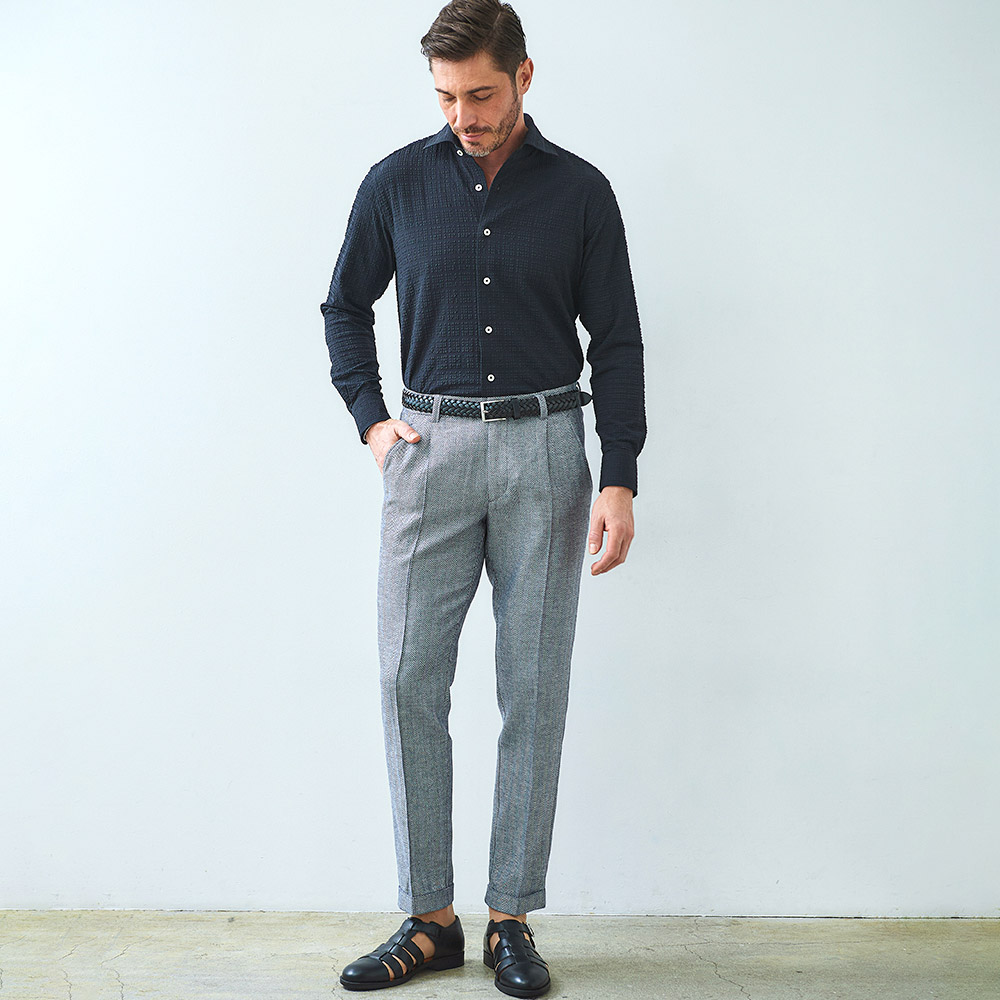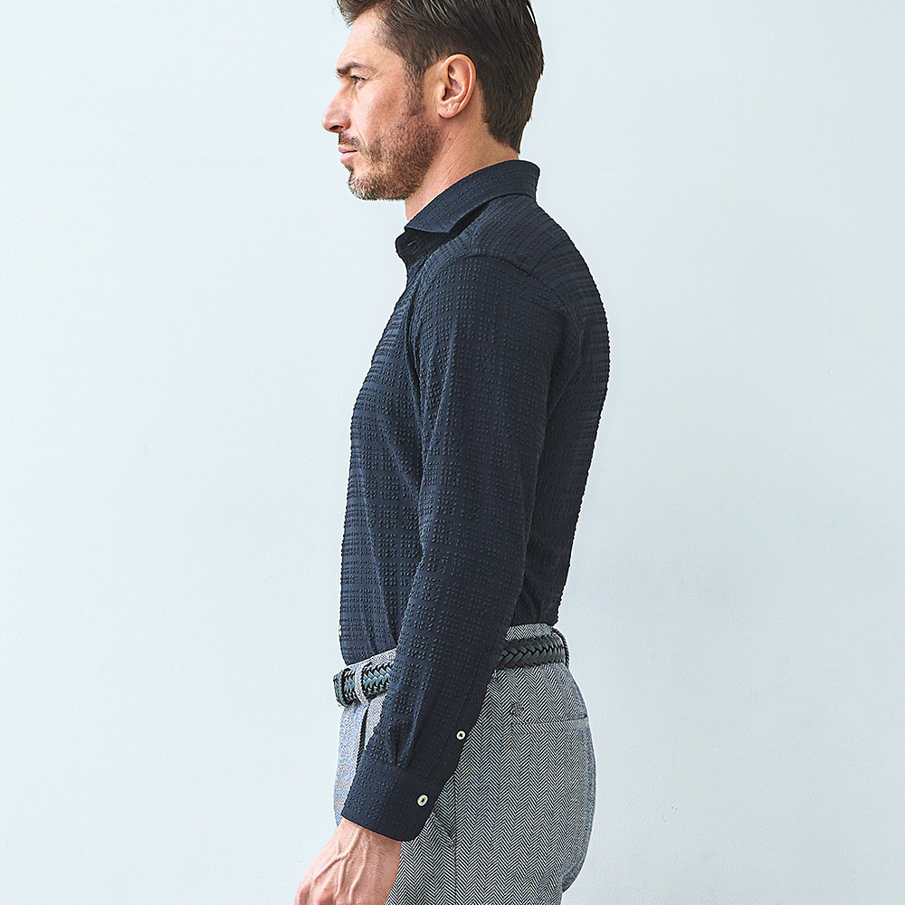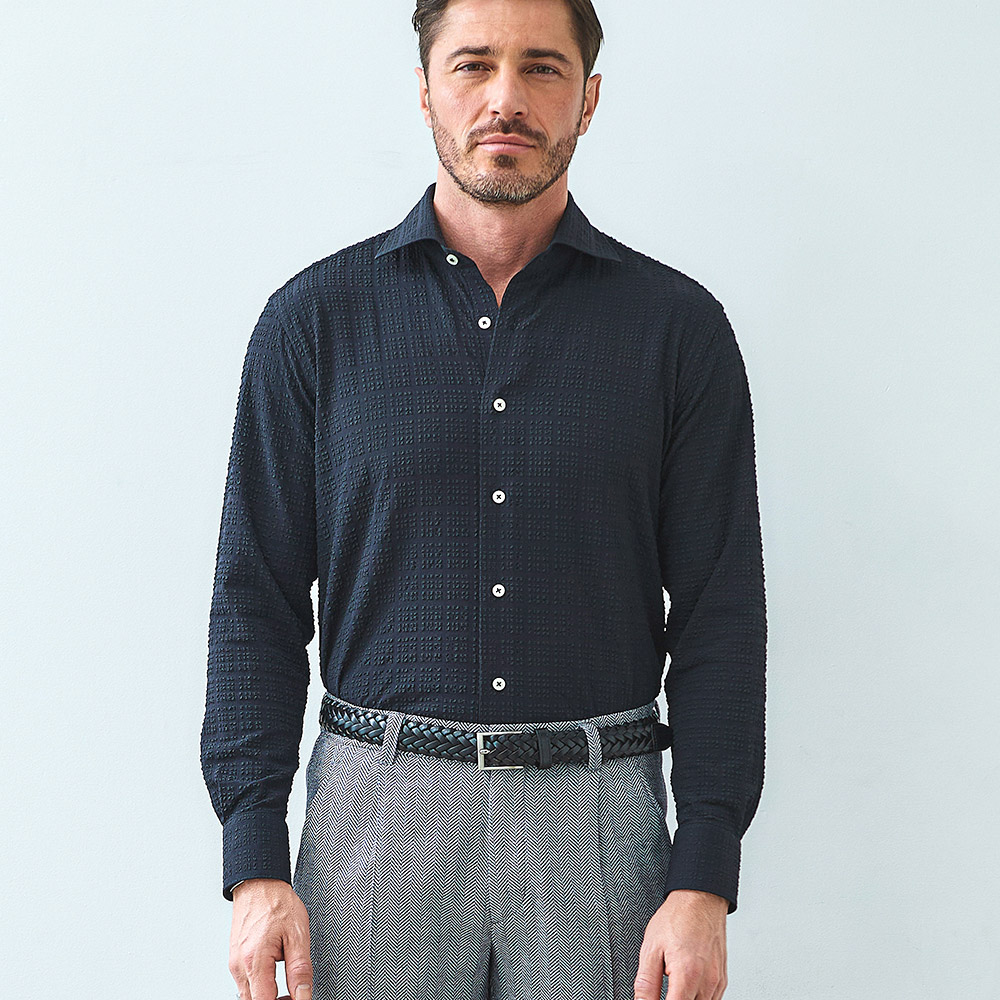 HOMEITEM SHIRTS シャツ 長袖 シワにならない伸縮性ある涼感長袖シャツ[同素材でジャケット・パンツ(品番set360206506)販売中] 涼しいブロックサッカーストレッチシャツ 春夏 ジーステージ G-STAGE 360601 価格: ¥9,680 (税込) [ポイント還元 96ポイント~] 販売期間: カラー: 選択してください ホワイト サックス ネイビー ブラック[一部予約販売] サイズ: 選択してください 46 48 50 数量: 枚 カラーサイズ在庫ホワイト46○48○50○サックス46○48○50○ネイビー46○48○50○ブラック[一部予約販売]46○48○50○ __MEMBER_ID__ FEATURE MOVIE B.R.CHANNEL 紹介動画 B.R.CHANNELでご紹介いただいたこの夏おすすめのアイテムを 動画でご覧いただけます。 素材本体:ナイロン47%、ポリエステル46%、ポリウレタン7%サイズ首周り 肩幅 袖丈 胸囲 胴囲 裾囲 着丈F(前丈)・B(後丈) 46(M相当) 41 46 62 108 100 106 76 48(L相当) 43 48 62 112 104 110 77 50(XL相当) 45 50 63 116 108 114 78 ※単位はcmです。※サイズ表より前後2cmは誤差の許容範囲とさせて頂いております。 サイズ表はこちら 生地の厚さ 薄いやや薄い普通やや厚い厚い 裏地 あり なし 透け感 ホワイトのみややあり なし 伸縮性 あり なし 光沢 なし あり お手入れ方法 洗濯の際ネット使用・無蛍光洗剤使用・当て布使用 お手入れ方法のアイコンについて ブロックサッカー生地カッタウエイストレッチシャツ夏を快適にする素材で、お手入れが簡単です。[夏を快適にするシャツの理由]伸縮性に富んだストレッチ性と軽さが最大の特徴で、身体に心地よくフィットします。また通気性や吸汗速乾性に優れており、軽量でご家庭でお洗濯可能です。シャツアイテムに適した高品質素材。[形状安定性◎]丈夫で形状安定性があり、お洗濯による型崩れの心配が少なく、シワや折り目なども付きにくいお素材です。[通気性◎]凹凸あるブロックサッカー地で素肌に付かずさらっととした肌感で通気性に優れています。[吸汗速乾性◎]汗などの水分をいち早く吸水し発散することで、雑菌の繁殖を抑え不快感や汗冷えを軽減します。ジーステージらしい表情あるサッカー柄で上品な印象です。ホワイト サックス ネイビー ブラック の4カラーで、同素材で半袖シャツも販売しております。(同素材半袖シャツ 品番 361601) サイズ上のご注意点 サイズ表記は、商品本体のサイズになります。(ヌードサイズではございません) サイズにつきましては、お手元の衣類と本サイズを合わせて下さい。商品の素材等によっては、多少サイズに誤差が生じる場合がございます。当店では前後2cmは誤差の範囲内とさせて頂いておりますので、予めご了承くださいませ。 他にお困りでしたら当店までご連絡をお願いします。 在庫につきまして 当店では、実店舗 並びに自社サイトと在庫を共有しておりますので、オーダー受付後売り違いによる完売、欠品となってしまう場合もございます。 その際は、ご注文確認メール後に再度、当店よりご連絡させて頂きますことを予めご了承下さいませ。 商品画像について 商品画像の一部は、屋内照明の下で撮影していますので撮影商品画像と実際の商品と若干の色合いに違いが生じる場合がございます。 またコンピューターディスプレイの環境によっても異なる場合がございますので、予めご了承下さいませ。 商品番号について 商品番号、カラー番号は生産管理上の番号でございますので、ネット上の番号とは異なる場合がございます。 商品ページ記載の番号と、商品の下げ札・ネームの番号が異なる場合でも、商品に間違いはございませんのでご安心ください。 涼しいブロックサッカーストレッチシャツ 春夏 ジーステージ G-STAGE 360601 価格: ¥9,680 (税込) [ポイント還元 96ポイント~] 販売期間: カラー: 選択してください ホワイト サックス ネイビー ブラック[一部予約販売] サイズ: 選択してください 46 48 50 数量: 枚 カラーサイズ在庫ホワイト46○48○50○サックス46○48○50○ネイビー46○48○50○ブラック[一部予約販売]46○48○50○