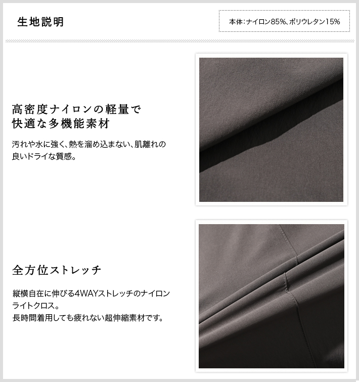 HOMEITEM OUTER アウター 春夏 全方位ストレッチの多機能ステンカラーコート ナイロン 4WAYストレッチ ステンカラーコート 春 ビジネス スプリングコート ジーステージ G-STAGE 360801 価格: ¥14,300 (税込) [ポイント還元 143ポイント~] 販売期間: カラー: 選択してください チャコールグレー ベージュ インクブルー ネイビー マスタード サイズ: 選択してください 46 48 50 数量: 個 カラーサイズ在庫チャコールグレー46○48○50○ベージュ46○48○50○インクブルー46○48○50○ネイビー46○48○50○マスタード46○48○50○ __MEMBER_ID__ ナイロン4WAYストレッチステンカラーコート360801 全方位ストレッチの多機能ステンカラーコート軽量でストレッチ性ある着心地が快適な高機能素材のステンカラーコート。>雨の日でも気兼ねなく羽織れる水に強い質感で、シワになりにくく汚れにも強いイージーケア仕様。一着あればON-OFFから、タウンユース~アクティブシーンまで、あらゆる場面を軽やかに着回せるのが魅力です。ナイロン素材特有の滑らかな質感が、袖を通した瞬間にひんやりとした清涼感をもたらし、肌離れの良さをキープするドライなタッチは、春夏の羽織りとして快適にご着用いただけます。[特徴]・縦、横自在に伸びる4WAYストレッチ・汚れを気にせず、水を弾く実用性・ナイロン特有の清涼感のある質感・シワになりにくくサラリとしたドライタッチ・ご家庭で洗濯できるウォッシャブル仕様軽量で薄手なので、身体に馴染むしなやかな着心地が特徴。裏地を排したライトな仕立てで、軽快な着用感を実現しました。カラーは、洗練されたグレーやネイビーといった定番色から、春の訪れを感じさせる軽やかなベージュ、ブルー、そして着こなしのアクセントになるイエローまでご用意。どの色もマットな質感で品が良く、春の装いを素敵に彩ります。春のメインアウターとして、ビジネスシーンでも休日のTシャツスタイルにも、シーンレスにスタイリングをお楽しみください。 生地の厚さ 薄いやや薄い普通やや厚い厚い 裏地 あり なし 透け感 あり なし 伸縮性 あり なし 光沢 なし あり お手入れ方法 洗濯の際ネット使用・無蛍光洗剤使用・当て布使用 お手入れ方法のアイコンについて フロント襟立ち襟もしやすい台襟仕様裏側着心地の良さを重視したライトな仕立て型崩れ防止を兼ねたパイピング縫製袖・ポケットスリーブストラップ付きの袖と両側にスラントポケットベント隠しボタン付きの深めのベント サイズ肩幅 胸囲 着丈 袖丈 胴囲 裾囲 46(M相当) 44 114 86 61 108 120 48(L相当) 46 118 88 62 112 124 50(XL相当) 48 122 90 63 116 128 ※単位はcmです。※サイズ表より前後2cmは誤差の許容範囲とさせて頂いております。 サイズ表はこちら ナイロン 4WAYストレッチ ステンカラーコート 春 ビジネス スプリングコート ジーステージ G-STAGE 360801 価格: ¥14,300 (税込) [ポイント還元 143ポイント~] 販売期間: カラー: 選択してください チャコールグレー ベージュ インクブルー ネイビー マスタード サイズ: 選択してください 46 48 50 数量: 個 カラーサイズ在庫チャコールグレー46○48○50○ベージュ46○48○50○インクブルー46○48○50○ネイビー46○48○50○マスタード46○48○50○ サイズ上のご注意点 サイズ表記は、商品本体のサイズになります。(ヌードサイズではございません) サイズにつきましては、お手元の衣類と本サイズを合わせて下さい。商品の素材等によっては、多少サイズに誤差が生じる場合がございます。当店では前後2cmは誤差の範囲内とさせて頂いておりますので、予めご了承くださいませ。 他にお困りでしたら当店までご連絡をお願いします。 在庫につきまして 当店では、実店舗 並びに自社サイトと在庫を共有しておりますので、オーダー受付後売り違いによる完売、欠品となってしまう場合もございます。 その際は、ご注文確認メール後に再度、当店よりご連絡させて頂きますことを予めご了承下さいませ。 商品画像について 商品画像の一部は、屋内照明の下で撮影していますので撮影商品画像と実際の商品と若干の色合いに違いが生じる場合がございます。 またコンピューターディスプレイの環境によっても異なる場合がございますので、予めご了承下さいませ。 商品番号について 商品番号、カラー番号は生産管理上の番号でございますので、ネット上の番号とは異なる場合がございます。 商品ページ記載の番号と、商品の下げ札・ネームの番号が異なる場合でも、商品に間違いはございませんのでご安心ください。