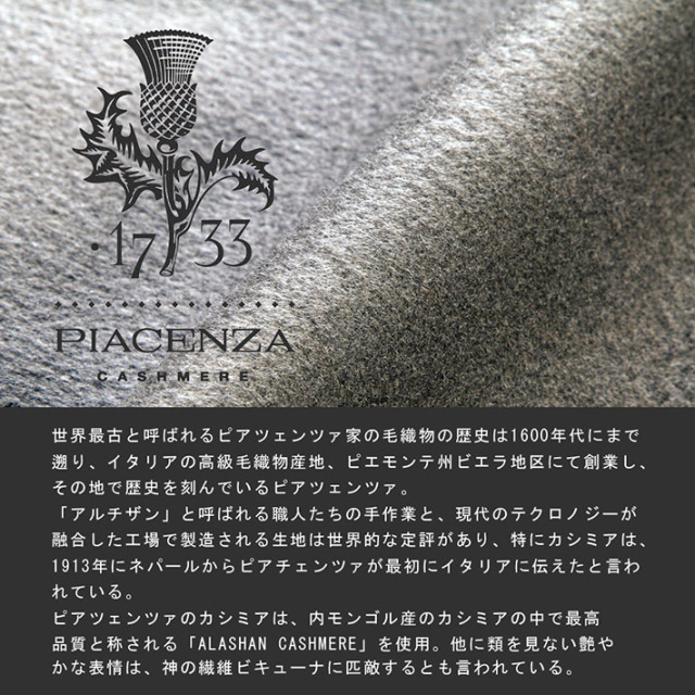 HOMEITEM OUTER アウター 秋冬 世界最高峰のピアツェンツァカシミヤを使用したステンカラーコート SALE カシミヤコート イタリア ピアツェンツァ ステンカラーコート 420807 G-stage ジーステージ メーカー希望小売価格: ¥110,000(税込) 価格: ¥88,000 (税込) 20%OFF [ポイント還元 880ポイント~] 販売期間: カラー: 選択してください グレー ベージュ ブラウン ネイビー ブラック サイズ: 選択してください 46 48 50 数量: 枚 カラーサイズ在庫グレー46○48○50○ベージュ46× 48○50× ブラウン46○48○50○ネイビー46× 48× 50○ブラック46× 48× 50○ __MEMBER_ID__ ピアツェンツァカシミヤステンカラーコート420807 世界最高峰のピアツェンツァカシミヤを使用した優雅なチェスターコート世界最高峰、最高品質といわれるイタリアピアツェンツァの上質なカシミヤを使用した、カシミヤ100%のチェスターコート。ピアツェンツァ家の毛織物の歴史は1600年代にまで遡り、イタリアの高級毛織物産地、ピエモンテ州ビエラ地区にて創業し、その地で歴史を刻んでいるピアツェンツァ。「アルチザン」と呼ばれる職人たちの手作業と、現代のテクロノジーが融合した工場で製造される生地は世界的な定評があり、特にカシミアは、1913年にネパールからピアチェンツァが最初にイタリアに伝えたと言われています。ピュアカシミヤの上質感が際立つチェスターコートのベーシックなデザインを採用。また、カシミヤのソフトな風合いと軽さが体感できるよう、背抜きのアンコン仕立てを採用し、羽織という表現が相応しい優雅なコートに仕上げました。定番のウールスラックスはもちろん、デニムなどを合わせて抜け感をプラスした、リュクスな大人カジュアルを楽しむのもお薦めです。 生地の厚さ 薄いやや薄い普通やや厚い厚い 裏地 あり なし 透け感 あり なし 伸縮性 あり なし 光沢 なし あり お手入れ方法 当て布使用 お手入れ方法のアイコンについて フロント襟ベーシックなチェスターコート襟裏側軽快な着心地を重視したライトな仕立て袖カジュアルな筒袖仕様ポケットウエストのスラントポケットボタンアンティーク調のシックなボタンベントシンプルなセンターベント仕様 世界最高峰、最高品質といわれるイタリアピアツェンツァの上質なカシミヤを使用した、カシミヤ100%のダブルのピークドラペルジャケット。ピアツェンツァ家の毛織物の歴史は1600年代にまで遡り、イタリアの高級毛織物産地、ピエモンテ州ビエラ地区にて創業し、その地で歴史を刻んでいるピアツェンツァ。「アルチザン」と呼ばれる職人たちの手作業と、現代のテクロノジーが融合した工場で製造される生地は世界的な定評があり、特にカシミアは、1913年にネパールからピアチェンツァが最初にイタリアに伝えたと言われています。ダブルのピークドラペルデザインを採用することで、ピュアカシミヤの上質感を存分に際立たせた、ドレッシーでラグジュアリーな面持。ボタンには、アンティークな風合いのメタルボタンを採用し、ドレッシーな重厚さを演出しています。また、カシミヤのソフトな風合いと軽さが体感できるよう、背抜きのアンコン仕立てを採用し、羽織という表現が相応しい優雅なジャケットに仕上げました。定番のウールスラックスはもちろん、デニムなどを合わせて抜け感をプラスした、リュクスな大人カジュアルを楽しむのもお薦めです。 サイズ肩幅 胸囲 着丈 裄丈 胴囲 裾囲 46(M相当) 43 110 90 62.5 98 118 48(L相当) 45 114 92 63.5 102 122 50(XL相当) 47 118 94 64.5 106 126 ※単位はcmです。※サイズ表より前後2cmは誤差の許容範囲とさせて頂いております。 サイズ表はこちら SALE カシミヤコート イタリア ピアツェンツァ ステンカラーコート 420807 G-stage ジーステージ メーカー希望小売価格: ¥110,000(税込) 価格: ¥88,000 (税込) 20%OFF [ポイント還元 880ポイント~] 販売期間: カラー: 選択してください グレー ベージュ ブラウン ネイビー ブラック サイズ: 選択してください 46 48 50 数量: 枚 カラーサイズ在庫グレー46○48○50○ベージュ46× 48○50× ブラウン46○48○50○ネイビー46× 48× 50○ブラック46× 48× 50○ サイズ上のご注意点 サイズ表記は、商品本体のサイズになります。(ヌードサイズではございません) サイズにつきましては、お手元の衣類と本サイズを合わせて下さい。商品の素材等によっては、多少サイズに誤差が生じる場合がございます。当店では前後2cmは誤差の範囲内とさせて頂いておりますので、予めご了承くださいませ。 他にお困りでしたら当店までご連絡をお願いします。 在庫につきまして 当店では、実店舗 並びに自社サイトと在庫を共有しておりますので、オーダー受付後売り違いによる完売、欠品となってしまう場合もございます。 その際は、ご注文確認メール後に再度、当店よりご連絡させて頂きますことを予めご了承下さいませ。 商品画像について 商品画像の一部は、屋内照明の下で撮影していますので撮影商品画像と実際の商品と若干の色合いに違いが生じる