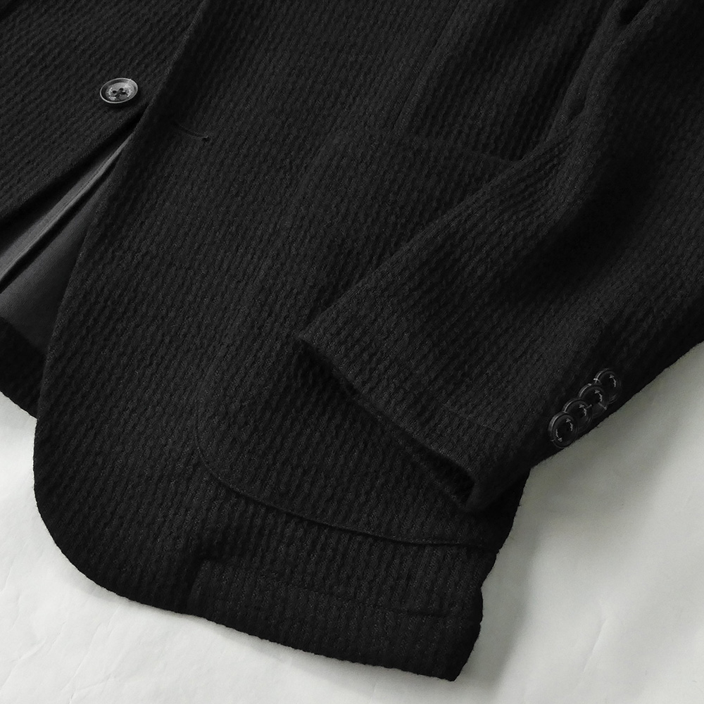 HOMEITEM JACKETS ジャケット 秋冬 ウーリーな大人の上品な面持ちと着心地良いウールジャージジャケット[別売り セットアップパンツ 450501] ウールミックス ストレッチ ジャージテーラードジャケット 450201 G-STAGE ジーステージ 価格: ¥25,300 (税込) [ポイント還元 253ポイント~] 販売期間: カラー: 選択してください ブラック ネイビー ベージュ サイズ: 選択してください 44 46 48 50 52 数量: 枚 カラーサイズ在庫ブラック44○46○48○50○52×ネイビー44×46○48○50○52×ベージュ44×46×48×50×52× __MEMBER_ID__ ウールミックスジャージテーラードジャケット450201 ウーリーな大人の品に心地良さをプラスしたウールジャージのジャケットウール混のウォーム感と品ある面持ちに、ジャージ素材の快適な着用感をプラスした、ウールミックスジャージジャケット。オーセンティックなデザインのジャケットを、豊かな表情と深みある色柄といったひとさじの趣でモダンに演出。ほど良い肉厚感のウール混素材で、高級感と大人の品ある表情でありながら、体に沿って伸縮する快適な着心地を併せ持ったジャケットです。大人に相応しいシックな色柄をG-stageらしいカラーで表現し、ウーリーで立体感ある面持ちに仕上げました。ウール混でありながらピリングがおきにくい品質も魅力です。デザインはやや高めのゴージラインでスマートな面持。着心地の良さを重視したライトな仕立てなので、軽やかにご着用いただけます。同素材のパンツ(品番:450501)を合わせてセットアップでドレッシーにこなすのも良し、ジーンズやチノパンなどを合わせたジャケパンスタイルでカジュアルに着流すのもお奨めです。ベーシックなテーラードジャケットのデザインなので、ON-OFF自在に着回せるコストパフォーマンスの高さも魅力。まさに、クラシックとカジュアルを融合させたG-stageを象徴するアイコニックなジャケットです。≫ 別売りセットアップパンツ(品番:450501)はこちら 生地の厚さ 薄いやや薄い普通やや厚い厚い 裏地 あり なし 透け感 あり なし 伸縮性 あり なし 光沢 なし あり お手入れ方法 当て布使用 お手入れ方法のアイコンについて フロント襟ベーシックなテーラードタイプ裏側着心地の良さを重視したライトな仕立て背面スマートなバッグスタイル袖・ポケットカジュアル感ある筒袖とフラップポケットベント軽快に着用できるサイドベンツアイコンプレートフラワーホールの下に蜂をモチーフ にしたブランドアイコンプレート"fortunate bee" サイズ肩幅 胸囲 着丈 袖丈 胴囲 裾囲 ラペル幅 44(S相当) 44 101 70 60.5 91 103 8.5 46(M相当) 45 104 70 60.5 94 106 8.5 48(L相当) 46 108 71 61.5 98 110 8.8 50(XL相当) 47 112 72 62.5 102 114 8.8 52(XXL相当) 48 116 73 62.5 106 118 8.8 ※単位はcmです。※サイズ表より前後2cmは誤差の許容範囲とさせて頂いております。 サイズ表はこちら ウールミックス ストレッチ ジャージテーラードジャケット 450201 G-STAGE ジーステージ 価格: ¥25,300 (税込) [ポイント還元 253ポイント~] 販売期間: カラー: 選択してください ブラック ネイビー ベージュ サイズ: 選択してください 44 46 48 50 52 数量: 枚 カラーサイズ在庫ブラック44○46○48○50○52×ネイビー44×46○48○50○52×ベージュ44×46×48×50×52× サイズ上のご注意点 サイズ表記は、商品本体のサイズになります。(ヌードサイズではございません) サイズにつきましては、お手元の衣類と本サイズを合わせて下さい。商品の素材等によっては、多少サイズに誤差が生じる場合がございます。当店では前後2cmは誤差の範囲内とさせて頂いておりますので、予めご了承くださいませ。 他にお困りでしたら当店までご連絡をお願いします。 在庫につきまして 当店では、実店舗 並びに自社サイトと在庫を共有しておりますので、オーダー受付後売り違いによる完売、欠品となってしまう場合もございます。 その際は、ご注文確認メール後に再度、当店よりご連絡させて頂きますことを予めご了承下さいませ。 商品画像について 商品画像の一部は、屋内照明の下で撮影していますので撮影商品画像と実際の商品と若干の色合いに違いが生じる場合がございます。 またコンピューターディスプレイの環境によっても異なる場合がございますので、予めご了承下さいませ。 商品番号について 商品番号、カラー番号は生産管理上の番号でございますので、ネット上の番号とは異なる場合がございます。 商品ページ記載の番号と、商品の下げ札・ネームの番号が異なる場合でも、商品に間違いはございませんのでご安心ください。