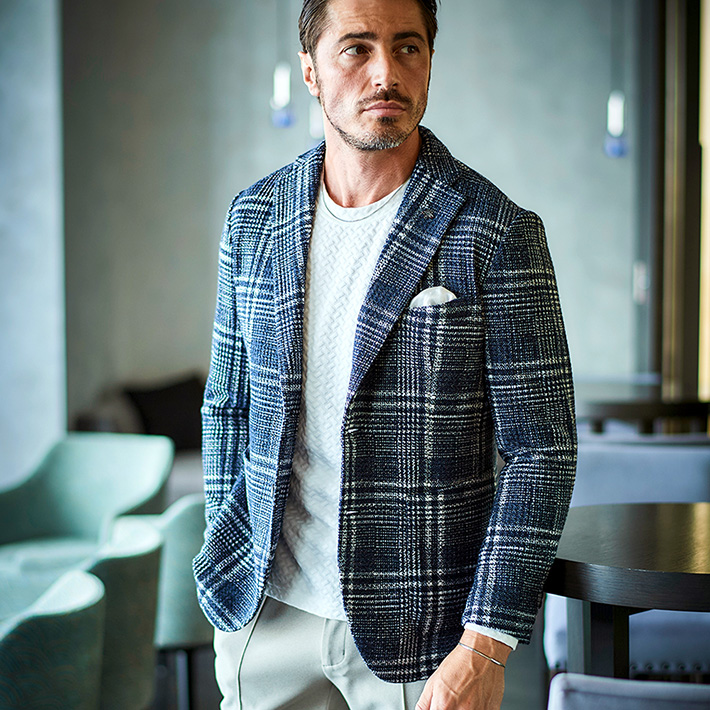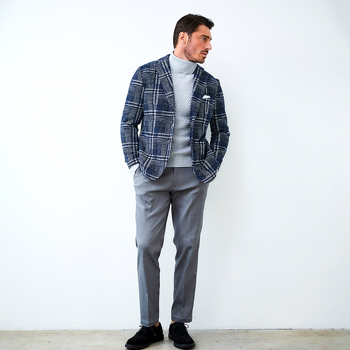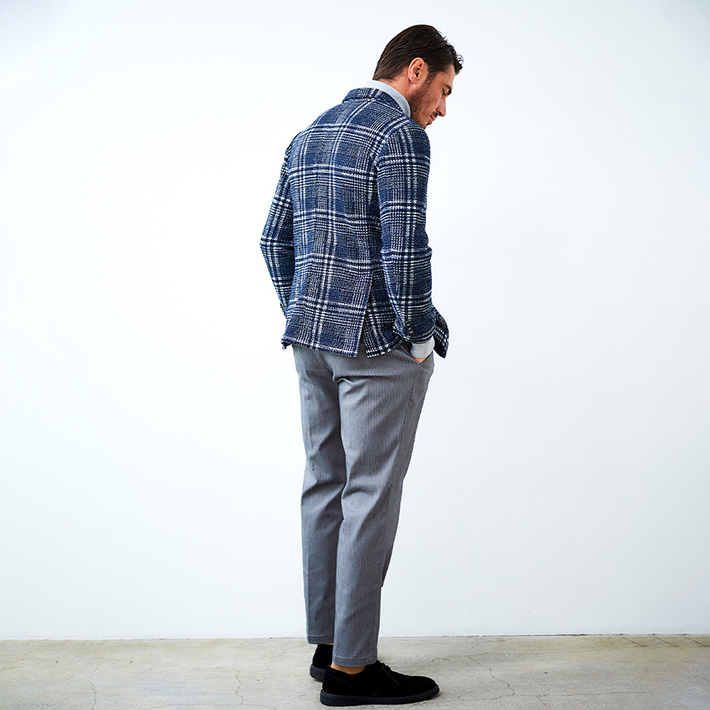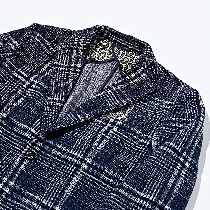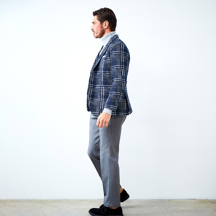 HOMEITEM JACKETS ジャケット 秋冬 軽くて暖かいツイード調プリントニットジャケット ライトニット チェックプリントジャケット 450214 G-STAGE ジーステージ 価格: ¥39,600 (税込) [ポイント還元 396ポイント~] 販売期間: カラー: 選択してください ネイビー サイズ: 選択してください 46 48 50 数量: 枚 カラーサイズ在庫ネイビー46○48○50○ __MEMBER_ID__ ライトニットチェックプリントジャケット450214 軽くて暖かいツイード調プリントニットジャケット軽やかさと暖かさを両立した表情豊かなツイード調プリントニットジャケット。7ゲージのライトニットをベースに、まるで本物のツイードのような奥行きのある見え方を実現したプリント素材。裏面には起毛加工を施し、ライトな見た目以上に暖かさを兼ね備えています。しっかりとした生地感でありながら、軽量でソフトな風合いが特徴。厚手の素材にありがちな重さやごわつきを感じさせず、快適な着心地で冬の寒さから守ります。こちらは明るめのネイビーに大柄のチェックがインパクトのあるジャケット。余計なものを排除したライトな仕立てで、身体に沿う伸縮素材なので軽やかにご着用いただけます。ドレス感とカジュアル感が絶妙なバランスで、合わせるパンツもスラックスからデニムまで幅広くカバーでき、インパクトのある見た目以上にスタイリングがしやすいジャケットです。 生地の厚さ 薄いやや薄い普通やや厚い厚い 裏地 あり なし 透け感 あり なし 伸縮性 あり なし 光沢 なし あり お手入れ方法 当て布使用 お手入れ方法のアイコンについて フロント襟ベーシックなテーラードタイプ背裏生地と同生地のポケットチーフ付裏側着心地の良さを重視したライトな仕立て柔らかな起毛加工を施して防寒性をプラス袖/ポケットカジュアルな筒袖仕様両サイドにカジュアルなフラップポケットベント軽快に着用できるサイドベンツバックスタイルスマートなバックスタイル サイズ肩幅 胸囲 着丈 袖丈 胴囲 裾囲 ラペル幅 46(M相当) 45 104 70 60.5 94 106 8.5 48(L相当) 46 108 71 61.5 98 110 8.8 50(XL相当) 47 112 72 62.5 102 114 8.8 ※単位はcmです。※サイズ表より前後2cmは誤差の許容範囲とさせて頂いております。 サイズ表はこちら ライトニット チェックプリントジャケット 450214 G-STAGE ジーステージ 価格: ¥39,600 (税込) [ポイント還元 396ポイント~] 販売期間: カラー: 選択してください ネイビー サイズ: 選択してください 46 48 50 数量: 枚 カラーサイズ在庫ネイビー46○48○50○ サイズ上のご注意点 サイズ表記は、商品本体のサイズになります。(ヌードサイズではございません) サイズにつきましては、お手元の衣類と本サイズを合わせて下さい。商品の素材等によっては、多少サイズに誤差が生じる場合がございます。当店では前後2cmは誤差の範囲内とさせて頂いておりますので、予めご了承くださいませ。 他にお困りでしたら当店までご連絡をお願いします。 在庫につきまして 当店では、実店舗 並びに自社サイトと在庫を共有しておりますので、オーダー受付後売り違いによる完売、欠品となってしまう場合もございます。 その際は、ご注文確認メール後に再度、当店よりご連絡させて頂きますことを予めご了承下さいませ。 商品画像について 商品画像の一部は、屋内照明の下で撮影していますので撮影商品画像と実際の商品と若干の色合いに違いが生じる場合がございます。 またコンピューターディスプレイの環境によっても異なる場合がございますので、予めご了承下さいませ。 商品番号について 商品番号、カラー番号は生産管理上の番号でございますので、ネット上の番号とは異なる場合がございます。 商品ページ記載の番号と、商品の下げ札・ネームの番号が異なる場合でも、商品に間違いはございませんのでご安心ください。 関連商品 [会員様限定OUTLET SALE]在庫限り ハイテンション コーデュロイ ストレッチパンツ G-stage ジーステージ メーカー希望小売価格: ¥15,400(税込) ¥6,930(税込) 商品を見る [会員様限定OUTLET SALE]在庫限り コーデュロイジャケット ハイテンション コーデュロイ ストレッチ ジャケット 420207 G-stage ジーステージ メーカー希望小売価格: ¥20,900(税込) ¥9,900(税込) 商品を見る [会員限定SALE]ダウン&ハニカムジャージ コンビデザインパンツ ゴルフウェア 210506 420518 G-stage ジーステージ メーカー希望小売価格: ¥21,780(税込) ¥11,000(税込) 商品を見る