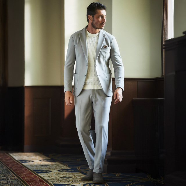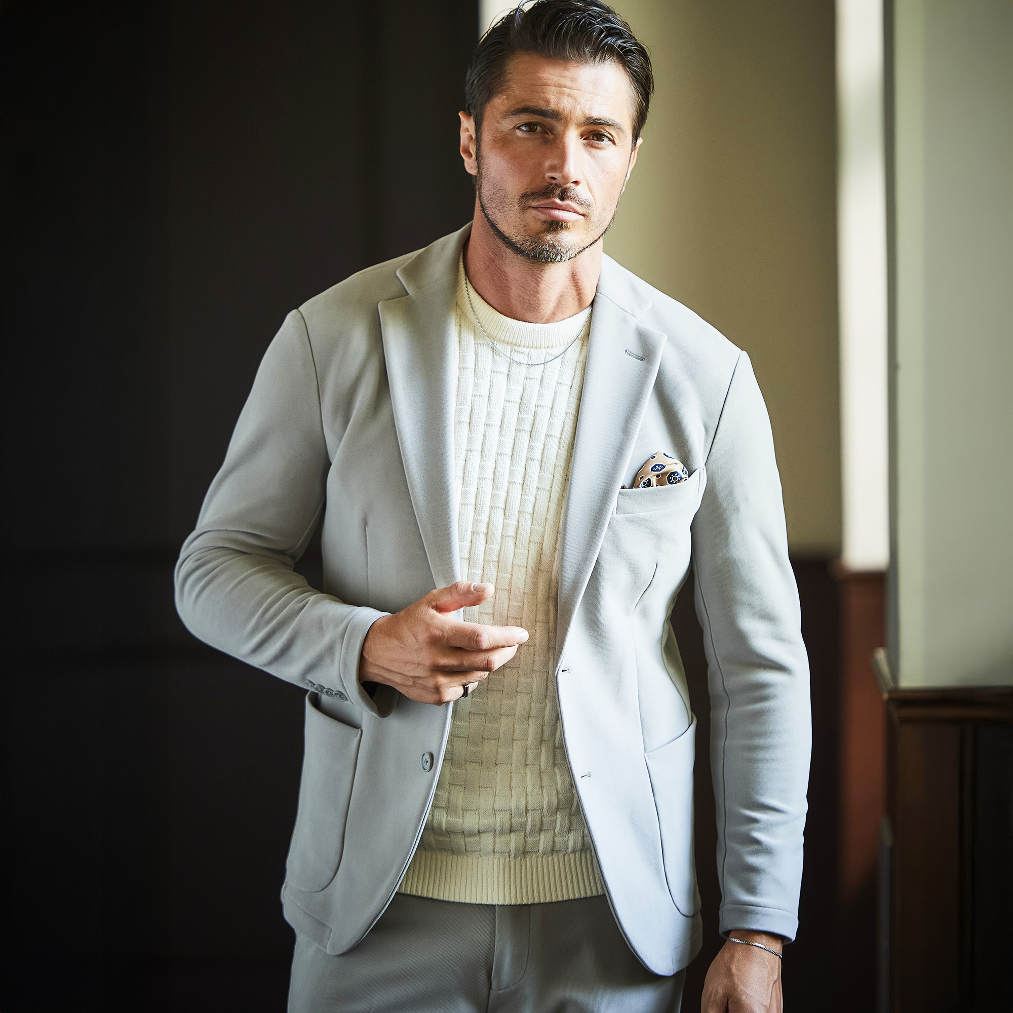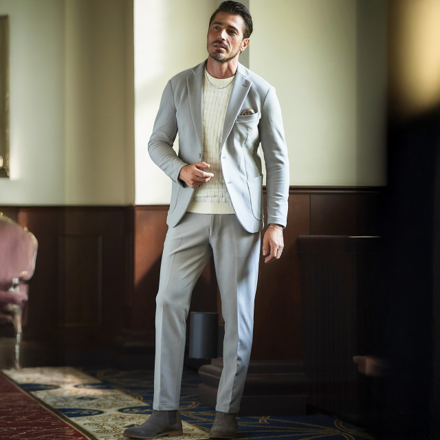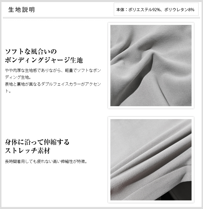 HOMEITEM JACKETS ジャケット 秋冬 ソフトで上品な表情のボンディングジャージジャケット[別売り セットアップパンツ 450553] ボンディングジャケット 洗える ストレッチジャケット セットアップ別売り 450252 G-STAGE ジーステージ 価格: ¥16,500 (税込) [ポイント還元 165ポイント~] 販売期間: カラー: 選択してください ライドグレー チャコールグレー サイズ: 選択してください 46 48 50 数量: 枚 カラーサイズ在庫ライドグレー46○48○50○チャコールグレー46○48○50○ __MEMBER_ID__ スーパーストレッチボンディングジャケット 450252 ソフトで上品な表情のボンディングジャージジャケット ほど良い肉厚感でさりげない光沢感のあるボンディングジャケット。肉厚ながらも軽量でやわらかく高い伸縮性が特徴のボンディング生地で、ハリのある美しいシルエットが特徴。伸縮するジャージ素材をボンディングで貼りあわせることでソフトなふくらみ感があり、保温性も確保した快適な着心地も魅力です。ドレッシーなテーラードデザインに、軽い着心地を重視したミニマルでライトな仕立て。スマートな面持のやや高めのゴージラインで、ダブルフェイスカラーの裏地が光るモダンなデザインです。ご家庭で洗濯できるウォッシャブル仕様なので、デイリーに着用が可能です。ストレッチ性と保形性があり、ジャージ素材でシワになりにくく、デイリー使いは勿論、出張や旅行など、あらゆるシーンで快適にご着用いただけます。さらに同素材のパンツ(品番:450553)を合わせて、ドレッシーで品あるセットアップスタイルをお楽しみいただけます。≫ 別売りセットアップパンツ(品番:450553)はこちら 生地の厚さ 薄い やや薄い 普通 やや厚い 厚い 裏地 あり なし 透け感 あり なし 伸縮性 あり なし 光沢 なし ややあり お手入れ方法 スチームで浮かしアイロン お手入れ方法のアイコンについて フロント襟 ベーシックなテーラードタイプ 裏側 着心地の良さを重視したライトな仕立て左裏にボタン付きポケット 袖/ポケット カジュアルな筒袖仕様両サイドにカジュアルなフラップポケット ベント 動きやすくすっきりと見せるセンターベント サイズ 肩幅 胸囲 着丈 袖丈 胴囲 裾囲 ラペル幅 46(M相当) 44 106 71 60.5 95 110 8 48(L相当) 45 110 72 61.5 99 114 8 50(XL相当) 46 114 73 62.5 103 118 8 ボンディングジャケット 洗える ストレッチジャケット セットアップ別売り 450252 G-STAGE ジーステージ 価格: ¥16,500 (税込) [ポイント還元 165ポイント~] 販売期間: カラー: 選択してください ライドグレー チャコールグレー サイズ: 選択してください 46 48 50 数量: 枚 カラーサイズ在庫ライドグレー46○48○50○チャコールグレー46○48○50○ サイズ上のご注意点 サイズ表記は、商品本体のサイズになります。(ヌードサイズではございません) サイズにつきましては、お手元の衣類と本サイズを合わせて下さい。商品の素材等によっては、多少サイズに誤差が生じる場合がございます。当店では前後2cmは誤差の範囲内とさせて頂いておりますので、予めご了承くださいませ。 他にお困りでしたら当店までご連絡をお願いします。 在庫につきまして 当店では、実店舗 並びに自社サイトと在庫を共有しておりますので、オーダー受付後売り違いによる完売、欠品となってしまう場合もございます。 その際は、ご注文確認メール後に再度、当店よりご連絡させて頂きますことを予めご了承下さいませ。 商品画像について 商品画像の一部は、屋内照明の下で撮影していますので撮影商品画像と実際の商品と若干の色合いに違いが生じる場合がございます。 またコンピューターディスプレイの環境によっても異なる場合がございますので、予めご了承下さいませ。 商品番号について 商品番号、カラー番号は生産管理上の番号でございますので、ネット上の番号とは異なる場合がございます。 商品ページ記載の番号と、商品の下げ札・ネームの番号が異なる場合でも、商品に間違いはございませんのでご安心ください。 関連商品 [会員様限定SALE] ラスト1点 ダウン&ハニカムジャージ コンビデザインパンツ ゴルフウェア 210506 420518 G-STAGE ジーステージ メーカー希望小売価格: ¥21,780(税込) ¥6,930(税込) 商品を見る