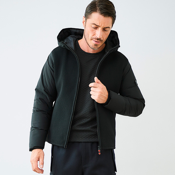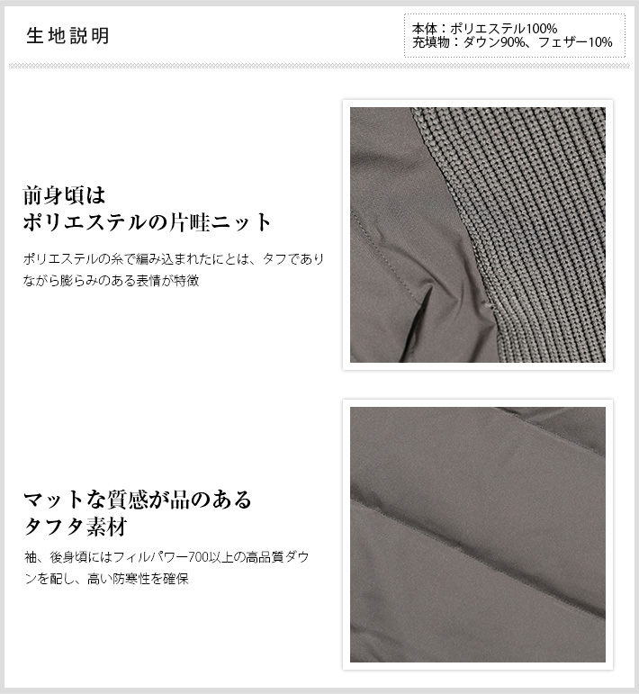 HOMEITEM OUTER アウター 秋冬 スポーティーに着こなせる異素材デザインダウンブルゾン ダウンジャケット アウター フーデッドダウン ニットコンビ パーカーブルゾン 450401 G-STAGE ジーステージ 価格: ¥35,200 (税込) [ポイント還元 352ポイント~] 販売期間: カラー: 選択してください ベージュ ブラック サイズ: 選択してください 46 48 50 数量: 枚 カラーサイズ在庫ベージュ46○48○50○ブラック46○48○50○ __MEMBER_ID__ “G-ZERO”MILAN RIB KNIT COLLECTION▼ ミラノリブシリーズはこちら ニットコンビダウンパーカーブルゾン450401 スポーティーに着こなせる異素材デザインダウンブルゾン ニットの優しい風合いと、ダウンの機能性が融合した新型ニットコンビブルゾン。前身頃にはしっかりとした編地の片畦ニットを採用し、袖と後身頃にはハイクオリティなダウンを使用。圧倒的な軽さと暖かさを実現しながら、着膨れすることなくスマートに着こなしていただけます。立体感のあるニットは軽量で通気性があり、フロントにはネックのパーカ部分にまで繋がるハイポイントのダブルジップで、防寒性と快適な着用感にこだわりました。ダウンはフィルパワー700以上の上質なリアルダウンを採用しスマートながらも高い防寒性を確保しています。カジュアルながらもモダンで洗礼された印象を与え、タウンユースからアクティブなシーンまで幅広く活躍するハイブリットダウンブルゾンです。 生地の厚さ 薄いやや薄い普通やや厚い厚い 裏地 あり なし 透け感 あり なし 伸縮性 あり なし 光沢 なし あり お手入れ方法 当て布使用 お手入れ方法のアイコンについて フロントフードと一体化したスポーティーなフロントダブルジップ裏側フィルパワー700以上のダウンが敷きつめられた内側袖/ポケットウインドストッパーのリブが内蔵された袖口と腰周り両サイドにスラントポケットアイコン左腕にボタンで脱着可能なアイコンフード風をシャットアウトするボリュームネックフード サイズ肩幅 胸囲 着丈 袖丈 胴囲 裾囲 46(M相当) 46 112 68 63.5 106 106 48(L相当) 48 116 70 64.5 110 110 50(XL相当) 50 120 72 65.5 114 114 ※単位はcmです。※サイズ表より前後2cmは誤差の許容範囲とさせて頂いております。 サイズ表はこちら ダウンジャケット アウター フーデッドダウン ニットコンビ パーカーブルゾン 450401 G-STAGE ジーステージ 価格: ¥35,200 (税込) [ポイント還元 352ポイント~] 販売期間: カラー: 選択してください ベージュ ブラック サイズ: 選択してください 46 48 50 数量: 枚 カラーサイズ在庫ベージュ46○48○50○ブラック46○48○50○ サイズ上のご注意点 サイズ表記は、商品本体のサイズになります。(ヌードサイズではございません) サイズにつきましては、お手元の衣類と本サイズを合わせて下さい。 商品の素材等によっては、多少サイズに誤差が生じる場合がございます。 (当店では前後2cmは誤差の範囲内とさせて頂いております。) 在庫につきまして 当店では実店舗、並びに複数のECサイトと在庫を共有しております。 そのため、在庫システムの反映のタイミングによっては、ご注文いただいたにも関わらず商品が完売・欠品している場合がございます。 その際は、ご注文確認メール後に再度当店よりご連絡させて頂きます。 商品画像について 商品画像の一部は、自然光や屋内照明の影響により、実際の商品と色味が若干異なって見える場合がございます。 お客様がお使いのデバイス(スマートフォン、PC、タブレットなど)の環境によっても、色の見え方が異なる可能性がございます。 商品番号について 商品番号、カラー番号は生産管理上の番号でございますので、商品ページ記載の番号と、実際の商品の下げ札・ネームの番号が異なる場合がございます。 関連商品 [会員様限定OUTLET SALE]在庫限り ハイテンション コーデュロイ ストレッチパンツ G-stage ジーステージ メーカー希望小売価格: ¥15,400(税込) ¥6,930(税込) 商品を見る [会員様限定OUTLET SALE]在庫限り コーデュロイジャケット ハイテンション コーデュロイ ストレッチ ジャケット 420207 G-stage ジーステージ メーカー希望小売価格: ¥20,900(税込) ¥9,900(税込) 商品を見る [会員限定SALE]ダウン&ハニカムジャージ コンビデザインパンツ ゴルフウェア 210506 420518 G-stage ジーステージ メーカー希望小売価格: ¥21,780(税込) ¥11,000(税込) 商品を見る