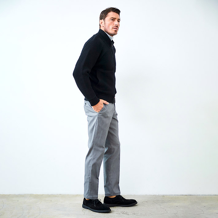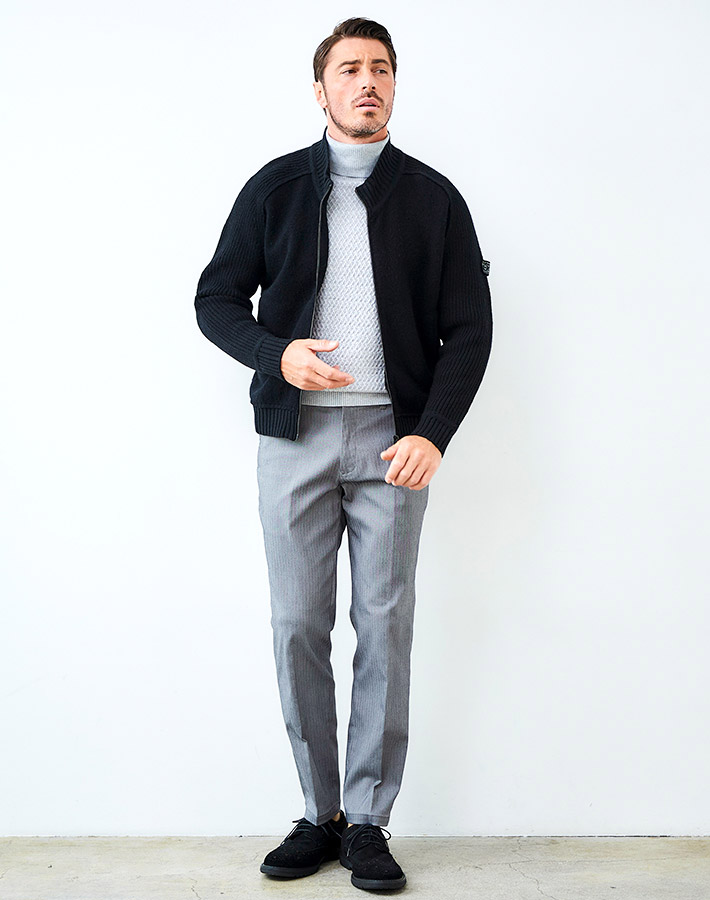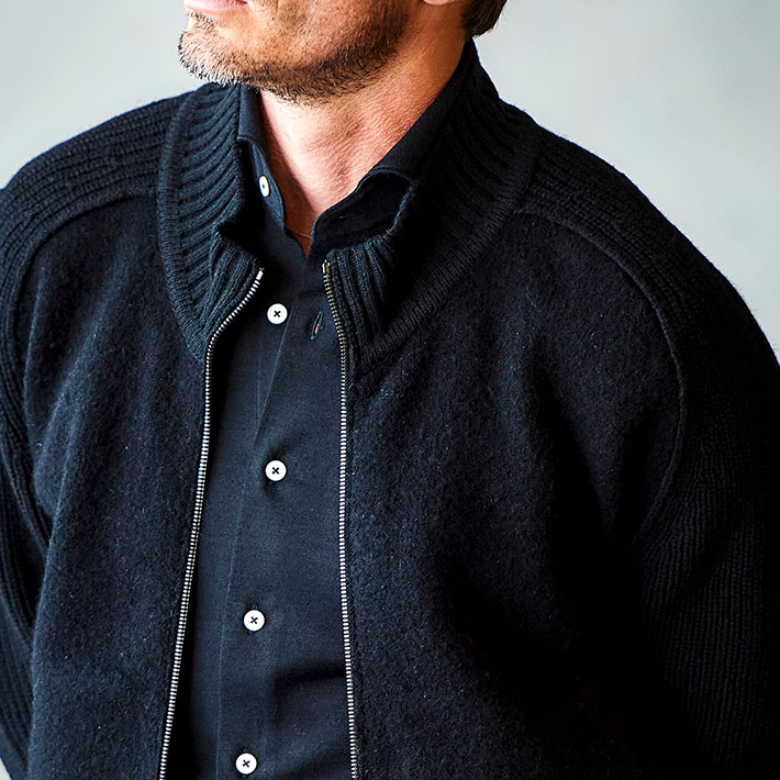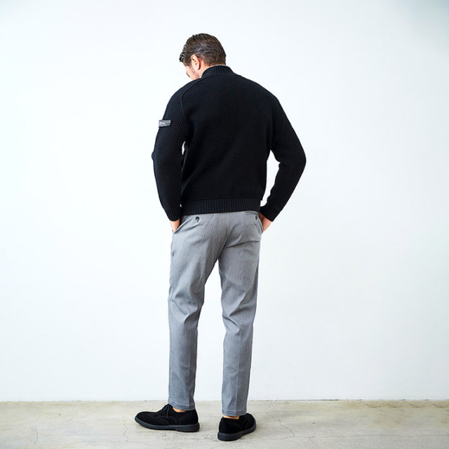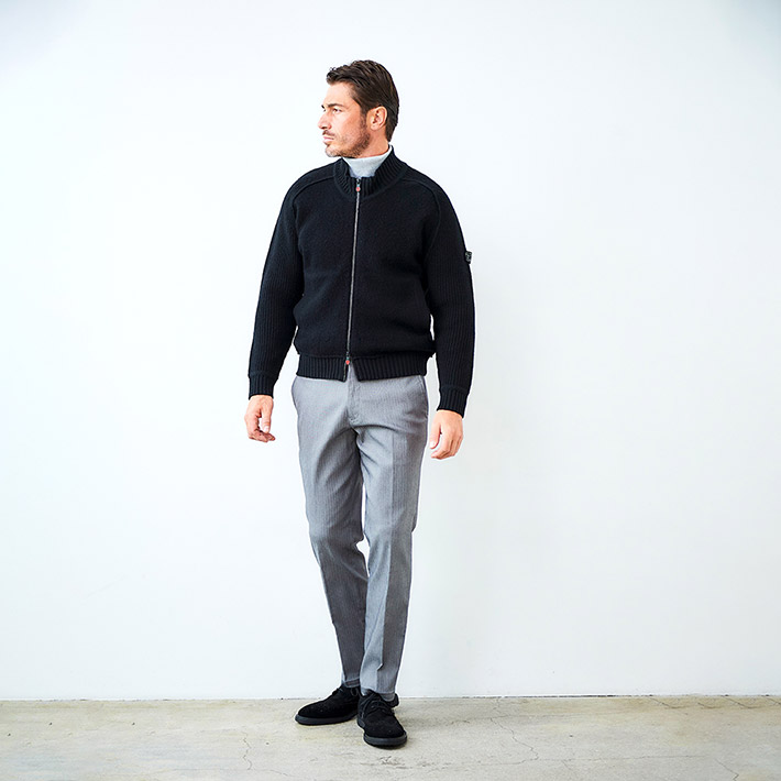 HOMEITEM OUTER アウター 秋冬 上質なハリと高級感を持つ、大人のニットアウター タスマニアウール スタンドネック ニットブルゾン ウール100% カーディガン アウター 450413 G-STAGE ジーステージ 価格: ¥25,300 (税込) [ポイント還元 253ポイント~] 販売期間: カラー: 選択してください ブラック サイズ: 選択してください 46 48 50 数量: 枚 カラーサイズ在庫ブラック46○48○50○ __MEMBER_ID__ タスマニアウールスタンドネックニットブルゾン450413 上質なハリと高級感を持つ、大人のニットアウター世界でも希少なタスマニアウールを100%使用した上質なニットブルゾン。タスマニアウールの、カシミヤにも劣らないと言われるなめらかで繊細な肌触りと、優れた発色の良さが特徴です。この上質なウールを異なる編地で編成し、特殊な圧縮加工を施すことで、しっかりとしたハリとコシを生み出しています。なめらかな肌触りと上品な光沢感はそのままに、型崩れしにくいタフな質感を実現しました。デザインにはすっきりとした印象のスタンドネックと、着脱しやすいジップアップ仕様を採用。上質な素材にタフな質感と洗練されたデザインを融合させて、大人のためのニットアウターです。カーディガン感覚で軽く羽織るだけで、ワンランク上の上質なスタイルに導きます。*タスマニアウールとは、オーストラリア東南にあるタスマニア島で飼育されたメリノ種の羊から採れる、細くて柔らかなウール。 タスマニアは、メリノ種の飼育に適した気候・風土を持ち、産毛量はオーストラリア全体の約3%です。 生地の厚さ 薄いやや薄い普通やや厚い厚い 裏地 あり なし 透け感 あり なし 伸縮性 あり なし 光沢 なし あり お手入れ方法 当て布使用 お手入れ方法のアイコンについて フロント首周りにリブ素材を配したスタンドネック裏側軽さを重視した一枚仕立てフロントファスナー機能性と可動域を確保したダブルZIPファスナー裾ソフトなリブを配した裾バックスタイル首元のリブ使いがアクセント袖/ポケット柔らかにフィットする袖リブと腰周り両サイドにスラントポケット サイズ胸囲 身丈 袖丈 裾囲 46(M相当) 53 62 71 42 48(L相当) 56 64 72.75 45 50(XL相当) 59 66 74.5 48 ※単位はcmです。※サイズ表より前後2cmは誤差の許容範囲とさせて頂いております。 サイズ表はこちら タスマニアウール スタンドネック ニットブルゾン ウール100% カーディガン アウター 450413 G-STAGE ジーステージ 価格: ¥25,300 (税込) [ポイント還元 253ポイント~] 販売期間: カラー: 選択してください ブラック サイズ: 選択してください 46 48 50 数量: 枚 カラーサイズ在庫ブラック46○48○50○ サイズ上のご注意点 サイズ表記は、商品本体のサイズになります。(ヌードサイズではございません) サイズにつきましては、お手元の衣類と本サイズを合わせて下さい。商品の素材等によっては、多少サイズに誤差が生じる場合がございます。当店では前後2cmは誤差の範囲内とさせて頂いておりますので、予めご了承くださいませ。 他にお困りでしたら当店までご連絡をお願いします。 在庫につきまして 当店では、実店舗 並びに自社サイトと在庫を共有しておりますので、オーダー受付後売り違いによる完売、欠品となってしまう場合もございます。 その際は、ご注文確認メール後に再度、当店よりご連絡させて頂きますことを予めご了承下さいませ。 商品画像について 商品画像の一部は、屋内照明の下で撮影していますので撮影商品画像と実際の商品と若干の色合いに違いが生じる場合がございます。 またコンピューターディスプレイの環境によっても異なる場合がございますので、予めご了承下さいませ。 商品番号について 商品番号、カラー番号は生産管理上の番号でございますので、ネット上の番号とは異なる場合がございます。 商品ページ記載の番号と、商品の下げ札・ネームの番号が異なる場合でも、商品に間違いはございませんのでご安心ください。 関連商品 [会員様限定 在庫限りSALE] ダウン&ハニカムジャージ コンビデザインパンツ ゴルフウェア 210506 420518 G-STAGE ジーステージ メーカー希望小売価格: ¥21,780(税込) ¥7,700(税込) 商品を見る