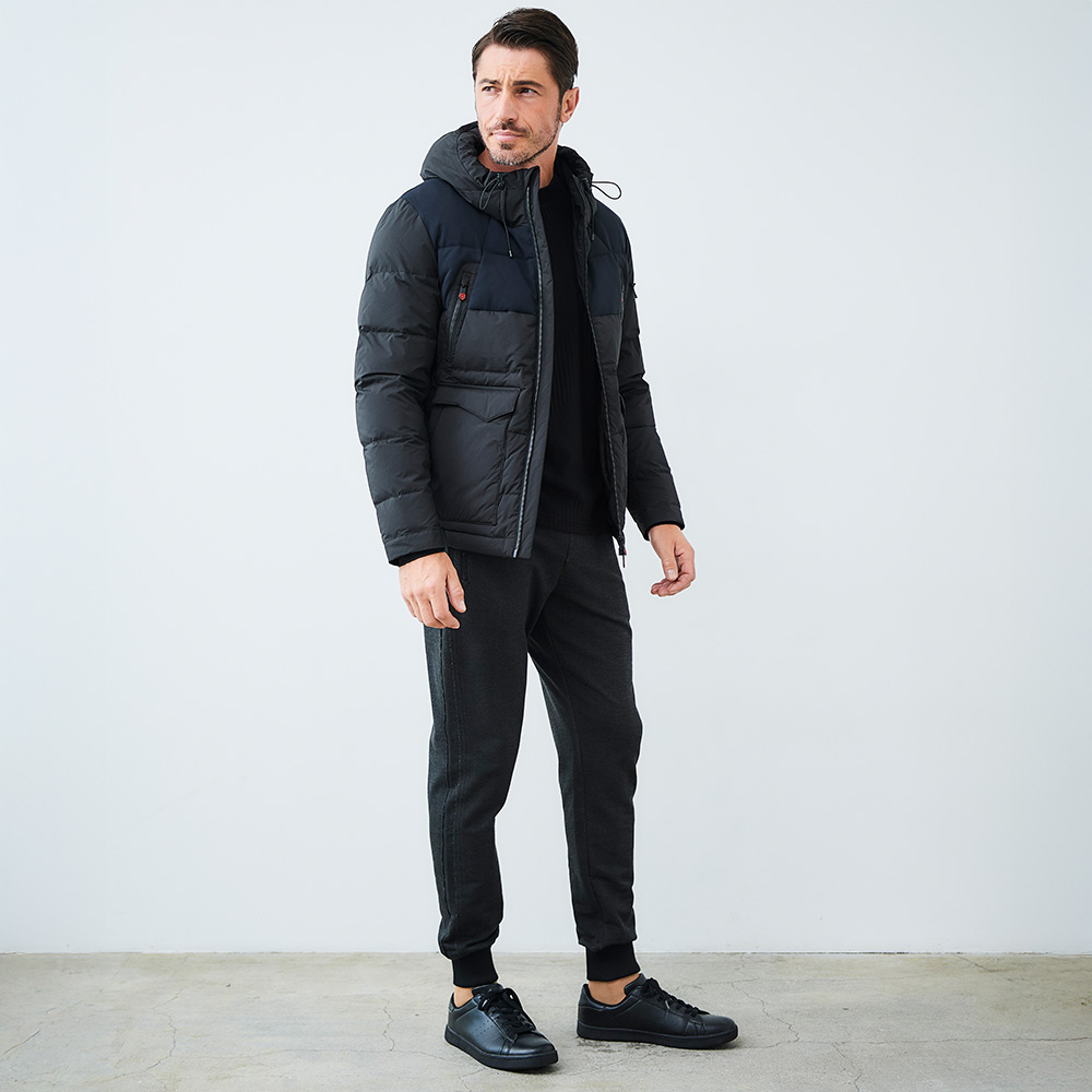HOMEITEM OUTER アウター 秋冬 計算された質感のコントラスト、異素材フードコート 異素材コンビデザインフーデッドダウンブルゾン 450416 G-SATGE ジーステージ 価格: ¥35,200 (税込) [ポイント還元 352ポイント~] 販売期間: カラー: 選択してください ベージュ ブラック サイズ: 選択してください 46 48 50 数量: 個 カラーサイズ在庫ベージュ46○48○50○ブラック46○48○50○ __MEMBER_ID__ 異素材コンビデザインフーデッドダウンブルゾン 450416 計算された質感のコントラスト、異素材フードコート 高密度のポリエステルタフタとストレッチ性のあるジャージ素材を組み合わせたハイブリッドダウンジャケット。表地にはポリエステル90%、ポリウレタン10%の混紡素材を使用し、ハリとコシのある風合いに仕上げました。裏地には滑らかなポリエステル素材を採用し、着脱のしやすさと快適な肌触りを両立。中綿にはダウン90%、フェザー10%を使用し、軽量で高い保温性を実現しています。異素材のコントラストが生み出す立体感と上品な光沢が、カジュアルながらも洗練された印象を演出。シンプルなデザインながらも素材の質感が際立ち、スタイリングを引き締めます。秋から冬にかけてのメインアウターとして活躍する、機能性とデザイン性を兼ね備えた一着です。 生地の厚さ 薄い やや薄い 普通 やや厚い 厚い 裏地 あり なし 透け感 あり なし 伸縮性 あり なし 光沢 なし ややあり お手入れ方法 当て布使用 お手入れ方法のアイコンについて フロント ほどよいハリ感と上品な光沢 バック シンプルな構成ながらも、素材の切り替えがさりげないコントラストを生み出します。 裏側 快適な着心地と着脱のしやすさを実現。 袖/ポケット 手を入れやすく、実用性とデザイン性を両立。 ジッパー フロントには滑らかな開閉を実現するメタルジップを採用。 サイズ 肩幅 胸囲 着丈 袖丈 胴囲 裾囲 46(M相当) 47 114 66 63.5 106 112 48(L相当) 49 118 68 64.5 110 116 50(XL相当) 51 122 70 65.5 114 120 異素材コンビデザインフーデッドダウンブルゾン 450416 G-SATGE ジーステージ 価格: ¥35,200 (税込) [ポイント還元 352ポイント~] 販売期間: カラー: 選択してください ベージュ ブラック サイズ: 選択してください 46 48 50 数量: 個 カラーサイズ在庫ベージュ46○48○50○ブラック46○48○50○ サイズ上のご注意点 サイズ表記は、商品本体のサイズになります。(ヌードサイズではございません) サイズにつきましては、お手元の衣類と本サイズを合わせて下さい。商品の素材等によっては、多少サイズに誤差が生じる場合がございます。当店では前後2cmは誤差の範囲内とさせて頂いておりますので、予めご了承くださいませ。 他にお困りでしたら当店までご連絡をお願いします。 在庫につきまして 当店では、実店舗 並びに自社サイトと在庫を共有しておりますので、オーダー受付後売り違いによる完売、欠品となってしまう場合もございます。 その際は、ご注文確認メール後に再度、当店よりご連絡させて頂きますことを予めご了承下さいませ。 商品画像について 商品画像の一部は、屋内照明の下で撮影していますので撮影商品画像と実際の商品と若干の色合いに違いが生じる場合がございます。 またコンピューターディスプレイの環境によっても異なる場合がございますので、予めご了承下さいませ。 商品番号について 商品番号、カラー番号は生産管理上の番号でございますので、ネット上の番号とは異なる場合がございます。 商品ページ記載の番号と、商品の下げ札・ネームの番号が異なる場合でも、商品に間違いはございませんのでご安心ください。 関連商品 [会員様限定 在庫限りSALE] ダウン&ハニカムジャージ コンビデザインパンツ ゴルフウェア 210506 420518 G-STAGE ジーステージ メーカー希望小売価格: ¥21,780(税込) ¥7,700(税込) 商品を見る 人気ランキング タートルネックニット ワイドリブ編み 保温 G-Heat ジーヒート 630707 G-stage ジーステージ ¥5,940(税込) ストレッチツイルパンツ ウエストストレッチ 美脚パンツ 240533-1 240532 G-stage ジーステージ ¥6,490(税込) 【WEB限定販売】LEON掲載 超伸縮&軽量 モックネック ニットソー 長袖 ロンT カットソー 240721 240701 G-STAGE ジーステージ ¥5,500(税込) ニット 吸湿 発熱 保温 モックネック クルーネック ウォッシャブル G-Heat ジーヒート ワイドリブ編み 天竺編み 630708 240705 G-stage ジーステージ ¥5,940(税込) [会員様限定 在庫限りSALE] イタリアンウール セーター タートルネック バスケット編み柄 秋冬 630704 G-STAGE ジーステージ ¥8,800(税込) LEON掲載 ヌバック調 ジャージ スラックス パンツ セットアップ 別売り 秋冬 630503 240503 G-stage ジーステージ ¥13,200(税込) LEON掲載 ヌバック調 ジャージジャケット ストレッチ セットアップ 別売り 秋冬 630203 240203 G-STAGE ジーステージ ¥19,800(税込) [SALE] LEON掲載 コーデュロイパンツ ジャージ ボンディング ストレッチ 美脚パンツ コール天 セットアップ別売り 450513 G-STAGE ジーステージ ¥11,000(税込) [SALE] LEON掲載 コーデュロイジャケ