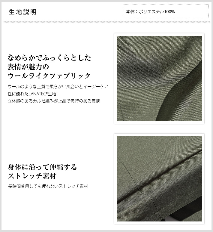 HOMEITEM PANTS パンツ 秋冬 イージーケア性に優れた多機能ウールライクファブリック美脚パンツ[別売り セットアップジャケット 450211] ウールライク カルゼ ストレッチ 美脚パンツ ウォッシャブル 洗える LANATEC 別売り セットアップ 450511 G-stage ジーステージ 価格: ¥14,300 (税込) 販売期間: カラー: 選択してください ブラック カーキ サイズ: 選択してください 44 46 48 50 [裾上げ希望]: お裾上げ方法を下のプルダウンより選択ください。 お裾上げをご希望の方は、購入手続き画面の 「お裾上げ 股下サイズ」に股下サイズを合わせてご記入ください。 お裾上げ後の返品・交換はお受けできません。 仕上がりはご注文承諾より1週間程度お時間頂戴いたします。 ※お裾上げの必要がない場合は、「裾上げなし」をご選択ください。 選択してください 裾上げなし(¥0) デニム仕上げ(¥1,100) シングル仕上げ(¥1,100) ダブル仕上げ(¥1,100) 数量: 枚 カラーサイズ在庫ブラック44○46○48○50○カーキ44○46○48○50○ __MEMBER_ID__ ウールライクカルゼストレッチ美脚パンツ450511 上質な質感と機能性を両立した高機能ウールライク美脚パンツ ストレッチ、イージーケア、抗ピリングといった多機能ポリエステル100%の素材でありながら、ふっくらとした重厚感あるウールライクな質感を実現した「LANATEC®(ラナテック)」を使用。斜めに走る畝(うね)が特徴的なカルゼ織りで、シンプルになりすぎず奥行のある表情を演出します。しっかりとしたハリとしなやかで柔らかい肌触り、窮屈感のないストレスフリーな着心地を実現したスラックスです。ご家庭の洗濯機で洗えるウォッシャブル仕様で、デイリーユースでも気兼ねなくお手入れが可能。ウエストはドローコードとベルトループを配しているので、ベルトなしのリラックススタイルからベルトをしてのドレッシーなスタイルまでカバー。美しくテーパードを描くシルエットと、生地を縫い上げてセンタープリーツラインを形成した「永久プリーツ加工」で、どんなに動いても汗をかいても品ある表情がキープできます。同素材のジャケット(品番:450211)と合わせて、よりドレッシーなセットアップスタイルもお楽しみいただけます。 ≫ 別売りセットアップジャケット(品番:420211)はこちら 生地の厚さ 薄い やや薄い 普通 やや厚い 厚い 裏地 あり なし 透け感 あり なし 伸縮性 あり なし 光沢 なし あり お手入れ方法 洗濯の際ネット使用・無蛍光洗剤使用・当て布使用・液体酸素系漂白剤使用 お手入れ方法のアイコンについて フロント ベルトループとドローコードで2WAY仕様 バックスタイル 両側にポケット付き 腰ポケット 両サイドにスラントポケット センタークリースライン 縫い上げて形成している永久プリーツ加工 アイコンプレート フラワーホールの下に蜂をモチーフにしたブランドアイコンプレート"fortunate bee"糸留めの為、取り外せます サイズ ウエスト 股上 股下 ワタリ幅 裾幅 ヒップ 44(S相当) 78 23 75 31 16 96 46(M相当) 82 23.5 75 32 16.5 100 48(L相当) 86 24 78 33 17 104 50(XL相当) 90 24.5 78 34 17.5 108 ※単位はcmです。※サイズ表より前後2cmは誤差の許容範囲とさせて頂いております。 サイズ表はこちら ウールライク カルゼ ストレッチ 美脚パンツ ウォッシャブル 洗える LANATEC 別売り セットアップ 450511 G-stage ジーステージ 価格: ¥14,300 (税込) 販売期間: カラー: 選択してください ブラック カーキ サイズ: 選択してください 44 46 48 50 [裾上げ希望]: お裾上げ方法を下のプルダウンより選択ください。 お裾上げをご希望の方は、購入手続き画面の 「お裾上げ 股下サイズ」に股下サイズを合わせてご記入ください。 お裾上げ後の返品・交換はお受けできません。 仕上がりはご注文承諾より1週間程度お時間頂戴いたします。 ※お裾上げの必要がない場合は、「裾上げなし」をご選択ください。 選択してください 裾上げなし(¥0) デニム仕上げ(¥1,100) シングル仕上げ(¥1,100) ダブル仕上げ(¥1,100) 数量: 枚 カラーサイズ在庫ブラック44○46○48○50○カーキ44○46○48○50○ サイズ上のご注意点 サイズ表記は、商品本体のサイズになります。(ヌードサイズではございません) サイズにつきましては、お手元の衣類と本サイズを合わせて下さい。商品の素材等によっては、多少サイズに誤差が生じる場合がございます。当店では前後2cmは誤差の範囲内とさせて頂いておりますので、予めご了承くださいませ。 他にお困りでしたら当店までご連絡をお願いします。 在庫につきまして 当店では、実店舗 並びに自社サイトと在庫を共有しておりますので、オーダー受付後売り違いによる完売、欠品となってしまう場合もございます。 その際は、ご注文確認メール後に再度、当店よりご連絡させて頂きますことを予めご了承下さいませ。 商品画像について 商品画像の一部は、屋内照明の下で撮影していますので撮影商品画像と実際の商品と若干の色合いに違いが生じる場合がございます。 またコンピューターディスプレイの環境によっても異なる