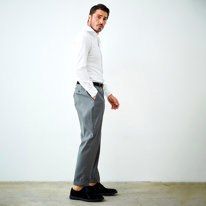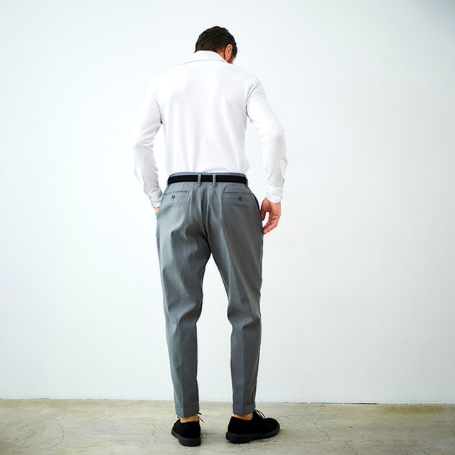 HOMEITEM PANTS パンツ 秋冬 大人のリラックス感と暖かさ、ストレッチペグトップパンツ [SALE] 裏起毛ストレッチペグトップパンツ 450554 G-STAGE ジーステージ メーカー希望小売価格: ¥10,780(税込) 価格: ¥7,700 (税込) 28%OFF [ポイント還元 77ポイント~] 販売期間: カラー: 選択してください ライトグレー チャコールグレー カーキ サイズ: 選択してください 44 46 48 50 [裾上げ希望]: お裾上げ方法を下のプルダウンより選択ください。 お裾上げをご希望の方は、購入手続き画面の 「お裾上げ 股下サイズ」に股下サイズを合わせてご記入ください。 お裾上げ後の返品・交換はお受けできません。 仕上がりはご注文承諾より1週間程度お時間頂戴いたします。 ※お裾上げの必要がない場合は、「裾上げなし」をご選択ください。 選択してください 裾上げなし(¥0) デニム仕上げ(¥1,100) シングル仕上げ(¥1,100) ダブル仕上げ(¥1,100) 数量: 枚 カラーサイズ在庫ライトグレー44○46○48○50○チャコールグレー44○46○48○50○カーキ44○46○48○50○ __MEMBER_ID__ 裏起毛ストレッチペグトップパンツ450554 大人のリラックス感と暖かさ ストレッチペグトップパンツこの冬のワードローブに活躍する、快適な穿き心地と洗練された風格を両立した裏起毛ストレッチパンツ。腰周りに余裕を持たせ、リラックスフィットするペグトップシルエットを採用。太ももから裾にかけてのテーパードラインとクラシカルなダブル仕立ての裾が、モダンでこなれた大人カジュアルな雰囲気を生み出します。適度な可動域をサポートする伸縮素材が特徴で、楽な履き心地ながら、上品なハリ感と洗濯しても型崩れしにくい耐久性を兼ね備えています。カジュアルからキレイめまで対応できる万能さもポイント。汚れが付きにくい生地なので、アクティブな毎日にも安心して着用いただけます。冬の着こなしに快適なリラックス感と程よいトレンド感をプラスする、暖かくタフで穿きやすい、こなれた大人のためのパンツです。 生地の厚さ 薄いやや薄い普通やや厚い厚い 裏地 あり なし 透け感 あり なし 伸縮性 あり なし 光沢 なし あり お手入れ方法 当て布使用 お手入れ方法のアイコンについて フロントベーシックなボタンとジップフロントバックバックポケットが2つ腰周りゆとりのあるツータック仕様両サイドにスラントポケットコンシールポケット右サイドシーム沿いに通気性を確保した内側メッシュのポケット裾クラシカルな雰囲気ただようダブル仕様裏起毛裾まで保温性が高い裏起毛仕様 サイズウエスト 股上 股下 ワタリ幅 裾幅 ヒップ 44(S相当) 77 25 72.5 36 16.5 115 46(M相当) 81 25.5 74 37 17 119 48(L相当) 85 26 75.5 38 17.5 123 50(XL相当) 89 26.5 77 39 18 127 ※単位はcmです。※サイズ表より前後2cmは誤差の許容範囲とさせて頂いております。 サイズ表はこちら [SALE] 裏起毛ストレッチペグトップパンツ 450554 G-STAGE ジーステージ メーカー希望小売価格: ¥10,780(税込) 価格: ¥7,700 (税込) 28%OFF [ポイント還元 77ポイント~] 販売期間: カラー: 選択してください ライトグレー チャコールグレー カーキ サイズ: 選択してください 44 46 48 50 [裾上げ希望]: お裾上げ方法を下のプルダウンより選択ください。 お裾上げをご希望の方は、購入手続き画面の 「お裾上げ 股下サイズ」に股下サイズを合わせてご記入ください。 お裾上げ後の返品・交換はお受けできません。 仕上がりはご注文承諾より1週間程度お時間頂戴いたします。 ※お裾上げの必要がない場合は、「裾上げなし」をご選択ください。 選択してください 裾上げなし(¥0) デニム仕上げ(¥1,100) シングル仕上げ(¥1,100) ダブル仕上げ(¥1,100) 数量: 枚 カラーサイズ在庫ライトグレー44○46○48○50○チャコールグレー44○46○48○50○カーキ44○46○48○50○ サイズ上のご注意点 サイズ表記は、商品本体のサイズになります。(ヌードサイズではございません) サイズにつきましては、お手元の衣類と本サイズを合わせて下さい。商品の素材等によっては、多少サイズに誤差が生じる場合がございます。当店では前後2cmは誤差の範囲内とさせて頂いておりますので、予めご了承くださいませ。 他にお困りでしたら当店までご連絡をお願いします。 在庫につきまして 当店では、実店舗 並びに自社サイトと在庫を共有しておりますので、オーダー受付後売り違いによる完売、欠品となってしまう場合もございます。 その際は、ご注文確認メール後に再度、当店よりご連絡させて頂きますことを予めご了承下さいませ。 商品画像について 商品画像の一部は、屋内照明の下で撮影していますので撮影商品画像と実際の商品と若干の色合いに違いが生じる場合がございます。 またコンピューターディスプレイの環境によっても異なる場合がございますので、予めご了承下さいませ。 商品番号について 商品番号、カラー番号は生産管理上の番号でございますので、ネット上の番号とは異なる場合がございます。 商品ページ記載の番号と、商品の下げ札・ネームの番号が異なる場
