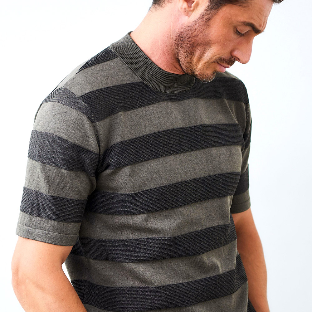 HOMEITEM KNITWEAR ニット 秋冬 立体感ある綺麗な編み柄が特徴的なストレッチ半袖ニット[別売り アンサンブルカーディガン 450701] 半袖ニット カットソー モックネック プレーティング ボーダー ボーダー ミラノリブ 14G 450702 G-STAGE ジーステージ 価格: ¥8,580 (税込) 販売期間: カラー: 選択してください ネイビー ワイン ブラウン サイズ: 選択してください 46 48 50 数量: 枚 カラーサイズ在庫ネイビー46○48○50○ワイン46○48○50○ブラウン46○48○50○ __MEMBER_ID__ 素材本体:ポリエステル100%サイズ肩幅 身丈 袖丈 身幅 裾幅 46(M相当) 41 65 24 50 50 48(L相当) 43 67 25 53 53 50(XL相当) 45 69 26 56 56 ※単位はcmです。※サイズ表より前後2cmは誤差の許容範囲とさせて頂いております。 サイズ表はこちら 生地の厚さ 薄いやや薄い普通やや厚い厚い 裏地 あり なし 透け感 あり なし 伸縮性 あり なし 光沢 なし あり お手入れ方法 洗濯の際ネット使用・当て布使用 お手入れ方法のアイコンについて 14Gプレーティングボーダー半袖ニットカットソーモックネック[プレーティング編み]二本の糸を表目と裏目を分けて編み上げる手間のかかった技法の一つ。ボーダー柄の目面に立体感が出て綺麗な編地の表情に仕上がりです。[生地特徴]特に横糸の伸縮性が高いため、着脱がしやすく耐久性にも優れています。軽量でシワにならず取り扱いが楽なため、気温に応じてコーディネートがしやすいお素材です。[仕立て]◇襟元は、モックネック型。◇袖口と裾部は丈夫なリブ編み。◇裾部スリット入りで動きやすい仕立て。◎商品番号 450701同素材のニットカーディガンとアンサンブルとしてもご着用可能≫ 別売りアンサンブルカーディガン(品番:450701)はこちら サイズ上のご注意点 サイズ表記は、商品本体のサイズになります。(ヌードサイズではございません) サイズにつきましては、お手元の衣類と本サイズを合わせて下さい。商品の素材等によっては、多少サイズに誤差が生じる場合がございます。当店では前後2cmは誤差の範囲内とさせて頂いておりますので、予めご了承くださいませ。 他にお困りでしたら当店までご連絡をお願いします。 在庫につきまして 当店では、実店舗 並びに自社サイトと在庫を共有しておりますので、オーダー受付後売り違いによる完売、欠品となってしまう場合もございます。 その際は、ご注文確認メール後に再度、当店よりご連絡させて頂きますことを予めご了承下さいませ。 商品画像について 商品画像の一部は、屋内照明の下で撮影していますので撮影商品画像と実際の商品と若干の色合いに違いが生じる場合がございます。 またコンピューターディスプレイの環境によっても異なる場合がございますので、予めご了承下さいませ。 半袖ニット カットソー モックネック プレーティング ボーダー ボーダー ミラノリブ 14G 450702 G-STAGE ジーステージ 価格: ¥8,580 (税込) 販売期間: カラー: 選択してください ネイビー ワイン ブラウン サイズ: 選択してください 46 48 50 数量: 枚 カラーサイズ在庫ネイビー46○48○50○ワイン46○48○50○ブラウン46○48○50○ 関連商品 [WEB限定販売]在庫限り ミラノリブ ニットジャージ ジャケット パンツ G-ZERO カジュアルスーツ セットアップ 別売り 420215515 G-stage ジーステージ メーカー希望小売価格: ¥11,000(税込) ¥6,930(税込) 商品を見る