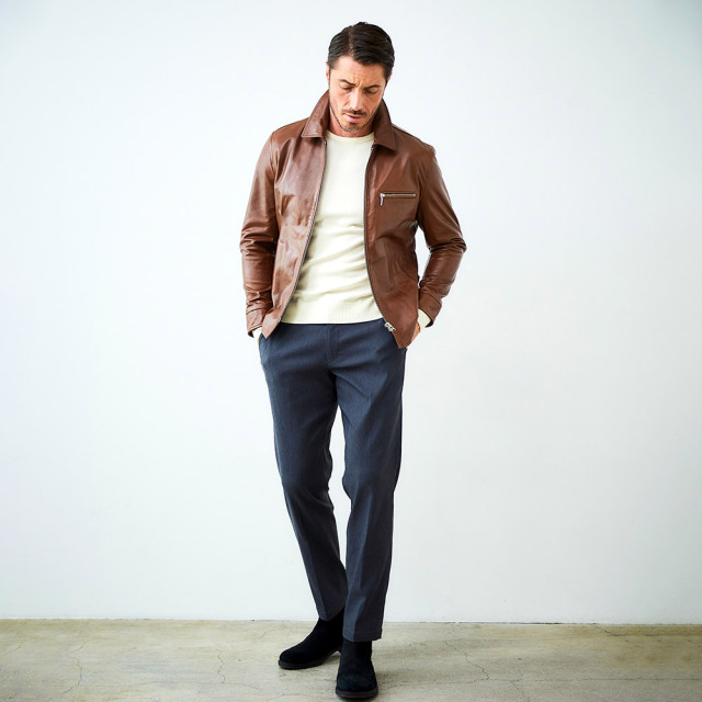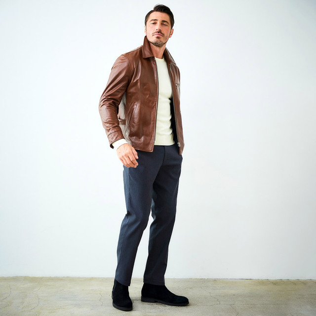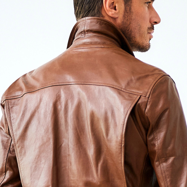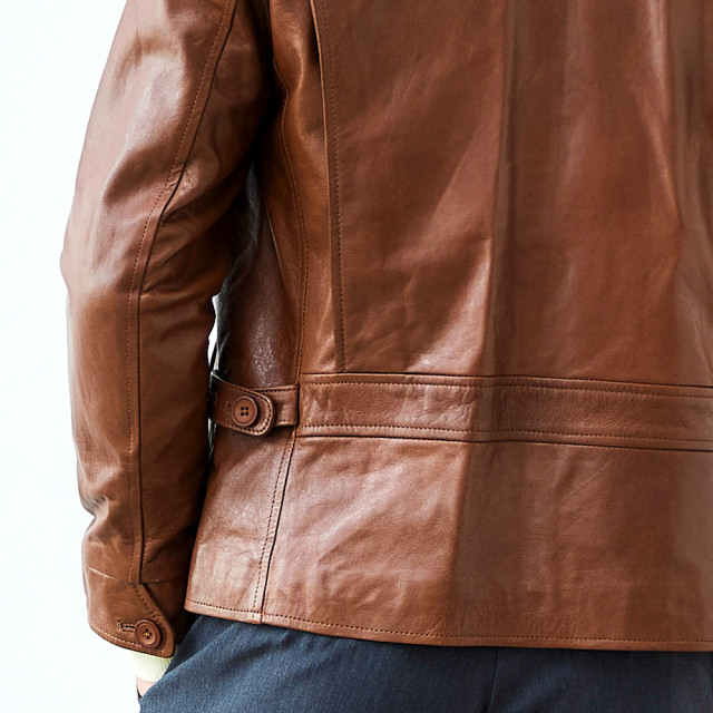 HOMEITEM LEATHER レザー特集ページ ミニマルでスマートルックなラムレザーブルゾン シープレザー シングルライダースブルゾン レザージャケット 451201 G-STAGE ジーステージ 価格: ¥64,900 (税込) [ポイント還元 649ポイント~] 販売期間: カラー: 選択してください ブラウン ブラック サイズ: 選択してください 46 48 50 数量: 枚 カラーサイズ在庫ブラウン46○48○50○ブラック46○48○50○ __MEMBER_ID__ 素材表地:羊革裏地:ポリエステル100%サイズ肩幅 胸囲 着丈 袖丈 胴囲 裾囲 46(M相当) 47 106 63 60.5 100 105 48(L相当) 49 110 65 61.5 104 109 50(XL相当) 51 114 67 62.5 108 113 ※単位はcmです。※サイズ表より前後2cmは誤差の許容範囲とさせて頂いております。 サイズ表はこちら 生地の厚さ 薄いやや薄い普通やや厚い厚い 裏地 あり なし 透け感 あり なし 伸縮性 あり なし 光沢 なし あり お手入れ方法 お手入れ方法のアイコンについて ミニマルでスマートなルックスが魅力のシープスキンのラムレザーブルゾン。天然の植物性タンニンを使い、手間暇をかけて丁寧に鞣すベジタブルタンニングを施し、羊革本来のしなやかさにほど良いハリとコシを加わえました。染料とワックスをブレンドした特別な染め方で、色に深みを与えながら美しい光沢感を引き出しています。使い込むほどに味わいが増す、エイジングがお楽しみいただけるのも特徴です。デザインはあくまでもベーシックな襟付のシングルZIPで、ジーンズにもスラックスにも合わせられる着回しの良さが魅力。軽く羽織ることができるブルゾンタイプなので、秋、春先にはTシャツを合わせ、冬にはセーターをインするなどして3シーズンご着用いただけます。使い込むほどに味が出て、末永く愛用できるベーシックなレザーブルゾンです。 サイズ上のご注意点 サイズ表記は、商品本体のサイズになります。(ヌードサイズではございません) サイズにつきましては、お手元の衣類と本サイズを合わせて下さい。商品の素材等によっては、多少サイズに誤差が生じる場合がございます。当店では前後2cmは誤差の範囲内とさせて頂いておりますので、予めご了承くださいませ。 他にお困りでしたら当店までご連絡をお願いします。 在庫につきまして 当店では、実店舗 並びに自社サイトと在庫を共有しておりますので、オーダー受付後売り違いによる完売、欠品となってしまう場合もございます。 その際は、ご注文確認メール後に再度、当店よりご連絡させて頂きますことを予めご了承下さいませ。 商品画像について 商品画像の一部は、屋内照明の下で撮影していますので撮影商品画像と実際の商品と若干の色合いに違いが生じる場合がございます。 またコンピューターディスプレイの環境によっても異なる場合がございますので、予めご了承下さいませ。 商品番号について 商品番号、カラー番号は生産管理上の番号でございますので、ネット上の番号とは異なる場合がございます。 商品ページ記載の番号と、商品の下げ札・ネームの番号が異なる場合でも、商品に間違いはございませんのでご安心ください。 シープレザー シングルライダースブルゾン レザージャケット 451201 G-STAGE ジーステージ 価格: ¥64,900 (税込) [ポイント還元 649ポイント~] 販売期間: カラー: 選択してください ブラウン ブラック サイズ: 選択してください 46 48 50 数量: 枚 カラーサイズ在庫ブラウン46○48○50○ブラック46○48○50○
