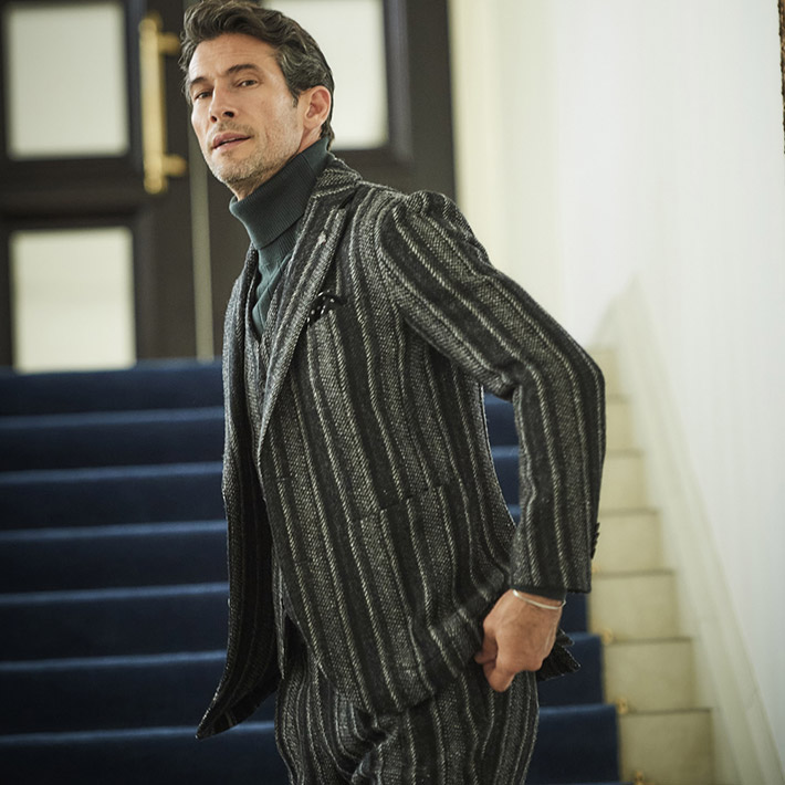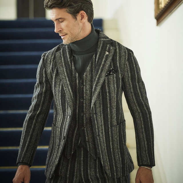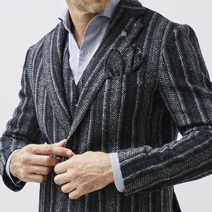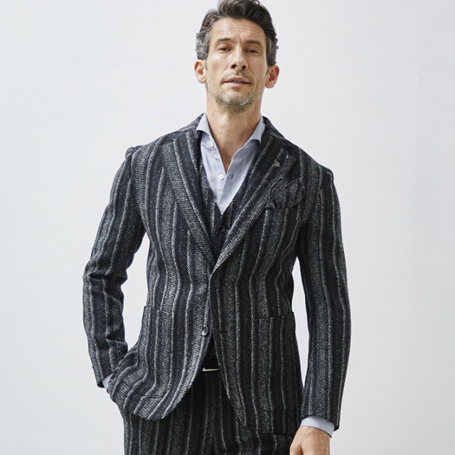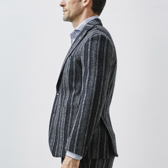HOMEITEM JACKETS ジャケット 秋冬 モノトーンのボールドストライプがモードな雰囲気のハリスツイードジャケット[別売り セットアップパンツ 420522-316][別売り セットアップジレ 421301B] 【会員専用】 [会員様限定SALE] ハリスツイード ボールドストライプ ジャケット セットアップ別売り 秋冬 490222-316 G-stage ジーステージ メーカー希望小売価格: ¥49,500(税込) 価格: ¥16,500 (税込) 66%OFF [ポイント還元 165ポイント~] 販売期間: サイズ: 選択してください 44 46 48 50 52 数量: 枚 サイズ在庫44× 46× 48× 50○52× __MEMBER_ID__ ハリスツイードボールドストライプジャケット490222-316 モノトーンのボールドストライプがモードな雰囲気のハリスツイードジャケットツイードの王様といわれる、英国ハリスツィードのWEBショップ限定のエクスクルーシブコレクション。今季は、トラッドな印象のあるハリスツイードでも、あえてモードなモノトーンのボールドストライプを配した生地をセレクト。シックなカラーのストライプですが、ハリスツイードらしいバルキーな表情と大振りなストライプで、1着で顔立ちする存在感あるジャケットに仕上がりました。ベーシックなテーラードデザインなので、ウールのスラックスはもちろん、デニムやチノパンなどとも相性が良く、幅広く着回せるのも魅力です。背抜き&ナチュラルショルダー、パッチポケットといった軽快なディティールを採り入れ、スラックスにシャツを合わせてドレッシーに装ったり、ジーンズにセーターを合わせて大人カジュアルに着回したり、様々なコーディネートに活躍します。肉厚でカシミヤに匹敵する防寒性、微撥水効果もあるハリスツイードは1枚でも暖かく、永く着用できる逸品。同生地のジレ(品番421301B 色番316)、パンツ(品番420522 色番316)と合わせると、3ピースのさらにドレッシーな装いを楽しむことができます。≫ 別売りセットアップパンツ(品番:420522-316)はこちら≫ 別売りセットアップジレ(品番:421301B)はこちら 生地の厚さ 薄いやや薄い普通やや厚い厚い 裏地 あり なし 透け感 あり なし 伸縮性 あり なし 光沢 なし あり お手入れ方法 中性洗剤使用,当て布使用 お手入れ方法のアイコンについて フロント襟ベーシックなテーラードタイプ裏側肩パットや裏地などを排除した、軽快な仕立てでライトな着用感をプラス袖口ボタンが付いた筒袖仕様ボタンシックなカラーの釦ポケットカジュアルなパッチポケットベント軽快なサイドベンツアイコンプレートフラワーホール下の蜂をモチーフ にしたアイコン"fortunate bee" サイズ肩幅 胸囲 着丈 袖丈 胴囲 裾囲 ラペル幅 44(S相当) 44 101 70 60.5 91 103 8.5 46(M相当) 45 104 70 60.5 94 106 8.5 48(L相当) 46 108 71 61.5 98 110 8.8 50(XL相当) 47 112 72 62.5 102 114 8.8 52(XXL相当) 48 116 73 62.5 106 118 8.8 ※単位はcmです。※サイズ表より前後2cmは誤差の許容範囲とさせて頂いております。 サイズ表はこちら 【会員専用】 [会員様限定SALE] ハリスツイード ボールドストライプ ジャケット セットアップ別売り 秋冬 490222-316 G-stage ジーステージ メーカー希望小売価格: ¥49,500(税込) 価格: ¥16,500 (税込) 66%OFF [ポイント還元 165ポイント~] 販売期間: サイズ: 選択してください 44 46 48 50 52 数量: 枚 サイズ在庫44× 46× 48× 50○52× サイズ上のご注意点 サイズ表記は、商品本体のサイズになります。(ヌードサイズではございません) サイズにつきましては、お手元の衣類と本サイズを合わせて下さい。商品の素材等によっては、多少サイズに誤差が生じる場合がございます。当店では前後2cmは誤差の範囲内とさせて頂いておりますので、予めご了承くださいませ。 他にお困りでしたら当店までご連絡をお願いします。 在庫につきまして 当店では、実店舗 並びに自社サイトと在庫を共有しておりますので、オーダー受付後売り違いによる完売、欠品となってしまう場合もございます。 その際は、ご注文確認メール後に再度、当店よりご連絡させて頂きますことを予めご了承下さいませ。 商品画像について 商品画像の一部は、屋内照明の下で撮影していますので撮影商品画像と実際の商品と若干の色合いに違いが生じる場合がございます。 またコンピューターディスプレイの環境によっても異なる場合がございますので、予めご了承下さいませ。 関連商品 [会員様限定SALE] ラスト1点 ダウン&ハニカムジャージ コンビデザインパンツ ゴルフウェア 210506 420518 G-STAGE ジーステージ メーカー希望小売価格: ¥21,780(税込) ¥6,930(税込) 商品を見る