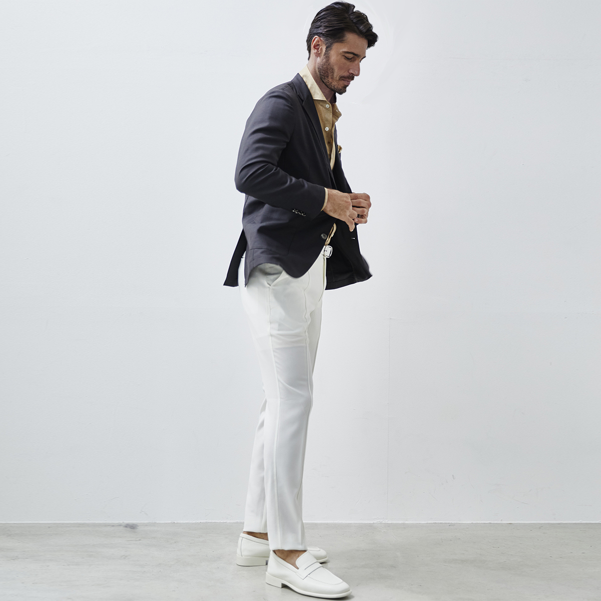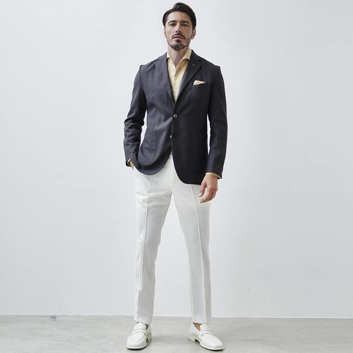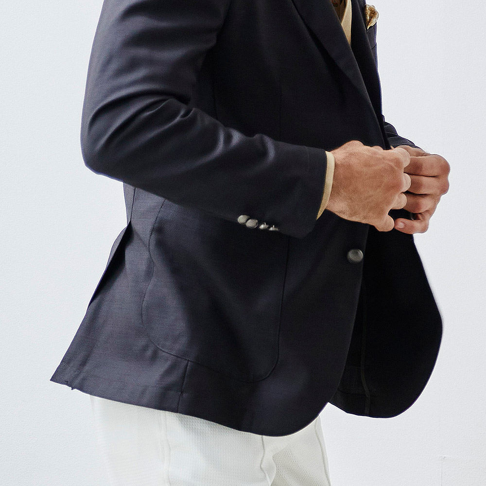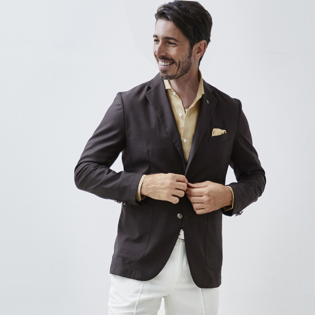 HOMEITEM JACKETS ジャケット 春夏 上質なイタリア製サマーウールのブレザージャケット 【会員専用】 [会員様限定SALE]在庫限り イタリア製 サマーウール ブレザージャケット ブラウン ブラック 880251 G-stage ジーステージ メーカー希望小売価格: ¥21,780(税込) 価格: ¥13,200 (税込) 39%OFF [ポイント還元 132ポイント~] 販売期間: カラー: 選択してください ブラウン ブラック ダークネイビー ネイビーC ネイビーD サイズ: 選択してください 46 48 50 数量: 枚 カラーサイズ在庫ブラウン46× 48× 50× ブラック46× 48× 50× ダークネイビー46× 48× 50× ネイビーC46× 48× 50× ネイビーD46× 48× 50× __MEMBER_ID__ イタリア製サマーウールブレザージャケット880251 上質なイタリア製サマーウールのブレザージャケット上質なイタリア製サマーウール生地を使用したジャケット。イタリアンファブリックの鹿の子調の繊細な織柄の生地は、上品な艶感が大人っぽい面持ちです。デザインはベーシックなテーラードデザインで、肩パットや裏地を省いた軽快でライトな仕立て。シンプルなデザインで、生地の良さが引き立ちます。ボタンには艶やかなメタルボタンを採用し、ラグジュアリー感をプラス。スラックスを合わせてONのスタイルに、チノパンやジーンズを合わせてキレイ目なOFFカジュアルのスタイルもお楽しみいただけます。 生地の厚さ 薄いやや薄い普通やや厚い厚い 裏地 あり なし 透け感 あり なし 伸縮性 あり なし 光沢 なし あり お手入れ方法 当て布使用 お手入れ方法のアイコンについて フロントシンプルなテーラードデザイン裏側軽快な着用感を重視したライトな背抜き仕立て袖メタルボタンが付いた筒袖ポケットカジュアルなパッチポケットボタン夏らしいプラスチック製の軽量メタルボタンボタン夏らしいプラスチック製の軽量メタルボタンアイコンプレートフラワーホール下、パンツ蜂をモチーフ にしたアイコン "fortunate bee" サイズ肩幅 胸囲 着丈 袖丈 胴囲 裾囲 ラペル幅 46(M相当) 45 104 70 60.5 94 106 8.5 48(L相当) 46 108 71 61.5 98 110 8.8 50(XL相当) 47 112 72 62.5 102 114 8.8 ※単位はcmです。※サイズ表より前後2cmは誤差の許容範囲とさせて頂いております。 サイズ表はこちら 【会員専用】 [会員様限定SALE]在庫限り イタリア製 サマーウール ブレザージャケット ブラウン ブラック 880251 G-stage ジーステージ メーカー希望小売価格: ¥21,780(税込) 価格: ¥13,200 (税込) 39%OFF [ポイント還元 132ポイント~] 販売期間: カラー: 選択してください ブラウン ブラック ダークネイビー ネイビーC ネイビーD サイズ: 選択してください 46 48 50 数量: 枚 カラーサイズ在庫ブラウン46× 48× 50× ブラック46× 48× 50× ダークネイビー46× 48× 50× ネイビーC46× 48× 50× ネイビーD46× 48× 50× サイズ上のご注意点 サイズ表記は、商品本体のサイズになります。(ヌードサイズではございません) サイズにつきましては、お手元の衣類と本サイズを合わせて下さい。商品の素材等によっては、多少サイズに誤差が生じる場合がございます。当店では前後2cmは誤差の範囲内とさせて頂いておりますので、予めご了承くださいませ。 他にお困りでしたら当店までご連絡をお願いします。 在庫につきまして 当店では、実店舗 並びに自社サイトと在庫を共有しておりますので、オーダー受付後売り違いによる完売、欠品となってしまう場合もございます。 その際は、ご注文確認メール後に再度、当店よりご連絡させて頂きますことを予めご了承下さいませ。 商品画像について 商品画像の一部は、屋内照明の下で撮影していますので撮影商品画像と実際の商品と若干の色合いに違いが生じる場合がございます。 またコンピューターディスプレイの環境によっても異なる場合がございますので、予めご了承下さいませ。
