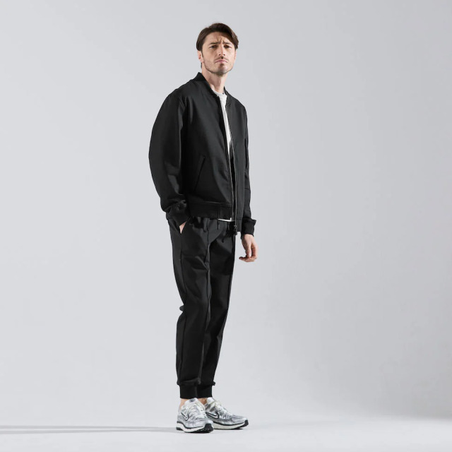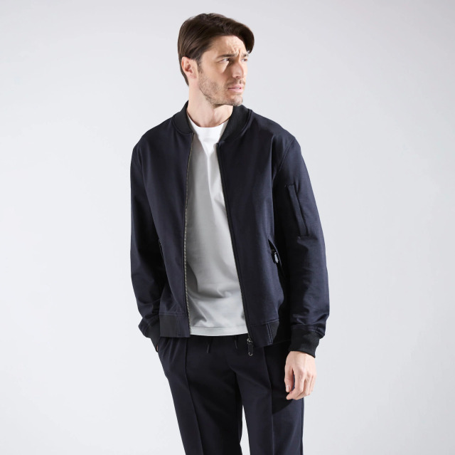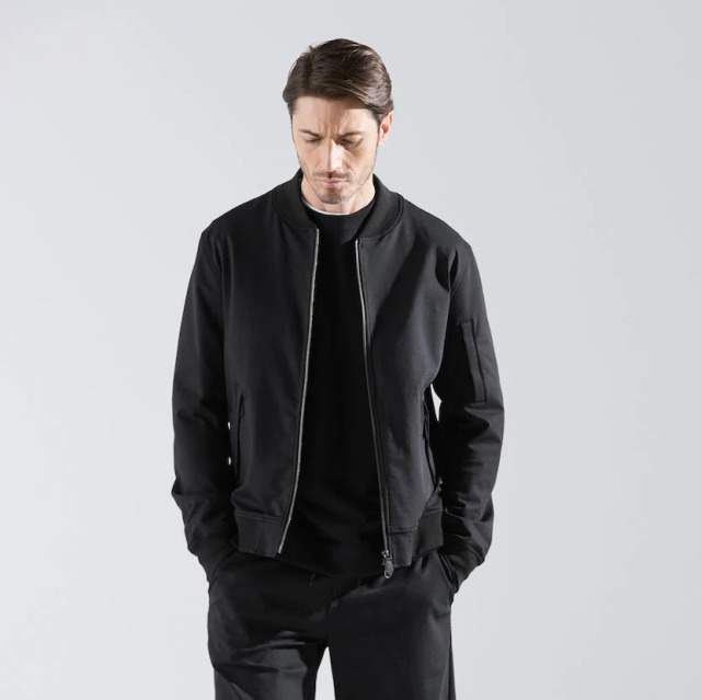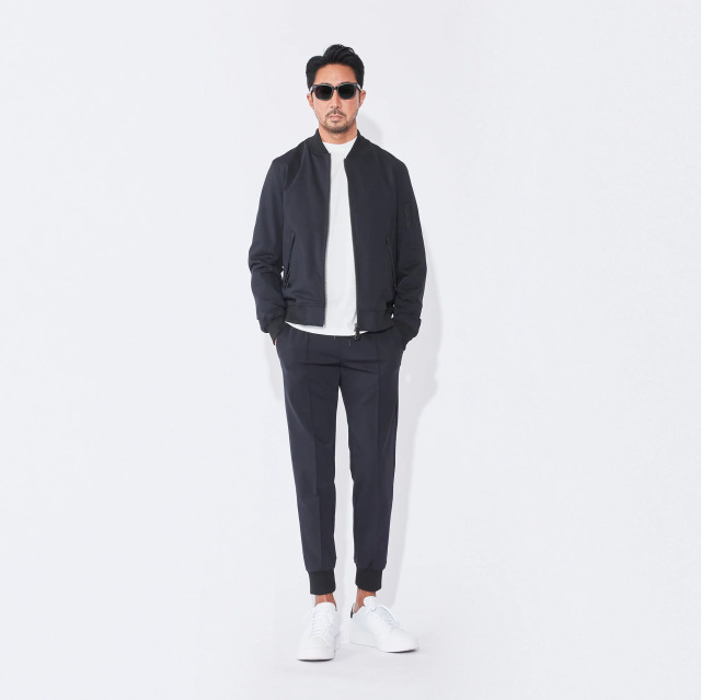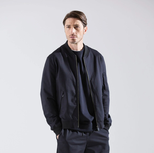 HOMEBRANDS MOVB モーヴ 想像を超える快適さ、大人のMA-1ブルゾン 【MOVB】日本製Duplex Cotton Jersey トラベルMA-1 ブルゾンMOVB ビジネス 価格: ¥68,200 (税込) [ポイント還元 682ポイント~] 販売期間: カラー: 選択してください コスモネイビー ブラック サイズ: 選択してください 44 46 48 50 数量: 枚 カラーサイズ在庫コスモネイビー44残り3点以下46残り3点以下48残り3点以下50× ブラック44残り3点以下46残り3点以下48残り3点以下50残り3点以下 __MEMBER_ID__ Seasonal Suitability 適正着用時期(秋・冬・春) Spring Summer Autumn Winter 【Duplex Cotton Jersey】コットンジャージーの構築的なMA-1。ミリタリーアイテムをMOVBの解釈でミニマルなデザインにアップデートしています。 【生地】 コンパクトヤーンとナイロンの交編組織に、ポリウレタンを編み込んだDuplex Cotton Jerseyを使用しています。この素材は伸縮性に優れており、かつタフな素材であるため、出張や旅行にぴったりです。 製品のダレ感を抑えるため、特殊機械で高密度に編まれた両面組織のベアポンチ構造を採用。原料のコンパクトヤーンが毛羽の少ない綺麗な表面を作り出し、さらにシルケット加工により、滑らかなタッチに仕上がっています。 ハードに着てもヨレや皴が気にならない、Movbのテーマであるハイブリッドスタイルウェアにふさわしい生地です。 【デザイン】 MA-1をベースに、MOVBらしいテーラリング感覚の美しく上品な佇まいにアップデートされており、程よいゆとりのあるスタンダードフィットと、シャープで綺麗な素材感が相まって、リラックス感もありながらエレガンスな大人のスタイルを演出します。腰ポケットや袖ポケットに加え、ビジネスマンの必需品である名刺やスマートフォン・財布を収納できるマルチポケット機能を内側に搭載しているため、収納力も抜群です。 MOVBの特徴である人間工学の観点からも考慮したMoving仕様も搭載されており、肩甲骨から肩周りの裏地に特殊な縫製が施されています。これによって、日々動かしている人間の腕をより窮屈なく動きやすくし、MOVBの「想像を超える快適さ」を体現しています。 MOVBのトラベル MA-1は、共地のセットアップやMOVBのインナー類と合わせて、心地よいビジネストリップを楽しめるアイテムです。 【カラー】 Black ・ Khaki 素材表地:綿58% ナイロン37% ポリウレタン5%リブ部分:ポリエステル79% ナイロン19% ポリウレタン2%裏地:キュプラ100% メッシュ部分 ポリエステル100% 取り扱い絵表示 【サイズ】 (cm) 44 46 48 50 肩幅 45 46.2 47.4 48.6 着丈 61 63 65 67 身幅 105 108 111 114 袖丈 64 64.9 65.8 66.7 【干場ディレクター 着用サイズ】身長 178cm、体重 62kg、着用サイズ:46 【モデル Trayko 着用サイズ】身長 185cm、体重 75kg、着用サイズ:50 【MOVB】日本製Duplex Cotton Jersey トラベルMA-1 ブルゾンMOVB ビジネス 価格: ¥68,200 (税込) [ポイント還元 682ポイント~] 販売期間: カラー: 選択してください コスモネイビー ブラック サイズ: 選択してください 44 46 48 50 数量: 枚 カラーサイズ在庫コスモネイビー44残り3点以下46残り3点以下48残り3点以下50× ブラック44残り3点以下46残り3点以下48残り3点以下50残り3点以下