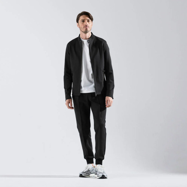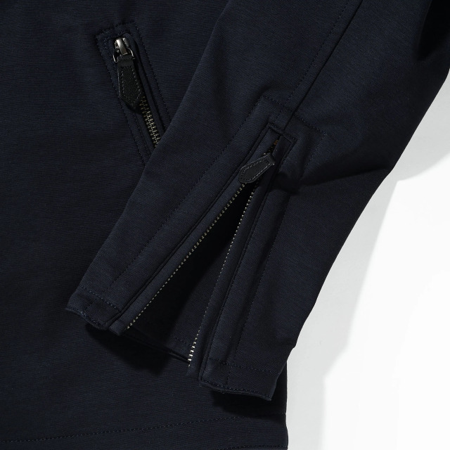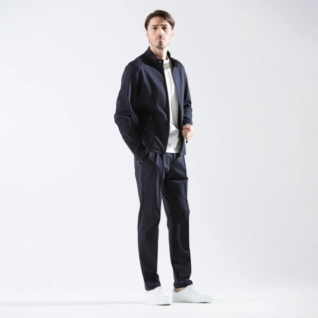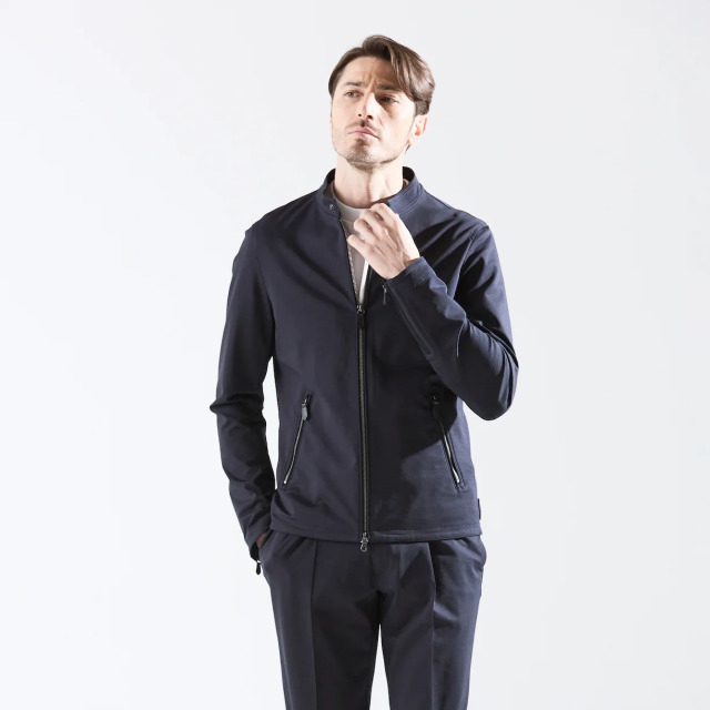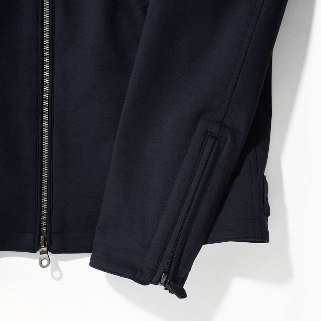 HOMEBRANDS MOVB モーヴ 通気性と機能美を追求した大人のライダースジャケット 【MOVBモーヴ】日本製Duplex Cotton Jersey トラベルスタンドライダースブルゾン MOVB 価格: ¥69,300 (税込) [ポイント還元 693ポイント~] 販売期間: カラー: 選択してください コスモネイビー ブラック サイズ: 選択してください 44 46 48 50 数量: 枚 カラーサイズ在庫コスモネイビー44○46○48×50×ブラック44○46○48×50× __MEMBER_ID__ Seasonal Suitability 適正着用時期(春・秋・冬) Spring Summer Autumn Winter 【Duplex Cotton Jersey スタンドライダースコスモネイビー】 [生地] MOVBが誇る「Duplex Cotton Jersey」を採用したこのスタンドタイプのライダースジャケットは、伸縮性に優れたコンパクトヤーンとナイロンの交編組織に、ポリウレタンを編み込んでいます。特殊なベアポンチ構造により、高密度に編まれた生地はダレ感を抑え、毛羽の少ない綺麗な表面を実現。シルケット加工による滑らかなタッチが特徴です。旅行や出張にも最適なタフでハードに着用可能な素材は、着崩れしに常にくくクリーンな印象を保ってくれます。 [デザイン] ミニマルかつタイムレスなデザインとジャストフィットのシャープなシルエットが、洗練されたムードを演出します。また、テーラードジャケット同様の立体的な構造が、カジュアル過ぎずMOVBならではの魅力を放ちます。 3シーズン対応可能な設計で、袖裏にメッシュ素材を採用することで通気性と機能美を追求。MOVBの特徴である動きやすさを考慮したMoving仕様も継続しており、日常の動作を窮屈なくサポートします。 [MULTI POCKET SYSTEM] スマホポケット、名刺ポケット、ウォレット/パスポートポケットなど、出張中や旅行中カバンなしでも行動できるように、沢山の機能ポケットをデザインに組み込みました。可能な限りシルエットに影響がないよう計算された配置となっています。 【カラー】 Cosmo Navy ・ Black 素材表地:綿58% ナイロン37% ポリウレタン5%裏地:キュプラ100% メッシュ部分 ポリエステル100% 取り扱い絵表示 【サイズ】 (cm) 肩幅 着丈 身幅 袖丈 44 42.8 61 51.5 61.1 46 44 63 53 62 48 45.2 65 54.5 62.9 50 46.4 67 56 63.8 【干場ディレクター 着用サイズ】身長 178cm、体重 62kg、着用サイズ:46 【MOVBモーヴ】日本製Duplex Cotton Jersey トラベルスタンドライダースブルゾン MOVB 価格: ¥69,300 (税込) [ポイント還元 693ポイント~] 販売期間: カラー: 選択してください コスモネイビー ブラック サイズ: 選択してください 44 46 48 50 数量: 枚 カラーサイズ在庫コスモネイビー44○46○48×50×ブラック44○46○48×50×