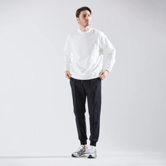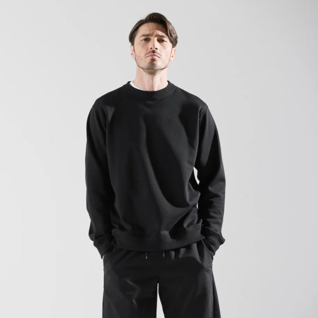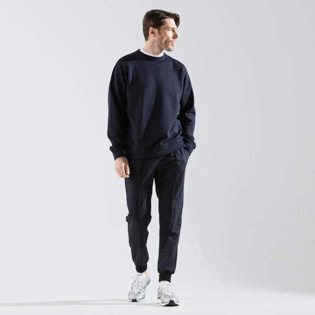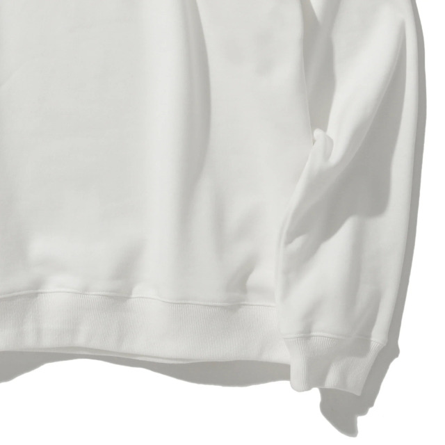 HOMEBRANDS MOVB モーヴ 上品な光沢となめらかな肌触りの裏毛ラグジュアリースウェット 【MOVBモーヴ】日本製Real Silky Cotton Jersey フレンチテリースウェットシャツ MOVB 価格: ¥26,400 (税込) [ポイント還元 264ポイント~] 販売期間: カラー: 選択してください ホワイト コスモネイビー ブラック サイズ: 選択してください 44 46 48 50 数量: 枚 カラーサイズ在庫ホワイト44残り3点以下46× 48残り3点以下50残り3点以下コスモネイビー44残り3点以下46× 48× 50× ブラック44× 46× 48× 50× __MEMBER_ID__ 上質素材が導く、品格を宿すラグジュアリークルーネック 高品質な綿糸で編み立てた裏毛ジャージー(フレンチテリー)素材を採用し、MOVBならではの洗練された佇まいを持つクルーネックスウェットに仕立てました。カジュアルなアイテムでありながら、どこか凛とした空気感をまとう一着。日常に上質な余白をもたらすスウェットです。 【素材】 原材料には、アメリカで栽培された希少な超長綿の中でも特に品質の高い原綿を使用。 このプレミアムコットンを、紡績工程において繊維に余分な負荷をかけずに丁寧に仕上げることで、コットン本来のふくらみと柔らかさを最大限に引き出したのが、「Real Silky Cotton」です。 まるでコットンボールが開いた瞬間のような、“ふわふわ”とした嵩高性としなやかさが、素肌に吸い付くような優しい着心地を叶えます。 さらに、創業100年を超える染色整理の老舗「ソトー」による特殊加工技術「Real Silky 加工」を施し、表面に極細シルクファイバーを繊細にあしらうことで、 自然な光沢感となめらかなタッチを加えた特別なフレンチテリー素材へと昇華。綿とシルク、2つの天然素材の美点が溶け合うことで生まれる上質な風合いは、他にない魅力です。 【シルエットとデザイン】 デザインは、クルーネックらしいシンプルさを生かしながら、ほんのりと丸みのあるシルエットに仕上げました。カジュアルすぎず、程よく構築的。リラックス感とエレガンスが共存するバランスが、MOVBらしい表情をつくります。モチっとした弾力と、ふんわりとした素材の表情が調和し、着る人の佇まいに“静かな品格”を与える一着です。日常を少しだけ豊かに変える、さりげなくも贅沢なスウェットがここに。 【商品特徴】 ・アメリカ産プレミアム超長綿を使用した「Real Silky Cotton」・ソトーによる「Real Silky 加工」によるシルクファイバー仕上げ・上品な光沢と、なめらかでドライな肌触り・リラックス感のある丸みを帯びたクルーネックシルエット・裏毛素材ならではの快適さとラグジュアリーな風合い 【カラー】 Cosmo Navy ・ White ・ Black 素材表地:綿100%リブ部分:綿100% 取り扱い絵表示 【サイズ】 (cm) 肩幅 着丈 身幅 袖丈 44 46.5 63 110 56.7 46 48 65 114 58 48 49.5 67 118 59.2 50 51 69 122 62.5 【干場ディレクター 着用サイズ】身長 178cm、体重 62kg、着用サイズ:46 【モデル Trayko 着用サイズ】身長 185cm、体重 75kg、着用サイズ:50 【MOVBモーヴ】日本製Real Silky Cotton Jersey フレンチテリースウェットシャツ MOVB 価格: ¥26,400 (税込) [ポイント還元 264ポイント~] 販売期間: カラー: 選択してください ホワイト コスモネイビー ブラック サイズ: 選択してください 44 46 48 50 数量: 枚 カラーサイズ在庫ホワイト44残り3点以下46× 48残り3点以下50残り3点以下コスモネイビー44残り3点以下46× 48× 50× ブラック44× 46× 48× 50×