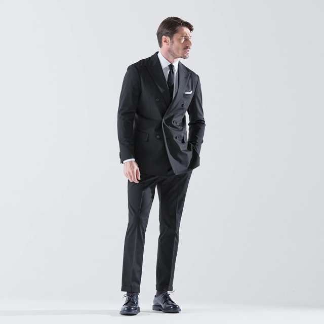 HOMEBRANDS MOVB モーヴ 現代的なエレガンスとクラシックを融合させた6ボタンダブルジャケット 【MOVBモーヴ】日本製Duplex Cotton Jersey ダブル6Bトラベルジャケット MOVB ビジネス 価格: ¥72,600 (税込) [ポイント還元 726ポイント~] 販売期間: カラー: 選択してください コスモネイビー ブラック サイズ: 選択してください 44 46 48 50 数量: 枚 カラーサイズ在庫コスモネイビー44残り3点以下46残り3点以下48残り3点以下50× ブラック44残り3点以下46○48残り3点以下50残り3点以下 __MEMBER_ID__ Seasonal Suitability 適正着用時期(秋・冬・春) Spring Summer Autumn Winter 【素材特性】 MOVBのDuplex Cotton Jerseyシリーズに、新たにダブルブレステッド6ボタンデザインのジャケットが加わりました。このシリーズでは、コンパクトヤーンとナイロンの交編組織にポリウレタンを組み込んだ、優れたキックバック性を持つ素材を採用しています。素材の表面は、毛羽の少ないコンパクトヤーンを使用し、さらにシルケット加工を施すことで、滑らかで艶やかな仕上がりを実現しました。この加工により、色の発色性も向上し、美しい見た目が長く保たれます。 ジャケットは両面組織のベアポンチ構造で編まれ、特殊な機械を使って高密度に仕上げられています。この構造は、製品のダレ感を抑え、長時間の着用でも型崩れしにくいのが特徴です。タフでありながらも、ヨレや皴が気にならず、トラベル仕様にぴったりの素材です。 【デザイン】 クラシックなダブルブレステッドのデザインに、現代的なエレガンスを融合させたジャケットです。フロントの重なりをあえて浅くすることで、洗練された外観とともに、上質なシルエットを提供します。MOVB独自の「Moving仕様」により、肩甲骨から肩周りにかけての裏地に特殊な縫製が施されており、自由な動きをサポートします。この設計により、ビジネスや旅行など、どんなシーンでも快適に着用できます。 このテーラードジャケットは、オールシーズン着用できるように設計されており、MOVBの「想像を超える快適さ」を体現するセットアップジャケットとしてお勧めです。 【MULTI POCKET SYSTEM】 ビジネスマンにとって必須の機能として、ジャケットには様々なポケットが配置されています。スマートフォン、名刺、財布など、出張や旅行中に必要なアイテムを収納できるマルチポケットシステムを備えています。これらのポケットは、シルエットに影響を与えないように慎重に設計されており、見た目の美しさを損なうことなく高い実用性を提供します。 【カラー】 Cosmo Navy ・ Black 素材表地:綿58% ナイロン37% ポリウレタン5%裏地:キュプラ100% メッシュ部分 ポリエステル100% 取り扱い絵表示 【サイズ】 (cm) 44 46 48 50 肩幅 45.4 46.6 47.8 49 着丈 70 72 74 76 身幅 100 103 106 109 袖丈 60.1 61 61.9 62.8 【干場ディレクター 着用サイズ】身長 178cm、体重 62kg、着用サイズ:46 【モデル Trayko 着用サイズ】身長 185cm、体重 75kg、着用サイズ:50 【MOVBモーヴ】日本製Duplex Cotton Jersey ダブル6Bトラベルジャケット MOVB ビジネス 価格: ¥72,600 (税込) [ポイント還元 726ポイント~] 販売期間: カラー: 選択してください コスモネイビー ブラック サイズ: 選択してください 44 46 48 50 数量: 枚 カラーサイズ在庫コスモネイビー44残り3点以下46残り3点以下48残り3点以下50× ブラック44残り3点以下46○48残り3点以下50残り3点以下