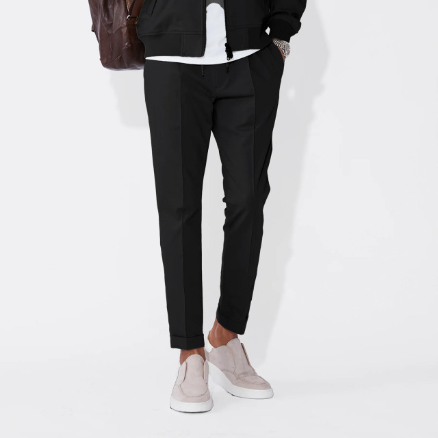 HOMEBRANDS MOVB モーヴ クラシックでエレガントなスリムシルエットスラックス 【MOVBモーヴ】日本製Duplex Cotton Jersey フレックスモーショントラベルスラックス パンツ スリムフィット MOVB ビジネス 価格: ¥36,300 (税込) [ポイント還元 363ポイント~] 販売期間: カラー: 選択してください コスモネイビー ブラック サイズ: 選択してください 44 46 48 50 [裾上げ希望]: お裾上げ方法を下のプルダウンより選択ください。 お裾上げをご希望の方は、購入手続き画面の 「お裾上げ 股下サイズ」に股下サイズを合わせてご記入ください。 お裾上げ後の返品・交換はお受けできません。 仕上がりはご注文承諾より1週間程度お時間頂戴いたします。 ※お裾上げの必要がない場合は、「裾上げなし」をご選択ください。 選択してください 裾上げなし(¥0) デニム仕上げ(¥1,100) シングル仕上げ(¥1,100) ダブル仕上げ(¥1,100) 数量: 枚 カラーサイズ在庫コスモネイビー44残り3点以下46× 48残り3点以下50残り3点以下ブラック44× 46× 48× 50× __MEMBER_ID__ Seasonal Suitability 適正着用時期(秋・冬・春) Spring Summer Autumn Winter 【Duplex Cotton Jersey】すっきりとしたシルエットが魅力のフレックスモーショントラベルスラックス。コンパクトヤーンとナイロンの交編組織にポリウレタンを組み込んだこの素材は、優れたキックバック性を持ち、動きやすさと耐久性を両立しています。長時間の移動や出張、旅行でも快適に着用できる設計です。独自機械で編み目を細かくした両面組織のベアポンチ構造により、製品のダレ感を抑え、常に美しいシルエットを保ちます。 表面には毛羽の少ないコンパクトヤーンを使用し、シルケット加工を施すことで滑らかな光沢と美しい発色を実現しました。これにより、何度着用してもヨレや皺が気にならない、タフで洗練された仕上がりとなっています。 【デザイン】 スリムフィットのフレックスモーショントラベルスラックスは、クラシックでエレガントなデザインを取り入れています。テーパードの効いたスリムシルエットを採用し、足元に向かって細くなる美しいラインを描きます。フロントとバックのクリースラインにはピンタックを施し、長時間の着用でも形が崩れず、常にきちんとした印象を保てます。裾はダブル仕上げとなっており、全体的にクラシックでありながらライトな印象に仕上げました。 ウエストサイドにはギャザーを入れたMOVBの「フレックスモーション」技術を採用し、動きやすさと快適さを兼ね備えています。どんなシーンでもスタイリッシュでありながら、快適に過ごせるデザインです。 【MULTI POCKET SYSTEM】 ビジネスシーンにおける利便性を考慮して設計された、マルチポケットシステムを搭載しています。スマートフォン、名刺、財布などの必需品を整理して収納できる複数のポケットを備えており、出張や旅行中も手ぶらで快適に過ごせます。 【カラー】 Cosmo Navy ・ Black 素材表地:綿58% ナイロン37% ポリウレタン5%裏地:ポリエステル100% 取り扱い絵表示 【サイズ】 (cm) 44 46 48 50 ウエスト 78 81 84 87 ヒップ周り 102 105 108 111 股上 22.5 23 23.5 24 股下 69 71 73 75 もも周り 31.9 32.9 33.9 34.9 裾周り 16.8 17.3 17.8 18.3 【干場ディレクター 着用サイズ】身長 178cm、体重 62kg、着用サイズ:46 【MOVBモーヴ】日本製Duplex Cotton Jersey フレックスモーショントラベルスラックス パンツ スリムフィット MOVB ビジネス 価格: ¥36,300 (税込) [ポイント還元 363ポイント~] 販売期間: カラー: 選択してください コスモネイビー ブラック サイズ: 選択してください 44 46 48 50 [裾上げ希望]: お裾上げ方法を下のプルダウンより選択ください。 お裾上げをご希望の方は、購入手続き画面の 「お裾上げ 股下サイズ」に股下サイズを合わせてご記入ください。 お裾上げ後の返品・交換はお受けできません。 仕上がりはご注文承諾より1週間程度お時間頂戴いたします。 ※お裾上げの必要がない場合は、「裾上げなし」をご選択ください。 選択してください 裾上げなし(¥0) デニム仕上げ(¥1,100) シングル仕上げ(¥1,100) ダブル仕上げ(¥1,100) 数量: 枚 カラーサイズ在庫コスモネイビー44残り3点以下46× 48残り3点以下50残り3点以下ブラック44× 46× 48× 50×