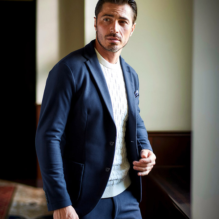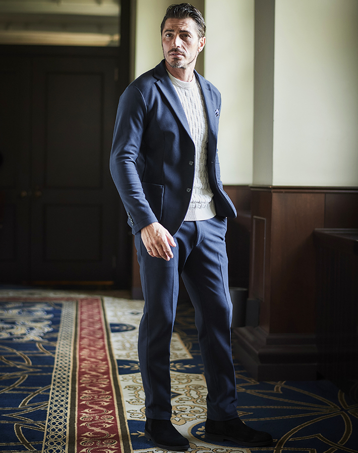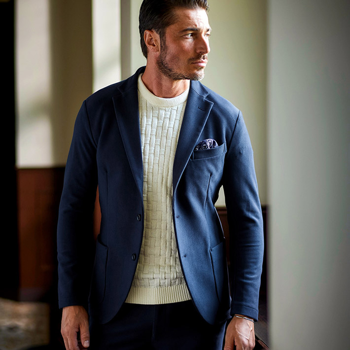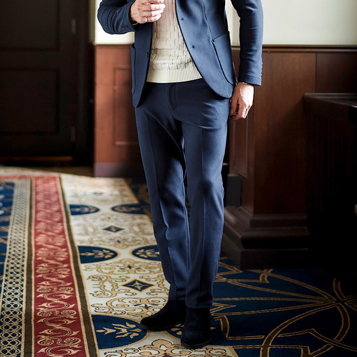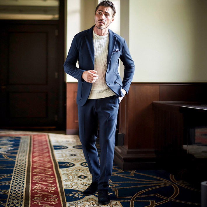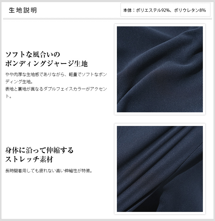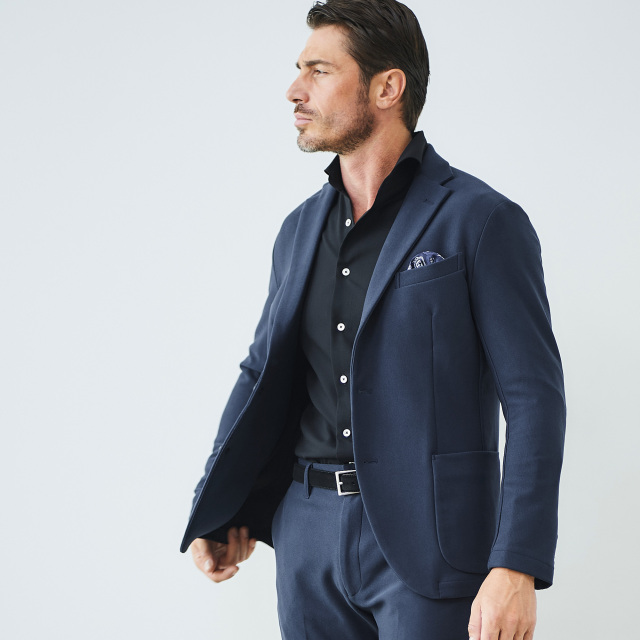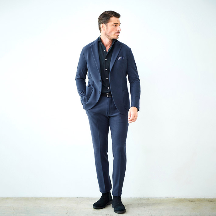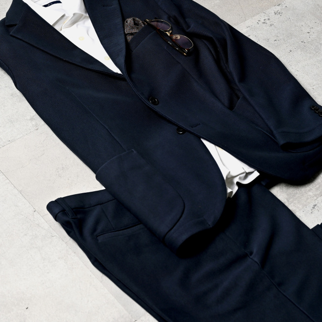 HOMEITEM SETUP セットアップ 秋冬 ソフトでスポーティーな表情のボンディングジャージセットアップ 【WEB限定】スーパーストレッチボンディングスーツ セットアップ ネイビー 洗える セットアップ R252553 G-STAGE ジーステージ R252513 価格: ¥33,000 (税込) 販売期間: カラー: 選択してください ネイビー サイズ: 選択してください 46 48 50 [裾上げ希望]: お裾上げ方法を下のプルダウンより選択ください。 お裾上げをご希望の方は、購入手続き画面の 「お裾上げ 股下サイズ」に股下サイズを合わせてご記入ください。 お裾上げ後の返品・交換はお受けできません。 仕上がりはご注文承諾より1週間程度お時間頂戴いたします。 ※お裾上げの必要がない場合は、「裾上げなし」をご選択ください。 選択してください 裾上げなし(¥0) デニム仕上げ(¥1,100) シングル仕上げ(¥1,100) ダブル仕上げ(¥1,100) 数量: 枚 カラーサイズ在庫ネイビー46○48○50○ __MEMBER_ID__ WEB限定カラー スーパーストレッチボンディングスーツ R252553 ソフトでスポーティーな表情のボンディングジャージセットアップ ほど良い肉厚感でさりげない光沢感のあるスポーティーなボンディングジャケット&パンツのセットアップスーツ。WEB限定カラーとして、深みある洗練された大人のネイビーをご用意しました。肉厚ながらも軽量でやわらかく高い伸縮性が特徴のボンディング生地で、ハリのある美しいシルエットが特徴。ジャケットはドレッシーなテーラードデザインに、軽い着心地を重視したミニマルでライトな仕立て。スマートな面持のやや高めのゴージラインで、ダブルフェイスカラーの裏地が光るモダンなデザインです。パンツは緩やかにテーパードを描く美しいシルエットと、可動域6cmの高機能ストレッチウエストで、ストレスフリーな履き心地。ご家庭で洗濯できるウォッシャブル仕様なので、デイリーに着用が可能です。ストレッチ性と保形性があり、ジャージ素材でシワになりにくく、デイリー使いは勿論、出張や旅行など、あらゆるシーンで快適にご着用いただけます。 生地の厚さ 薄い やや薄い 普通 やや厚い 厚い 裏地 あり なし 透け感 あり なし 伸縮性 あり なし 光沢 なし ややあり お手入れ方法 スチームで浮かしアイロン お手入れ方法のアイコンについて フロント襟 ベーシックなテーラードタイプ 裏側 着心地の良さを重視したライトな仕立て左裏にボタン付きポケット 袖/ポケット カジュアルな筒袖仕様両サイドにカジュアルなフラップポケット ベント 動きやすくすっきりと見せるセンターベント ウエスト ボタン&ベルトループのシンプルなウエスト バックスタイル 両側にポケット付き ジャケットサイズ 肩幅 胸囲 着丈 袖丈 胴囲 裾囲 ラペル幅 46(M相当) 44 106 71 60.5 95 110 8 48(L相当) 45 110 72 61.5 99 114 8 50(XL相当) 46 114 73 62.5 103 118 8 パンツサイズ ウエスト 股上 股下 ワタリ幅 裾幅 ヒップ 46(M相当) 82-88 24.5 75 31.5 17 99 48(L相当) 86-92 25 77 32.5 17.5 103 50(XL相当) 90-96 25.5 78 33.5 18 107 ※単位はcmです。※サイズ表より前後2cmは誤差の許容範囲とさせて頂いております。 サイズ表はこちら 【WEB限定】スーパーストレッチボンディングスーツ セットアップ ネイビー 洗える セットアップ R252553 G-STAGE ジーステージ R252513 価格: ¥33,000 (税込) 販売期間: カラー: 選択してください ネイビー サイズ: 選択してください 46 48 50 [裾上げ希望]: お裾上げ方法を下のプルダウンより選択ください。 お裾上げをご希望の方は、購入手続き画面の 「お裾上げ 股下サイズ」に股下サイズを合わせてご記入ください。 お裾上げ後の返品・交換はお受けできません。 仕上がりはご注文承諾より1週間程度お時間頂戴いたします。 ※お裾上げの必要がない場合は、「裾上げなし」をご選択ください。 選択してください 裾上げなし(¥0) デニム仕上げ(¥1,100) シングル仕上げ(¥1,100) ダブル仕上げ(¥1,100) 数量: 枚 カラーサイズ在庫ネイビー46○48○50○ サイズ上のご注意点 サイズ表記は、商品本体のサイズになります。(ヌードサイズではございません) サイズにつきましては、お手元の衣類と本サイズを合わせて下さい。商品の素材等によっては、多少サイズに誤差が生じる場合がございます。当店では前後2cmは誤差の範囲内とさせて頂いておりますので、予めご了承くださいませ。 他にお困りでしたら当店までご連絡をお願いします。 在庫につきまして 当店では、実店舗 並びに自社サイトと在庫を共有しておりますので、オーダー受付後売り違いによる完売、欠品となってしまう場合もございます。 その際は、ご注文確認メール後に再度、当店よりご連絡させて頂きますことを予めご了承下さいませ。 商品画像について 商品画像の一部は、屋内照明の下で撮影していますので撮影商品画像と実際の商品と若干の色合いに違いが生じる場合がございます。 またコンピューターディスプレイの環境によっても異なる場合がございますので、予めご了承下さいませ。 商品番号について 商品番号、カラー番号