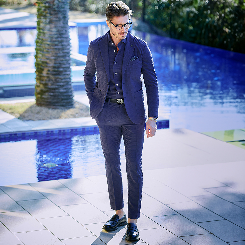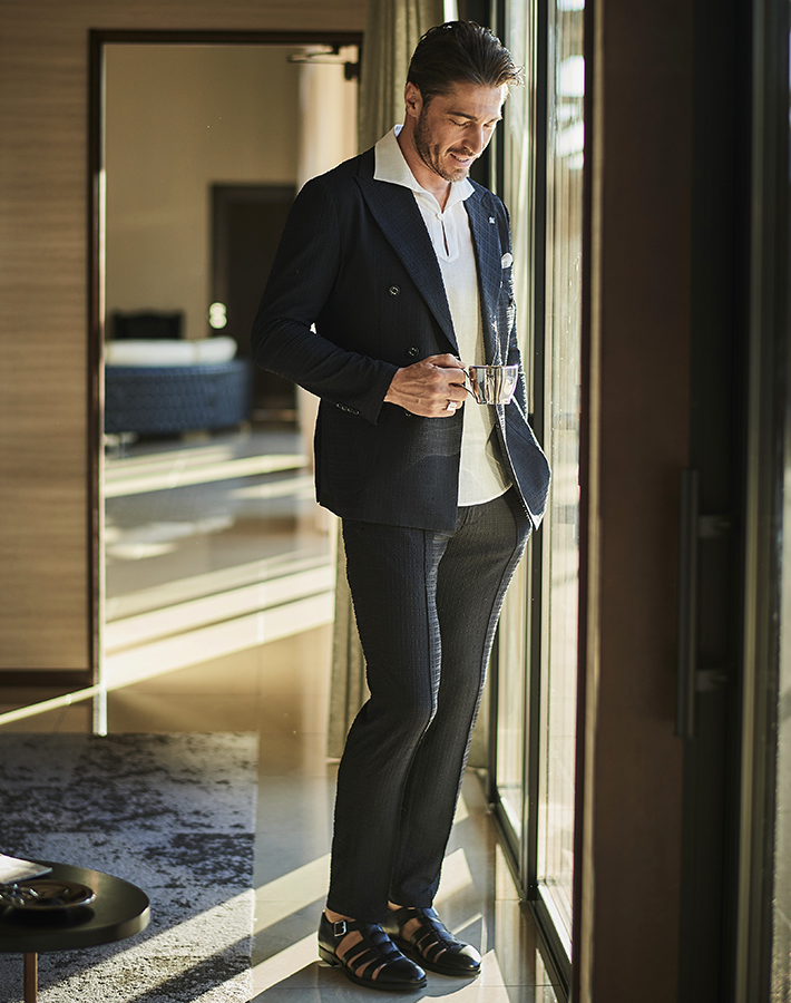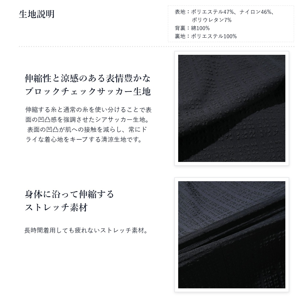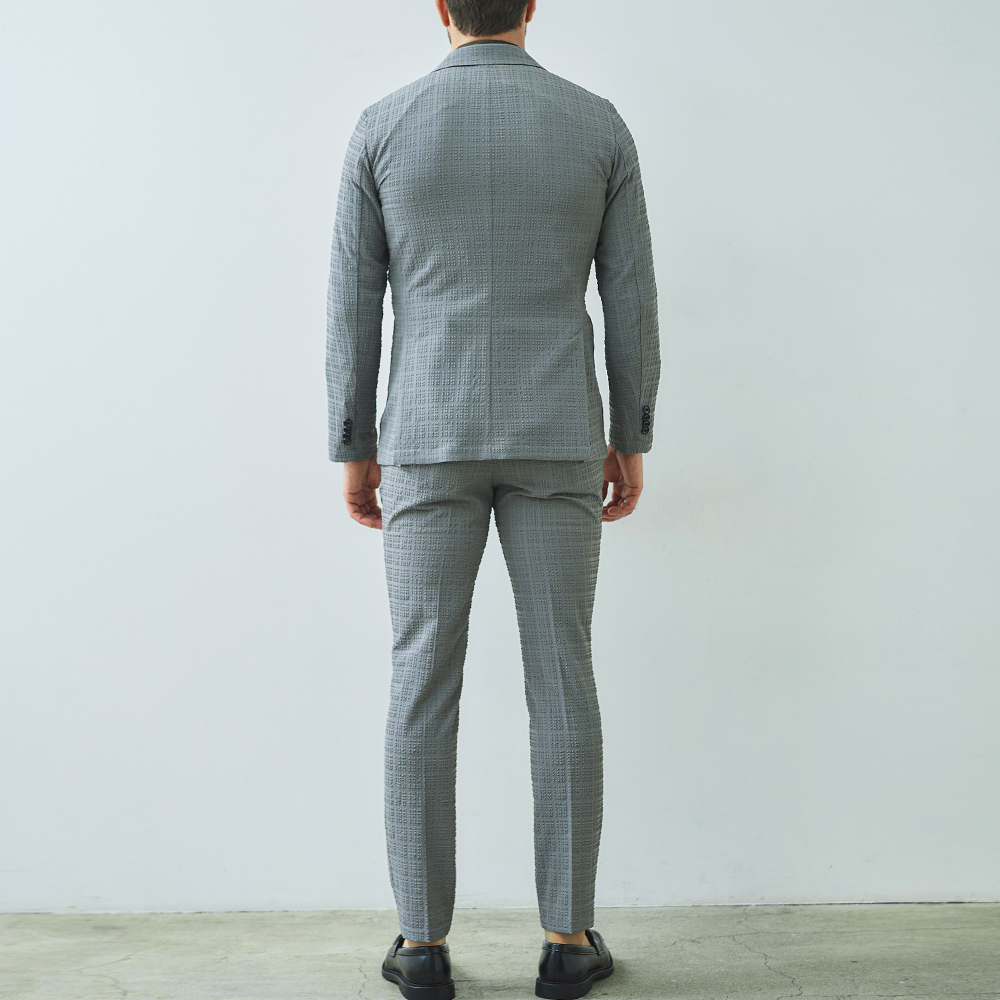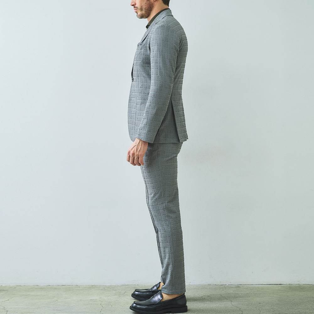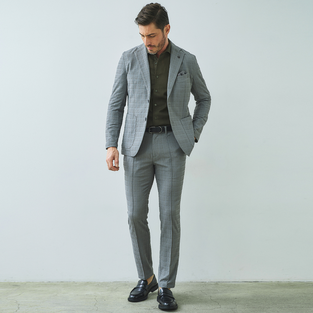 HOMEITEM SETUP セットアップ 春夏 【WEB限定販売】涼やかな表情のブロックチェックサッカーセットアップ WEB限定 ブロックサッカーストレッチセットアップ set360206506 G-STAGE ジーステージ 価格: ¥35,200 (税込) [ポイント還元 352ポイント~] 販売期間: カラー: 選択してください チャコールグレー ネイビー ブラック(シングル) ブラック(ダブル) ジャケットサイズ: 選択してください 44 46 48 50 52 パンツサイズ: 選択してください 44 46 48 50 52 [裾上げ希望]: お裾上げ方法を下のプルダウンより選択ください。 お裾上げをご希望の方は、購入手続き画面の 「お裾上げ 股下サイズ」に股下サイズを合わせてご記入ください。 お裾上げ後の返品・交換はお受けできません。 仕上がりはご注文承諾より1週間程度お時間頂戴いたします。 ※お裾上げの必要がない場合は、「裾上げなし」をご選択ください。 選択してください 裾上げなし(¥0) デニム仕上げ(¥1,100) シングル仕上げ(¥1,100) ダブル仕上げ(¥1,100) 数量: 個 カラージャケットサイズパンツサイズ在庫チャコールグレー4444残り3点以下46残り3点以下48×50×52×4644残り3点以下46○48残り3点以下50×52×4844×46残り3点以下48○50○52×5044×46×48残り3点以下50○52×5244×46×48×50×52×ネイビー4444残り3点以下46○48×50×52×4644○46○48○50×52×4844×46○48○50○52×5044×46×48○50○52×5244×46×48×50×52×ブラック(シングル)4444○46○48×50×52×4644○46○48○50×52×4844×46○48○50○52×5044×46×48○50○52○5244×46×48×50○52○ブラック(ダブル)4444○46○48×50×52×4644○46○48○50×52×4844×46○48○50○52×5044×46×48○50○52○5244×46×48×50○52○ __MEMBER_ID__ WEB限定 ブロックサッカーストレッチセットアップ set360206506 涼やかな表情のブロックチェックサッカーセットアップ 凹凸のあるブロックチェック柄が表情豊かなサッカー生地の清涼ジャケット&パンツ。超軽量素材で、凹凸が肌との接地面積を軽減し、サラリとした涼しい着心地。通気性に優れ、汗ばむ季節でもベタ付きを感じさせないドライな質感をキープします。伸縮性のある生地で、暑い夏でも涼しく快適にご着用いただけます。[特徴] ・極薄の超軽量素材・通気性、伸縮性に優れた快適な着心地・旅行や出張にも便利なアイロンいらずの防シワ性・ご家庭で洗濯できるウォッシャブル仕様ジャケットはスマートなシングルジャケットと、【WEB限定仕様】のブラックダブルブレストジャケットをご用意しました。 ◆ [WEB限定仕様] 崩さない大人の夏、ブラックダブルブレストジャケット シアサッカーの軽やかさがありながら、大人の品格を醸すダブルブレストのエレガントな面持ち。光の当たり具合で表情が変わるブロックチェック柄が、黒でも重く見せず、涼し気な雰囲気です。ボタンを開けてラフに羽織っても様になる、「大人のこなれ感」を演出します。 ◆ オンからオフまで、シーンを選ばないシングルジャケット スマートなシングルジャケットで、ブロック柄の表情がほど良いカジュアルさをプラス。普段着使いは勿論、ワークスタイルにも好適な一着です。 パンツのウエストはドローコードとベルトループを配しているので、リラックススタイルからドレッシースタイルまでカバー。生地を縫い上げて作る"永久センタープリーツ加工"を施しているので、どんなに動いても品ある表情がキープできます。ご家庭で洗濯できるウォッシャブル仕様なので、大人の夏のジャケパンスタイルにも好適。 ジャケットとパンツの単品使用やカジュアルスーツとして、ビジネスにも汎用性ある便利なセットアップです。 生地の厚さ 薄いやや薄い普通やや厚い厚い 裏地 ありなし 透け感 ありなし 伸縮性 ありなし 光沢 なしあり お手入れ方法 洗濯の際ネット使用・無蛍光洗剤使用・当て布使用 お手入れ方法のアイコンについて シングル襟ベーシックなテーラードタイプ同生地のポケットチーフ付 ウエストベルトループとドローコードホールが施された2WAY仕様 裏側着心地の良さを重視したライトな仕立て 袖・ポケットカジュアルな筒袖とパッチポケット ベント軽快に着用できるサイドベンツ アイコンプレートフラワーホールの下と左バックポケット上に蜂をモチーフにしたブランドアイコンプレート“fortunate bee” ダブルブレストクラシカルで力強い印象のダブルブレスト パンツフロントドローコードを内側に収めるとシンプルな腰周り パンツバックバックポケットが2つ 左バックポケットはボタン付 永久プリーツセンタークリースラインを縫い上げて形成している永久プリーツ仕様 裾テーパードが際立つシンプルな仕上がり ※単位はcmです。※サイズ表より前後2cmは誤差の許容範囲とさせて頂いております。 サイズ表はこちら WEB限定 ブロックサッカーストレッチセットアップ set360206506 G-STAGE ジーステージ 価格: ¥35,200 (税込) [ポイント還元 352ポイント~] 販売期間: カラー: 選択してください チャコールグレー ネイビー ブラック(シングル) ブラック(ダブル) ジャケットサイズ: 選択してください 44