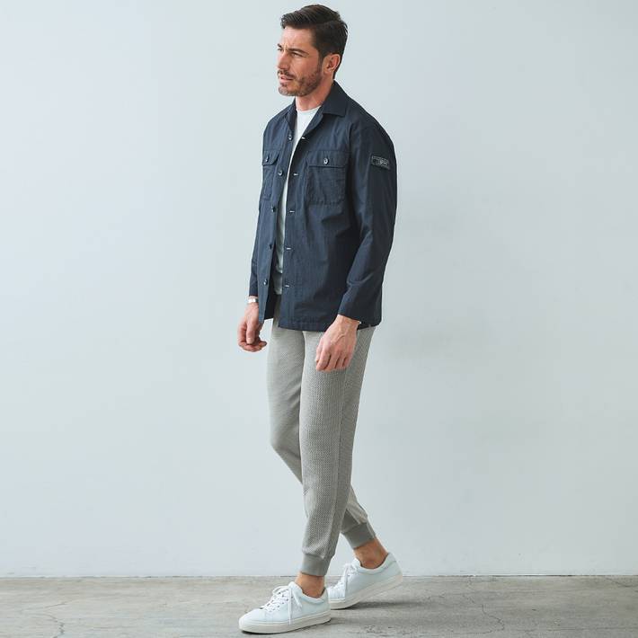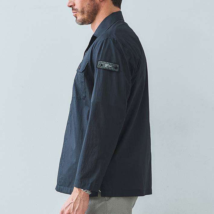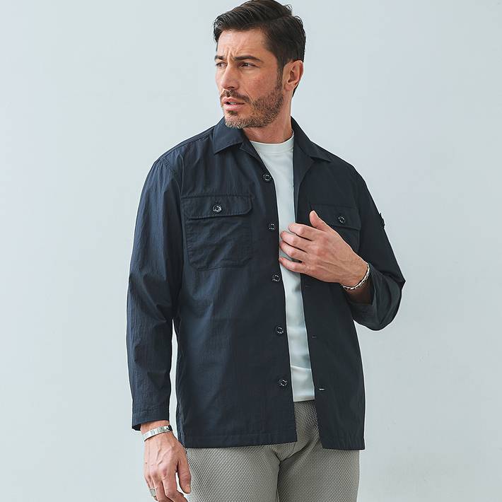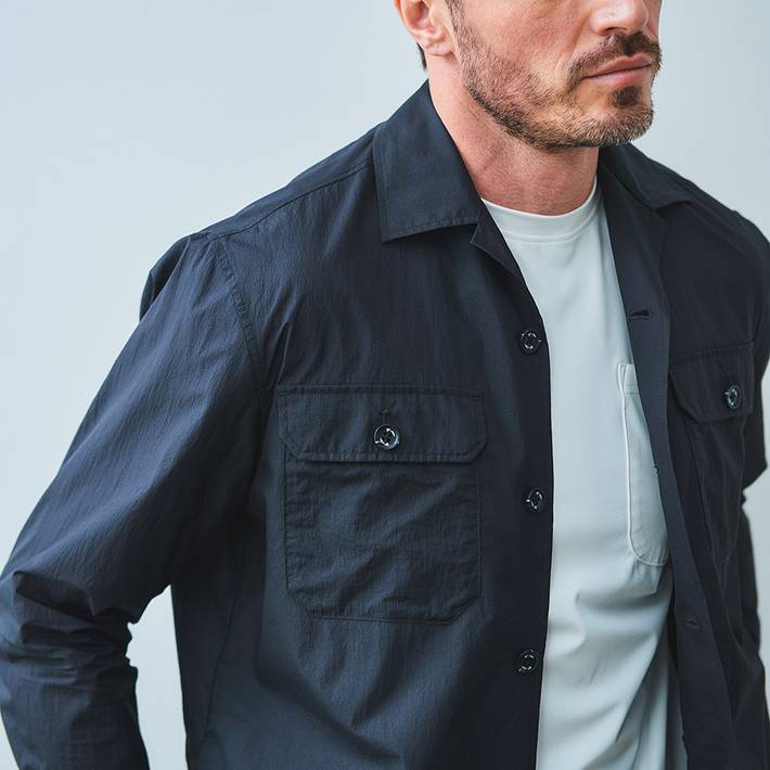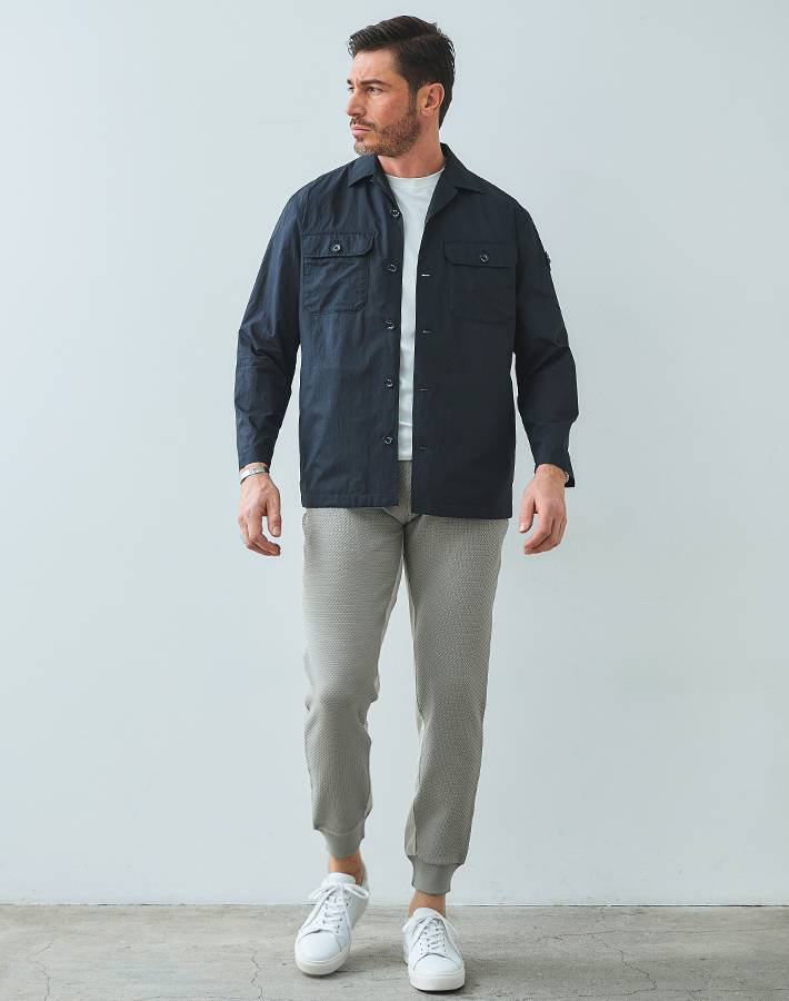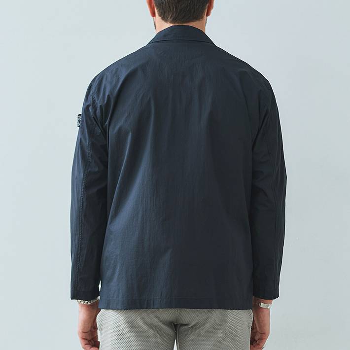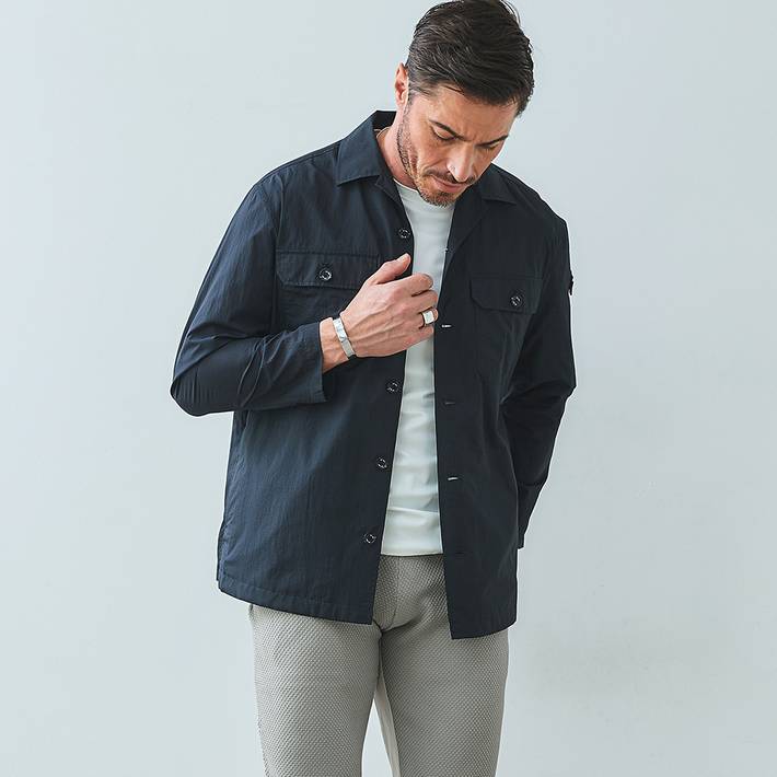 高密度素材ならではの適度なハリ感とドライな肌触りで、軽やかに羽織れるライトアウターとして長くご着用いただけます。