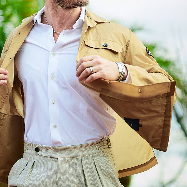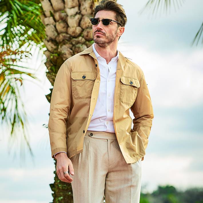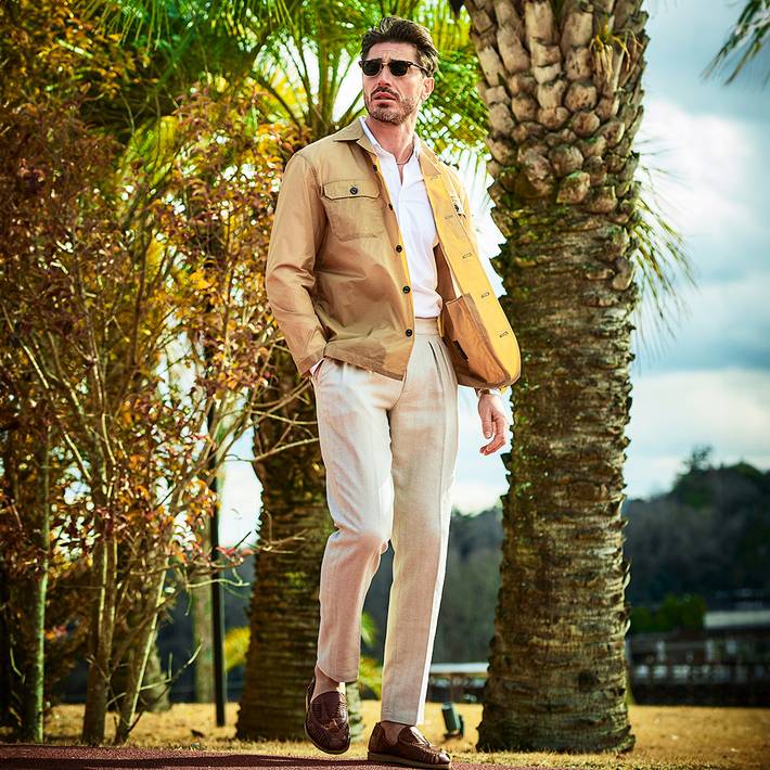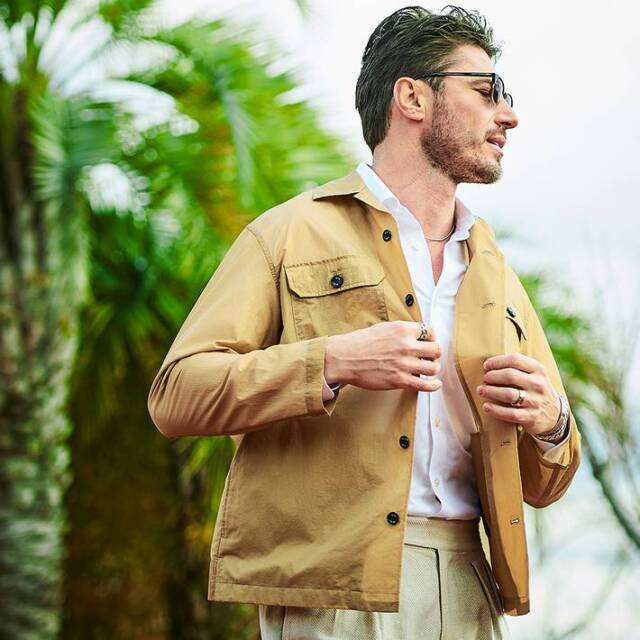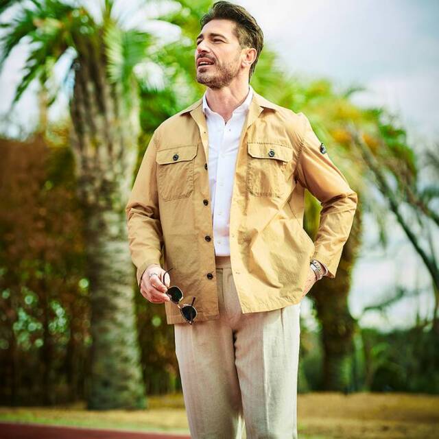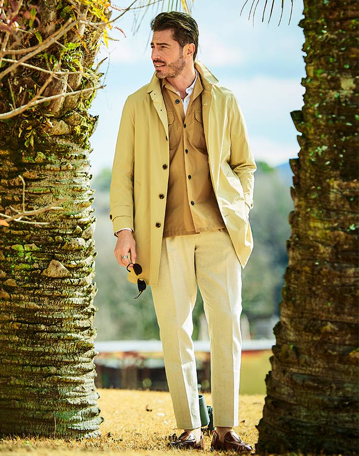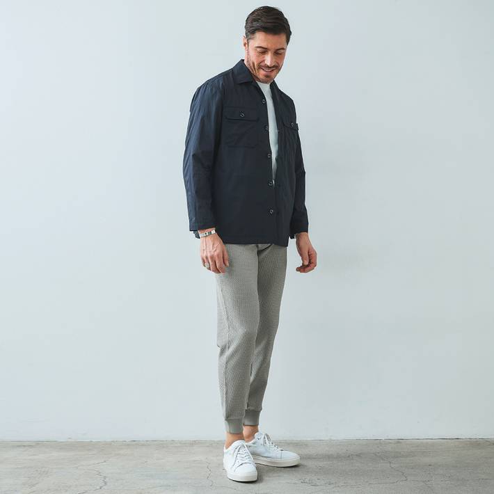 高密度素材ならではの適度なハリ感とドライな肌触りで、軽やかに羽織れるライトアウターとして長くご着用いただけます。