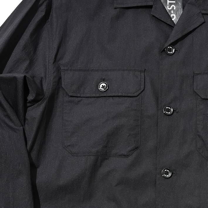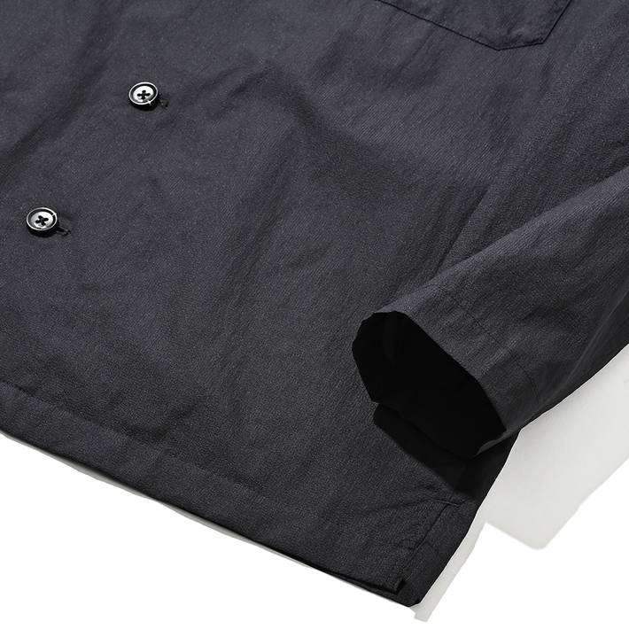 高密度のナイロンリップル素材にワッシャー加工を重ね、自然な風合いとドライな表情を引き出したナイロンシャツブルゾン。