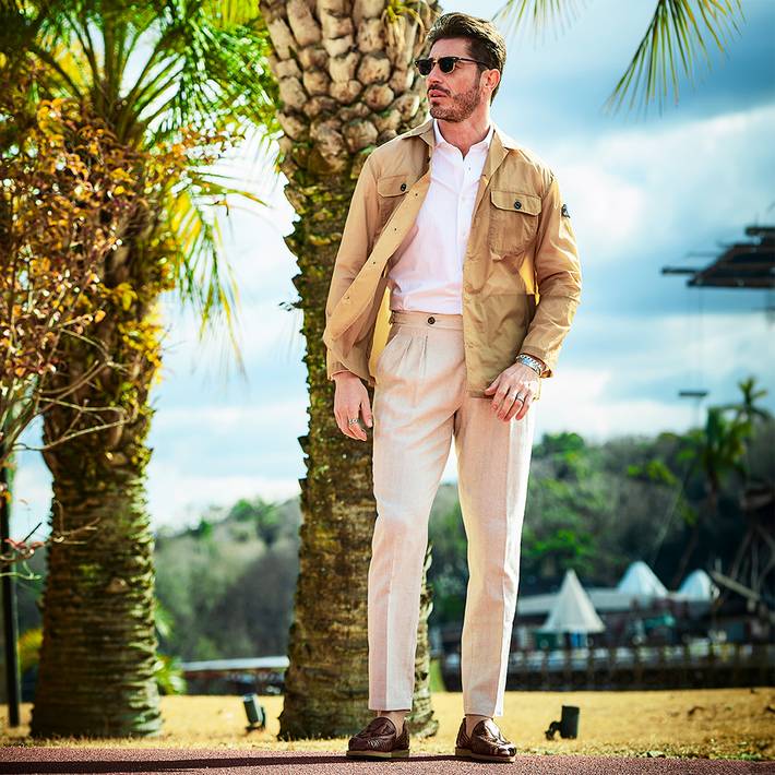 襟付きのボタンアップ仕様に、存在感のあるフラップポケットを配し、都会的なミリタリー感をプラス。