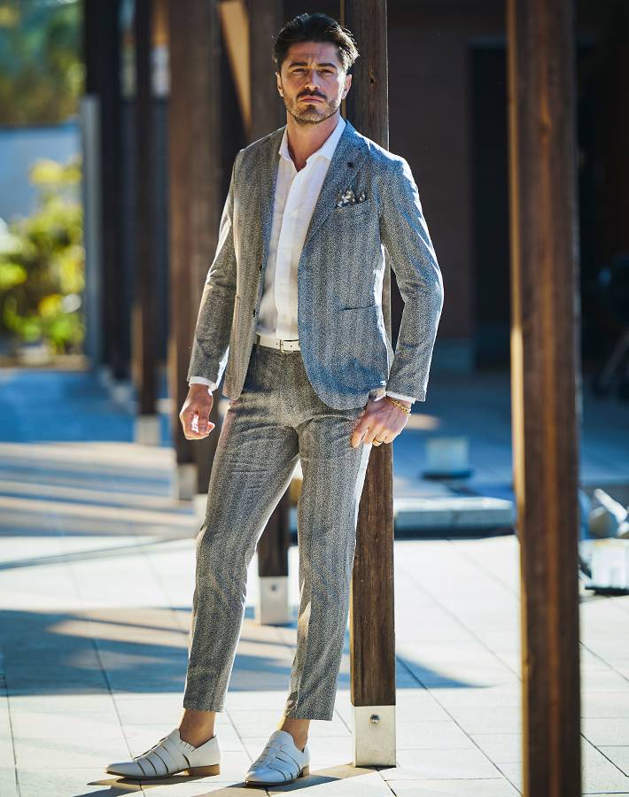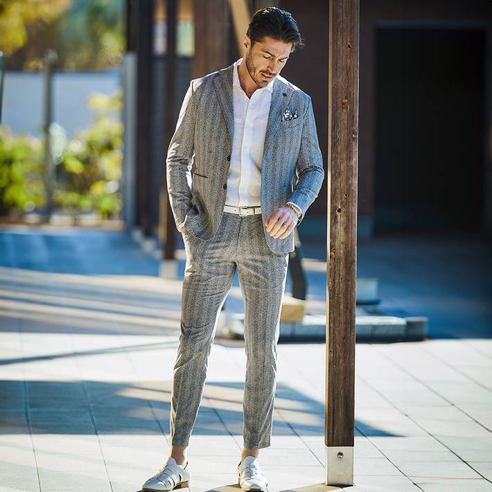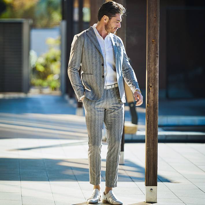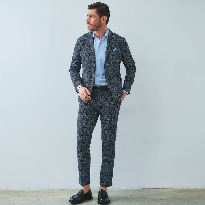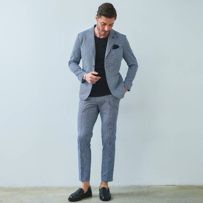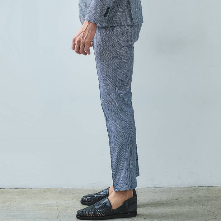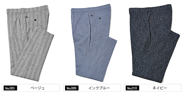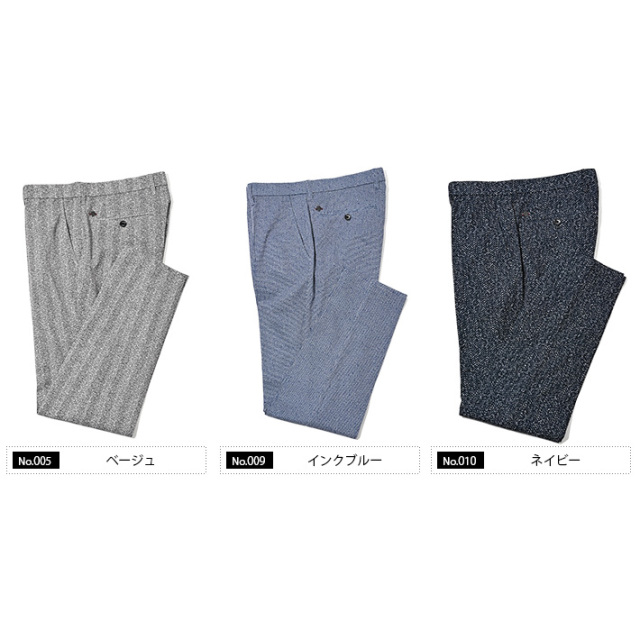 同素材のジャケット(品番:360202)を合わせて、品のある大人のセットアップスタイルをお楽しみください。