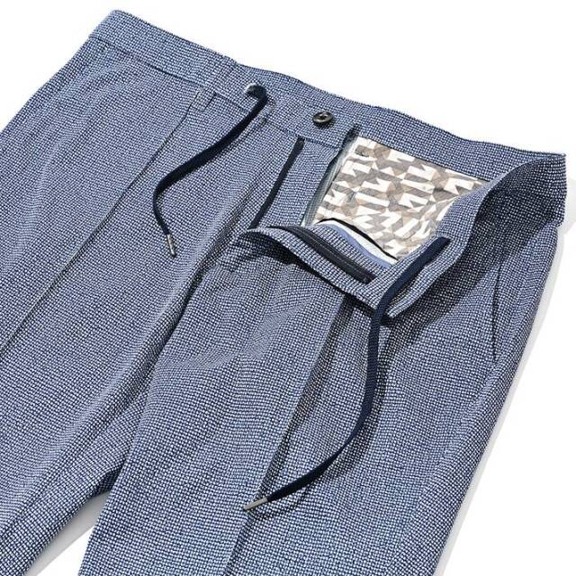 ウエストはドローコードとベルトループを配しているので、ベルトなしのリラックススタイルからベルトをしてのドレッシーなスタイルまでカバー。