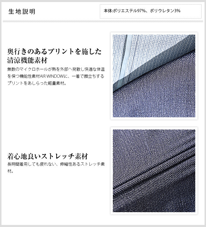 夏を快適に過ごす通気性に優れた高機能素材「AIR WINDOW」を使用した清涼スラックス。