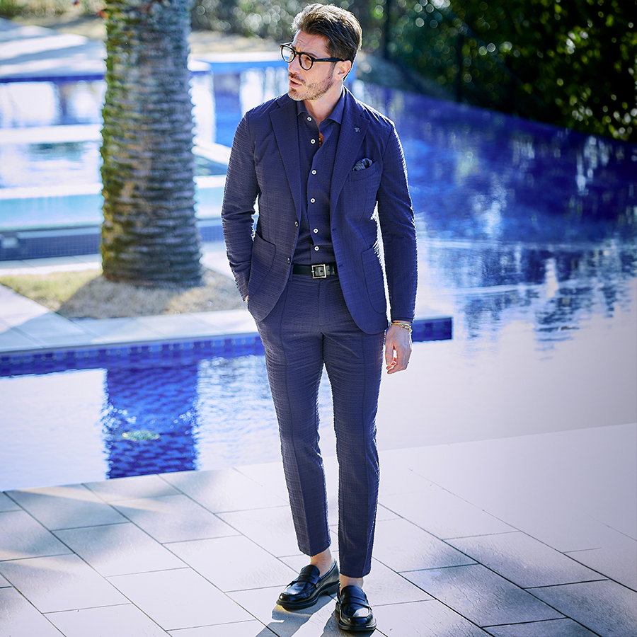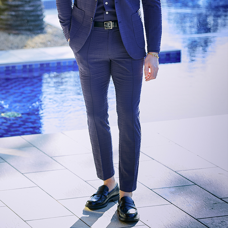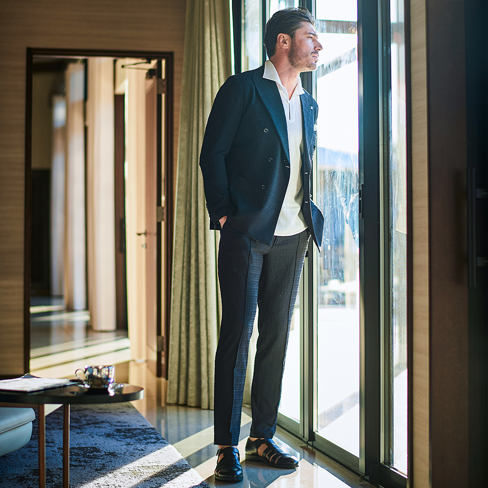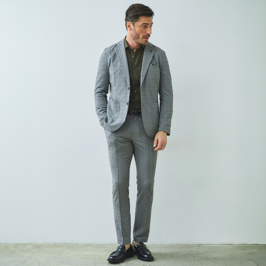 ジャケットとパンツの単品使用やカジュアルスーツとして、ビジネスにも汎用性ある便利なセットアップです。