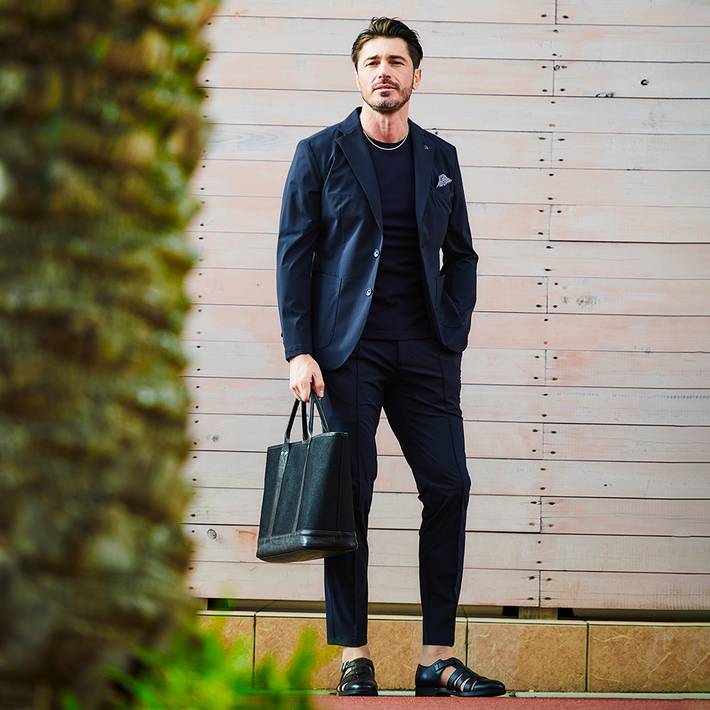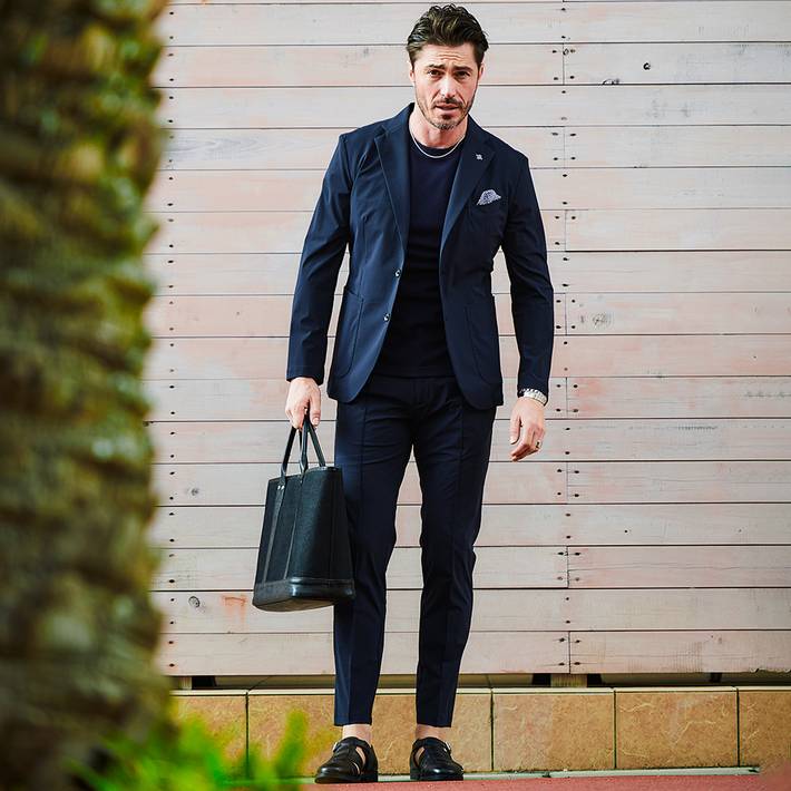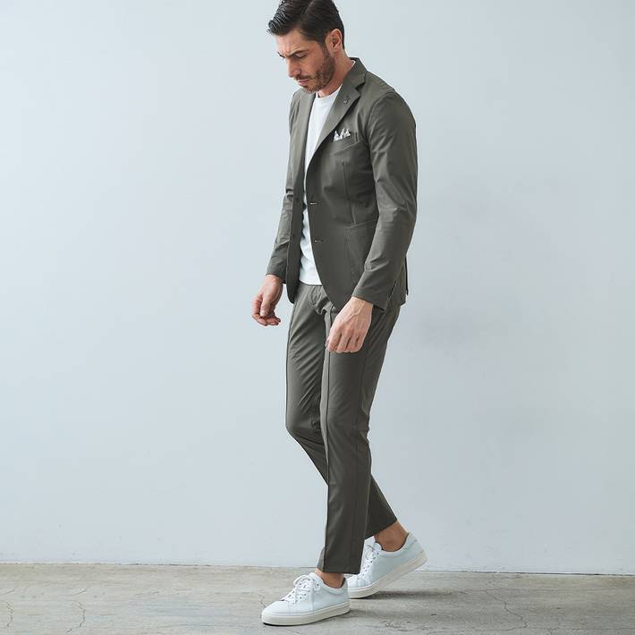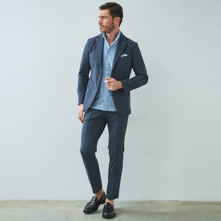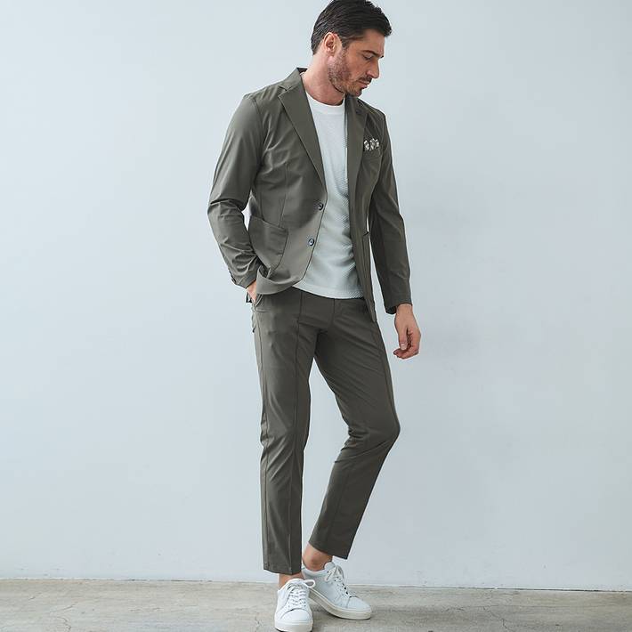 同素材のジャケット(品番:360210)を合わせて、品のある大人のセットアップスタイルをお楽しみください。