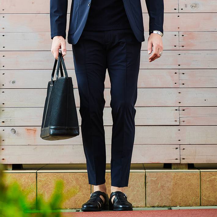 美しくテーパードを描くシルエットに、ノンプリーツでフラットな表情。