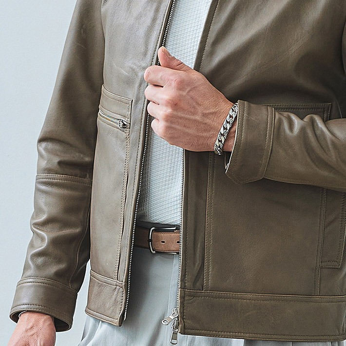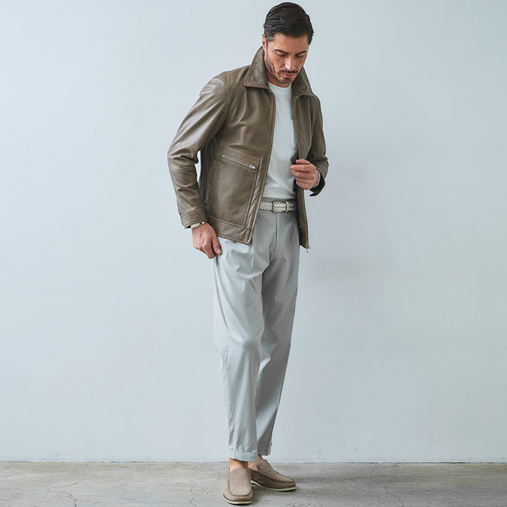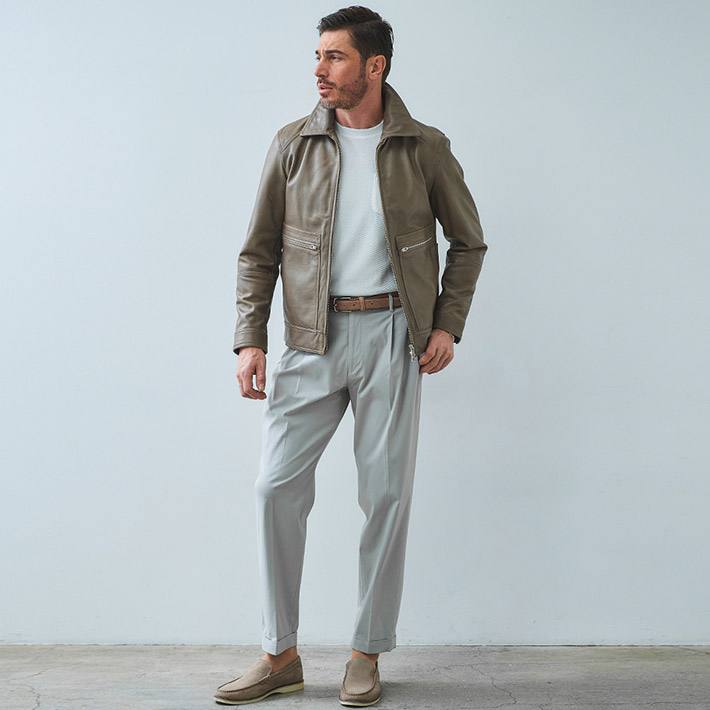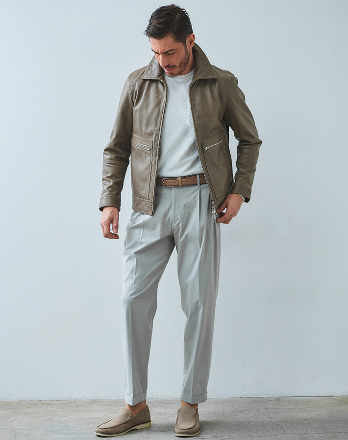 デニムを合わせて男らしく、スラックスを合わせて上品に、ボトムスを選ばない圧倒的な着回し力が魅力です。