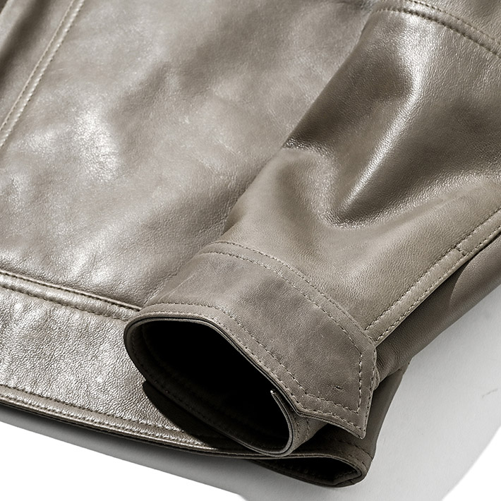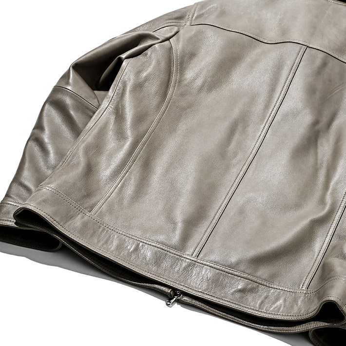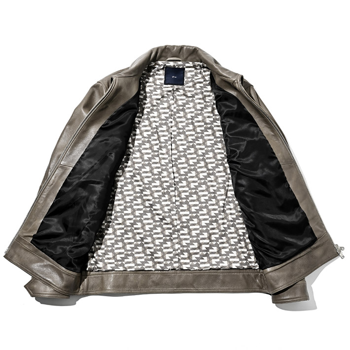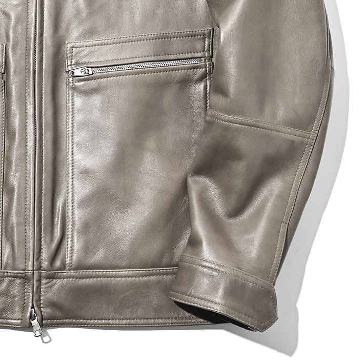 厳選されたシープスキンで仕立てた襟付きシングルライダース。