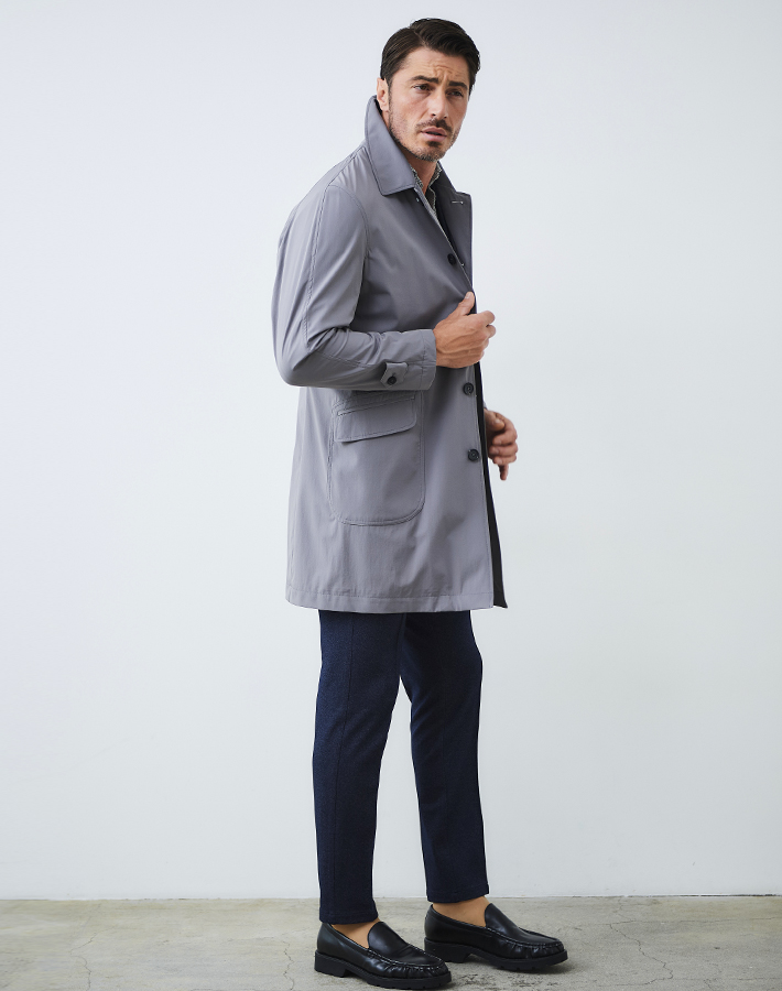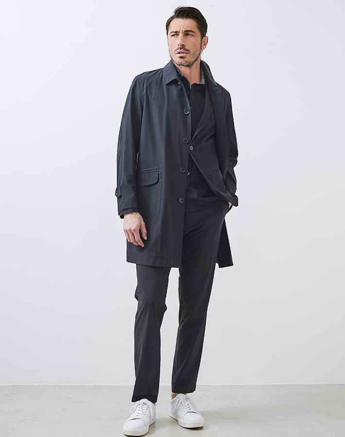 軽量でストレッチ性ある着心地が快適なステンカラーコート。